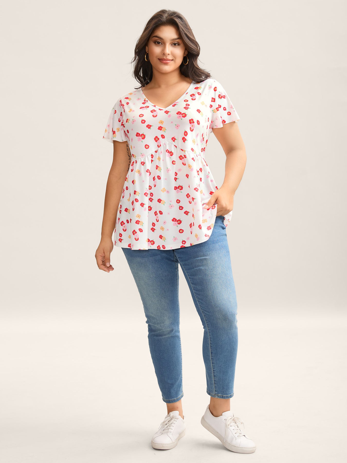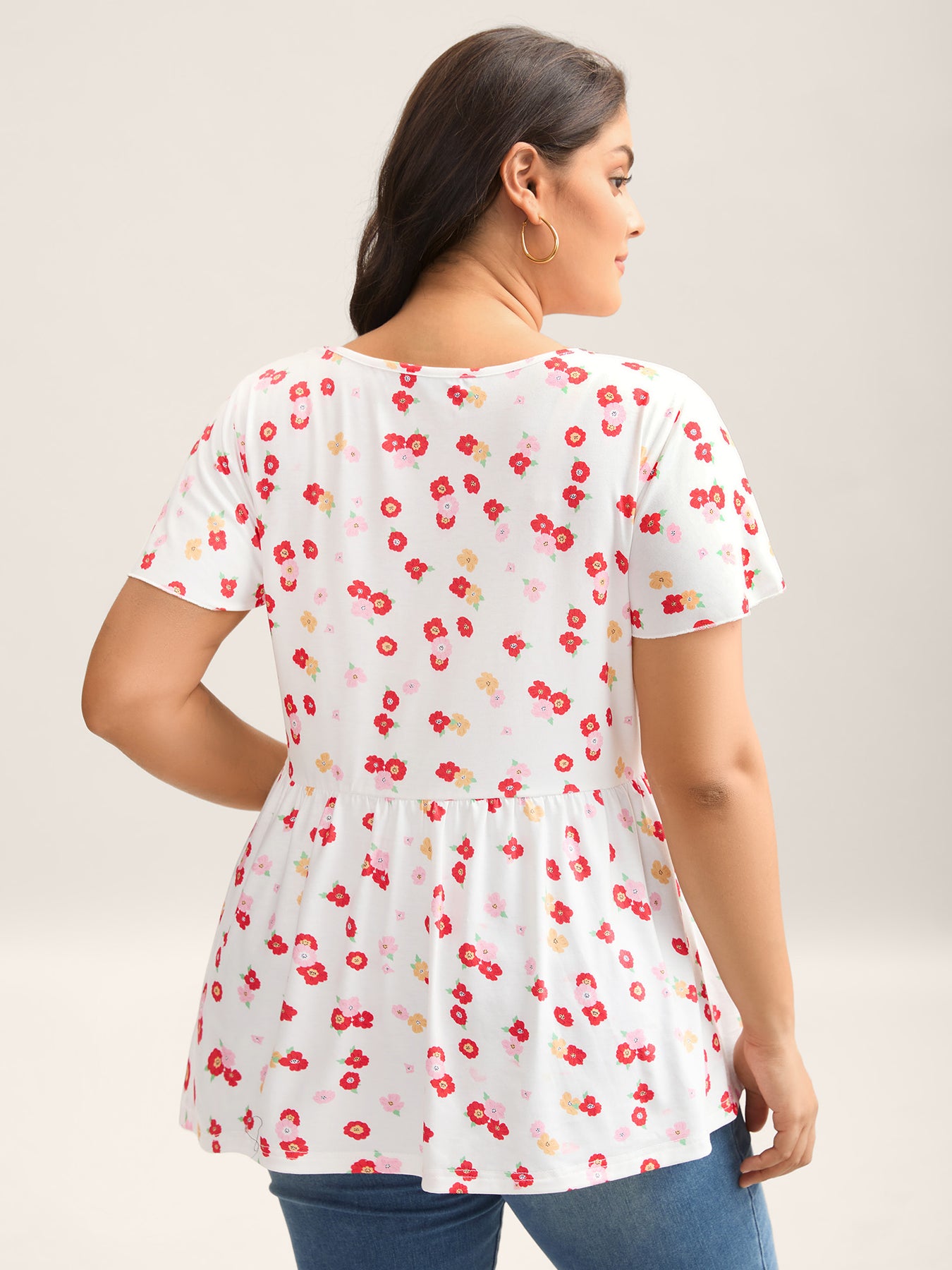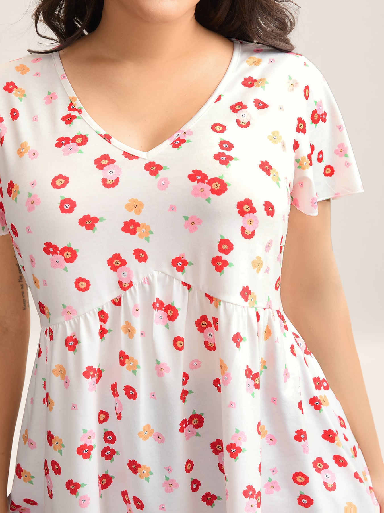 Ditsy Floral Print Sheer Babydoll Top