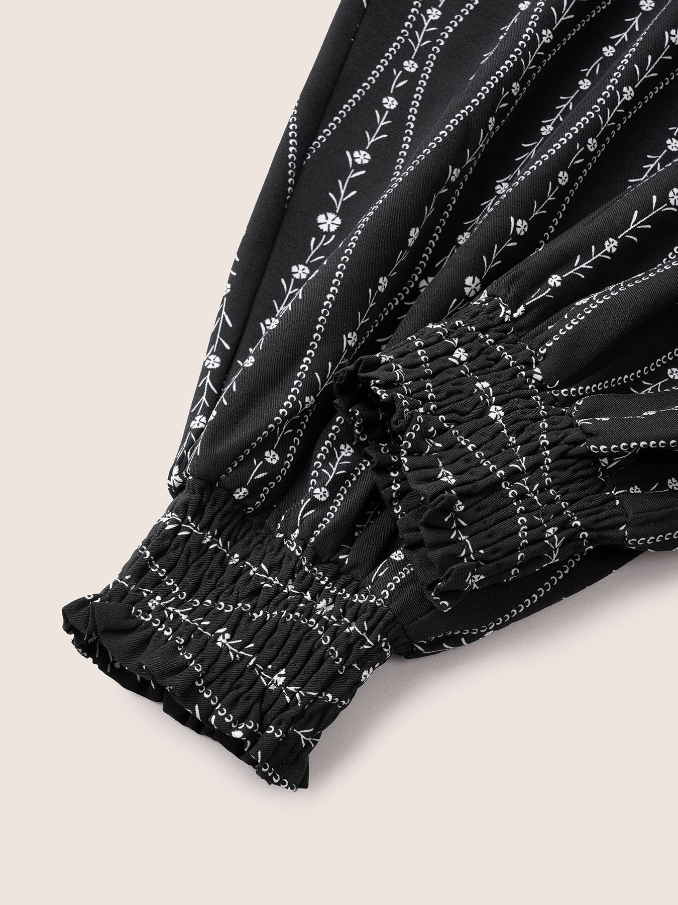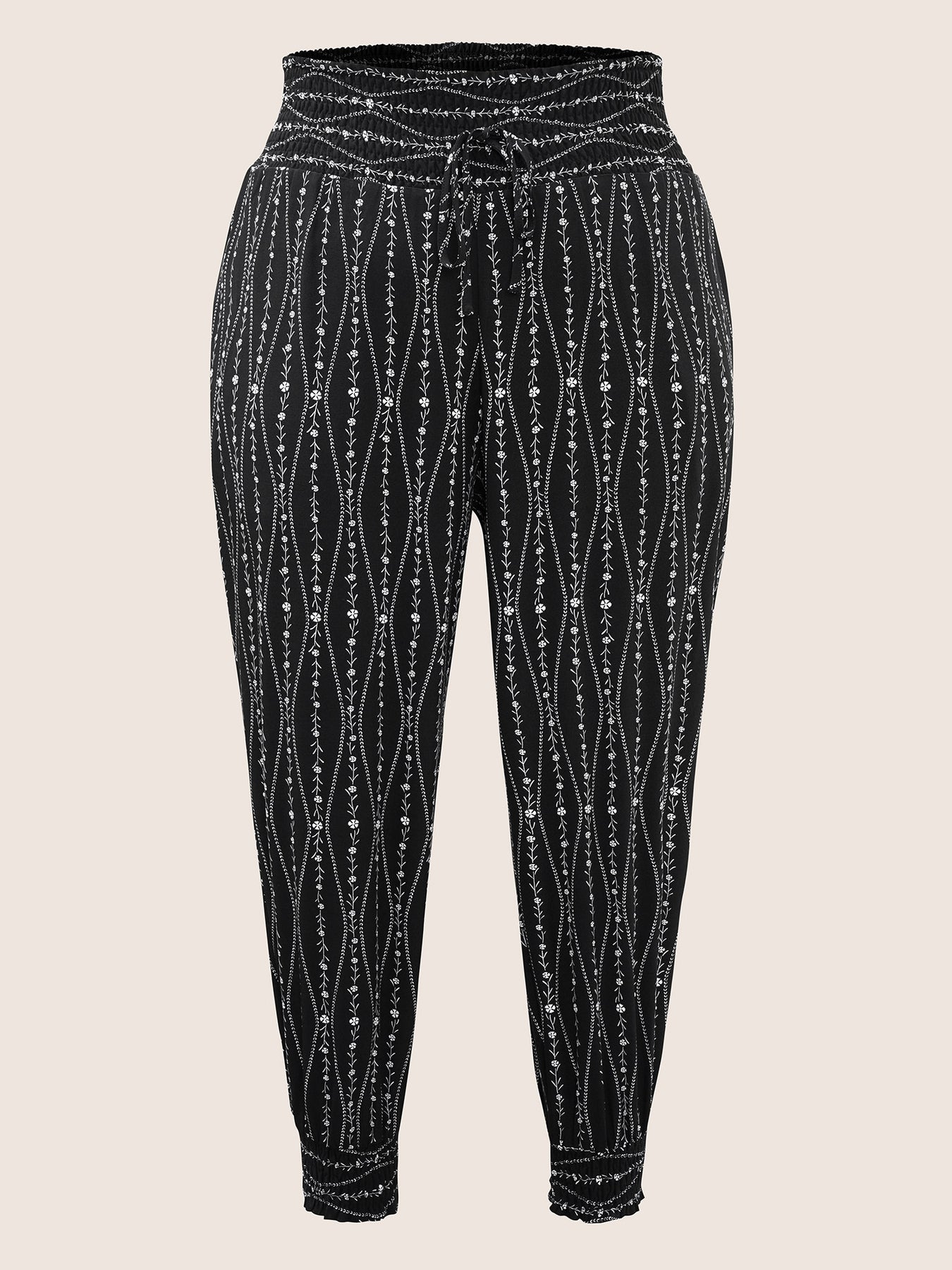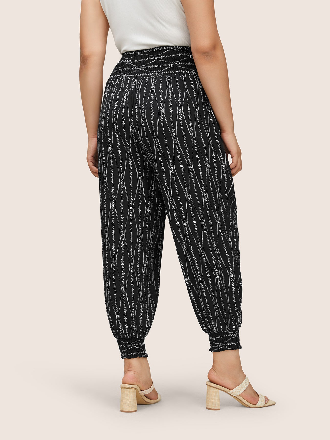 Ditsy Floral Shirred Ties High Rise Harem Pants