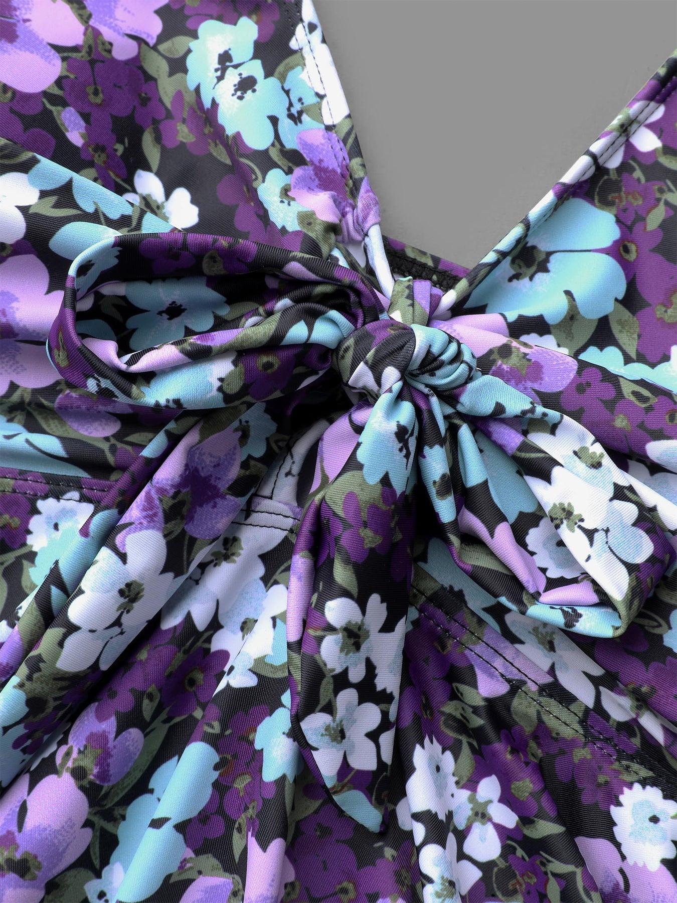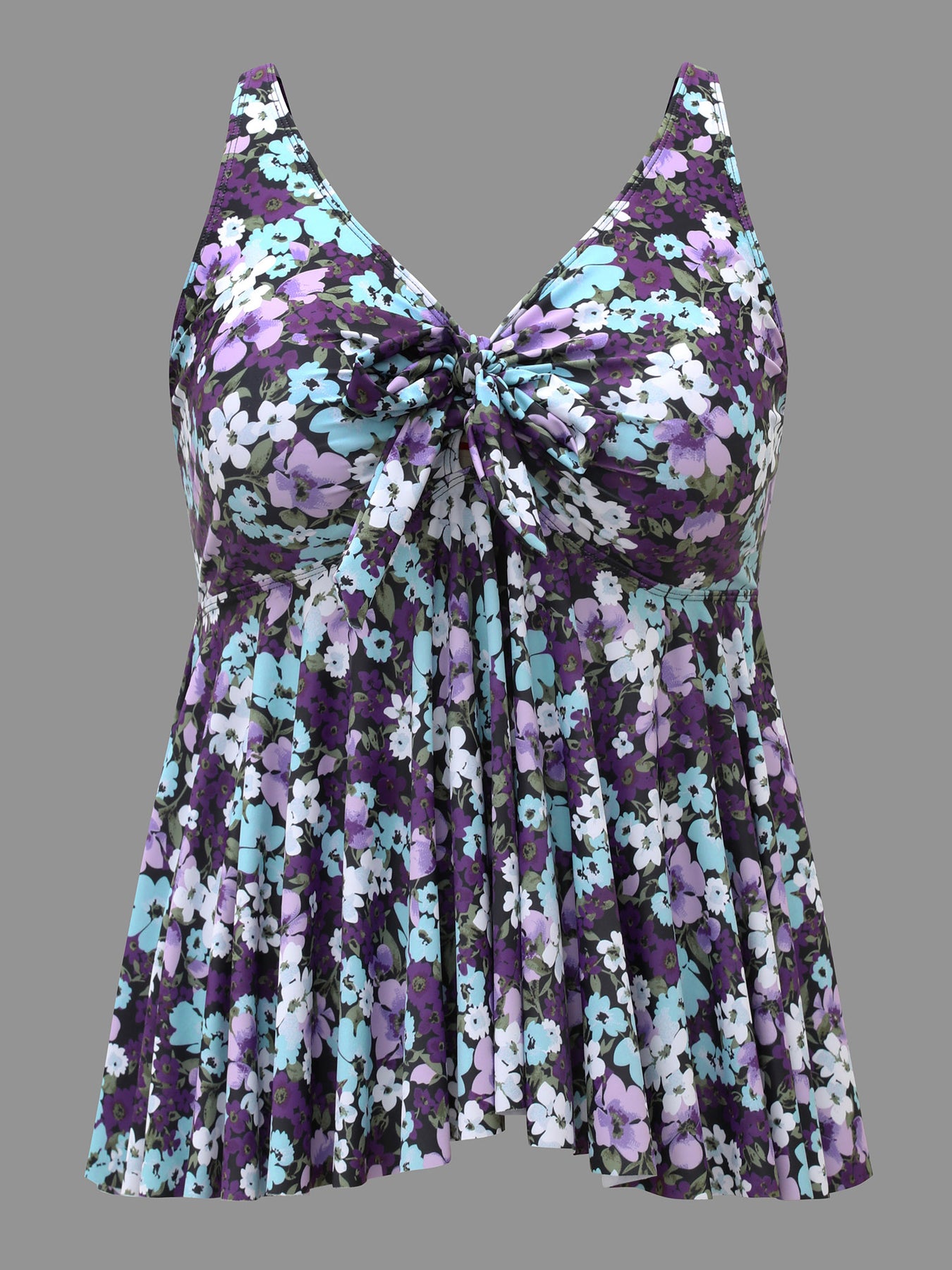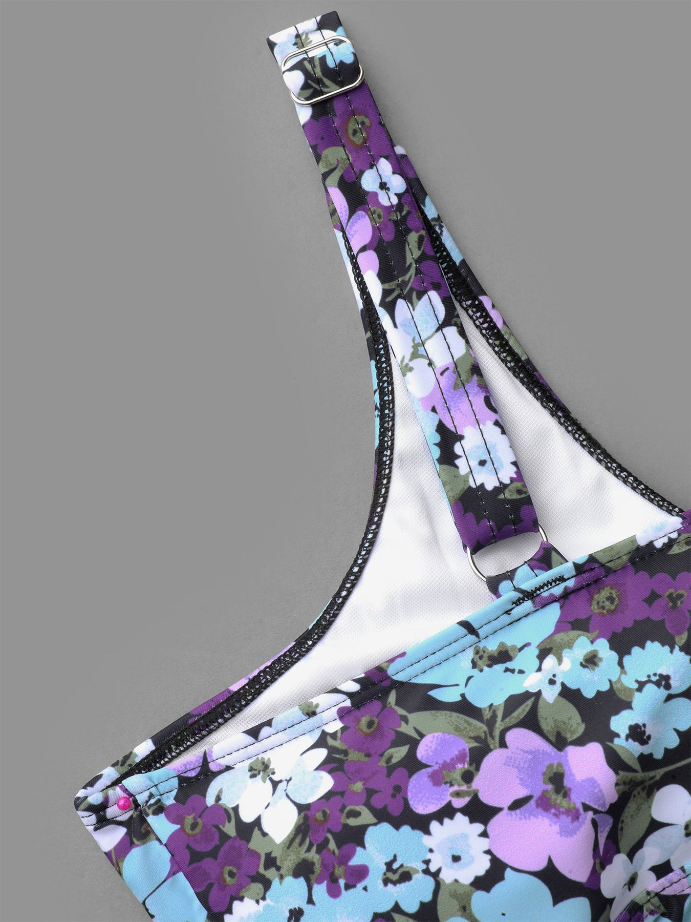Ditsy Floral Ties Adjustable Ruched Swim Top