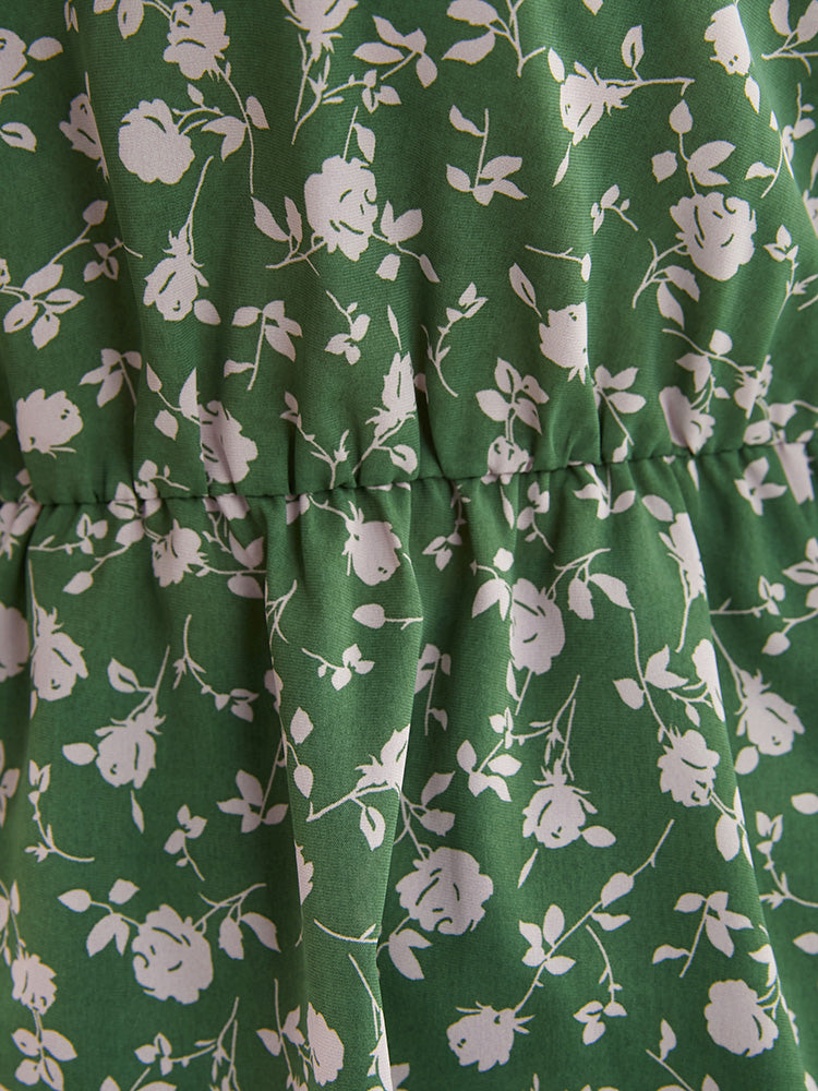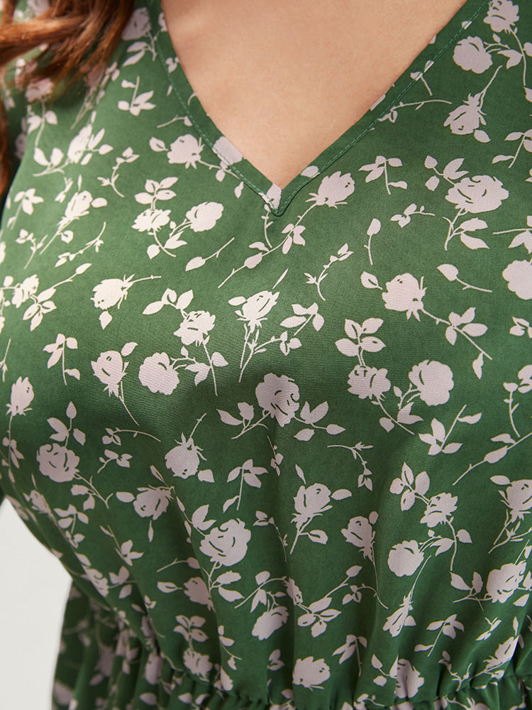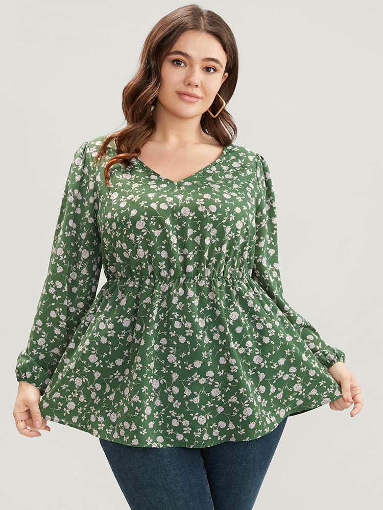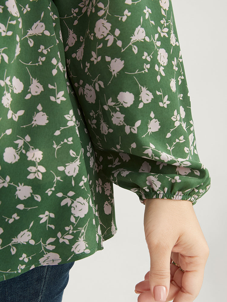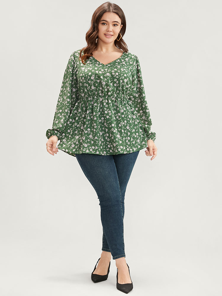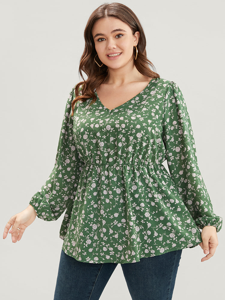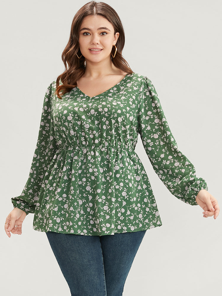 Ditsy Floral V Neck Lantern Sleeve Blouse