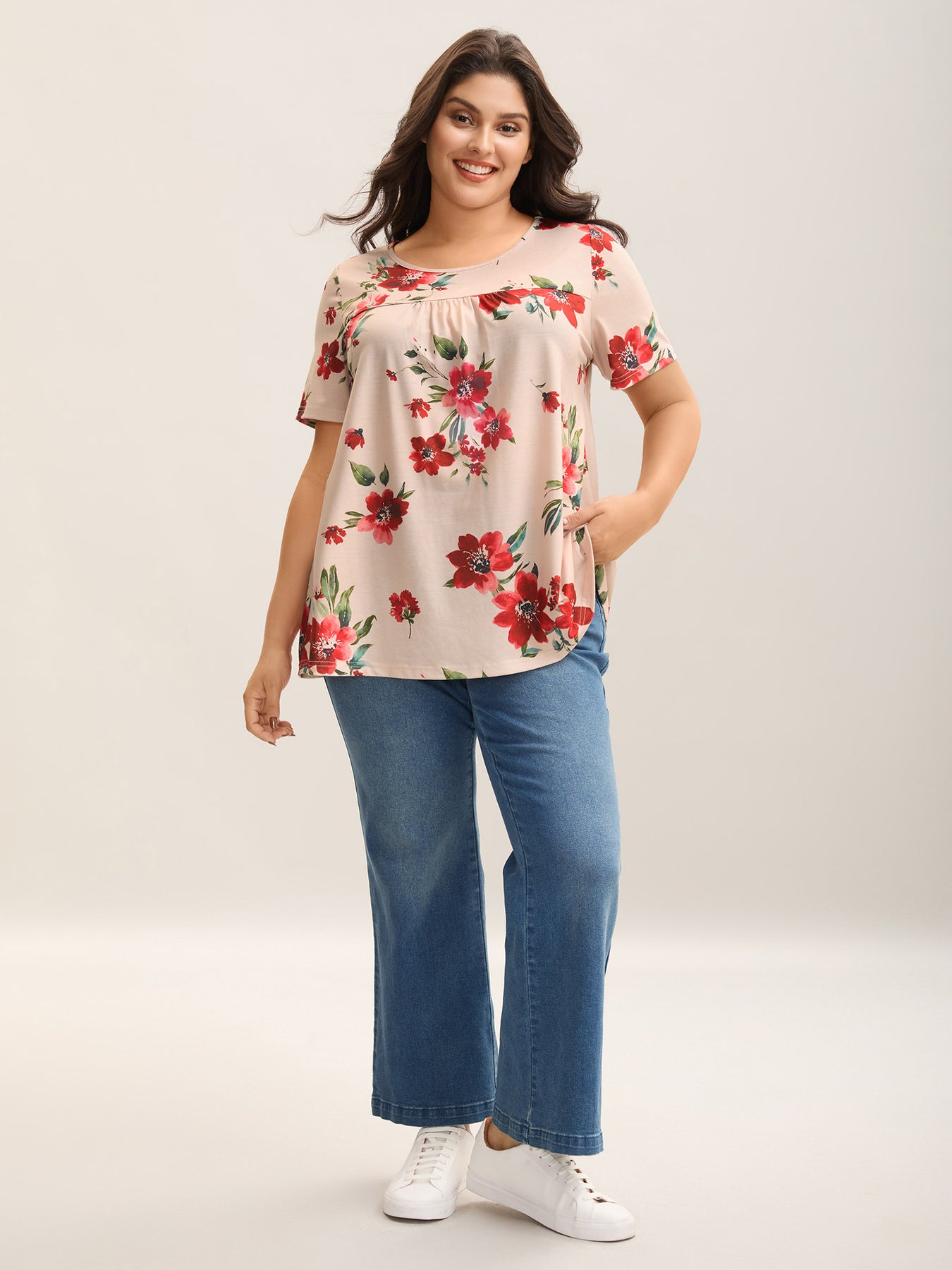Dreamy Floral Print Flowy Pleated T-Shirt