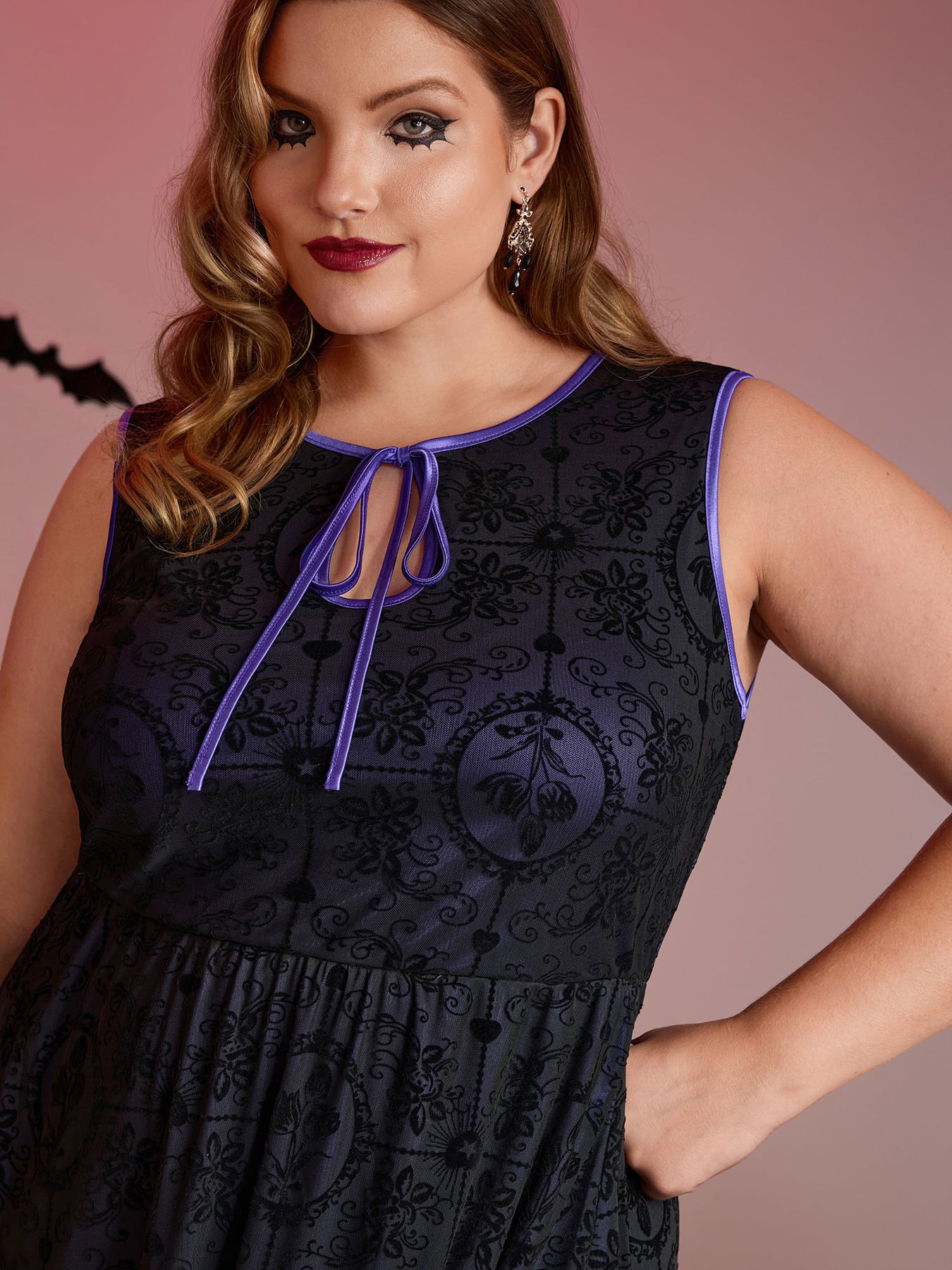 Elastic Flocked Mesh Contrast Lined Midi Dress