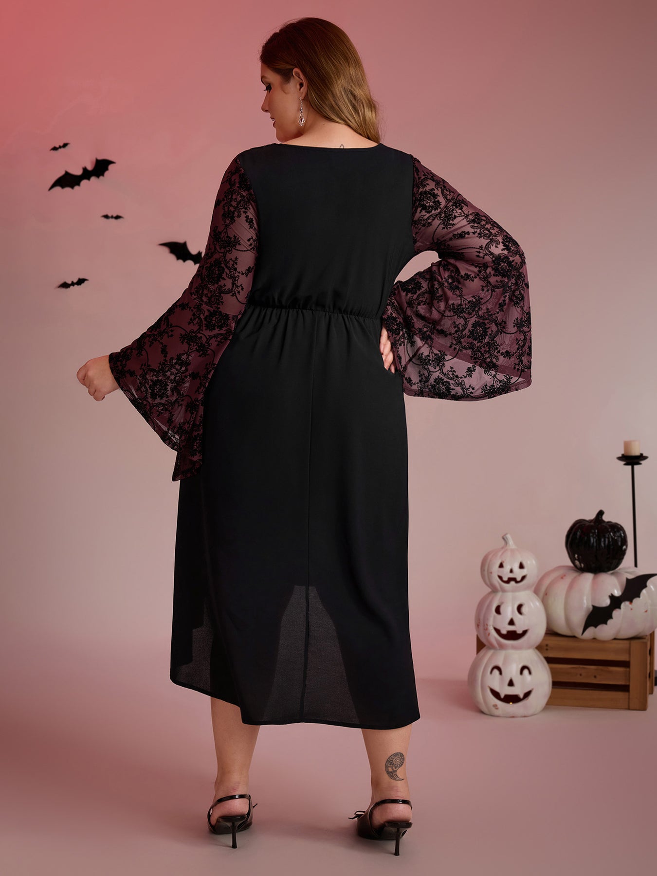 Elastic Mesh Corset-Like Ties Midi Dress