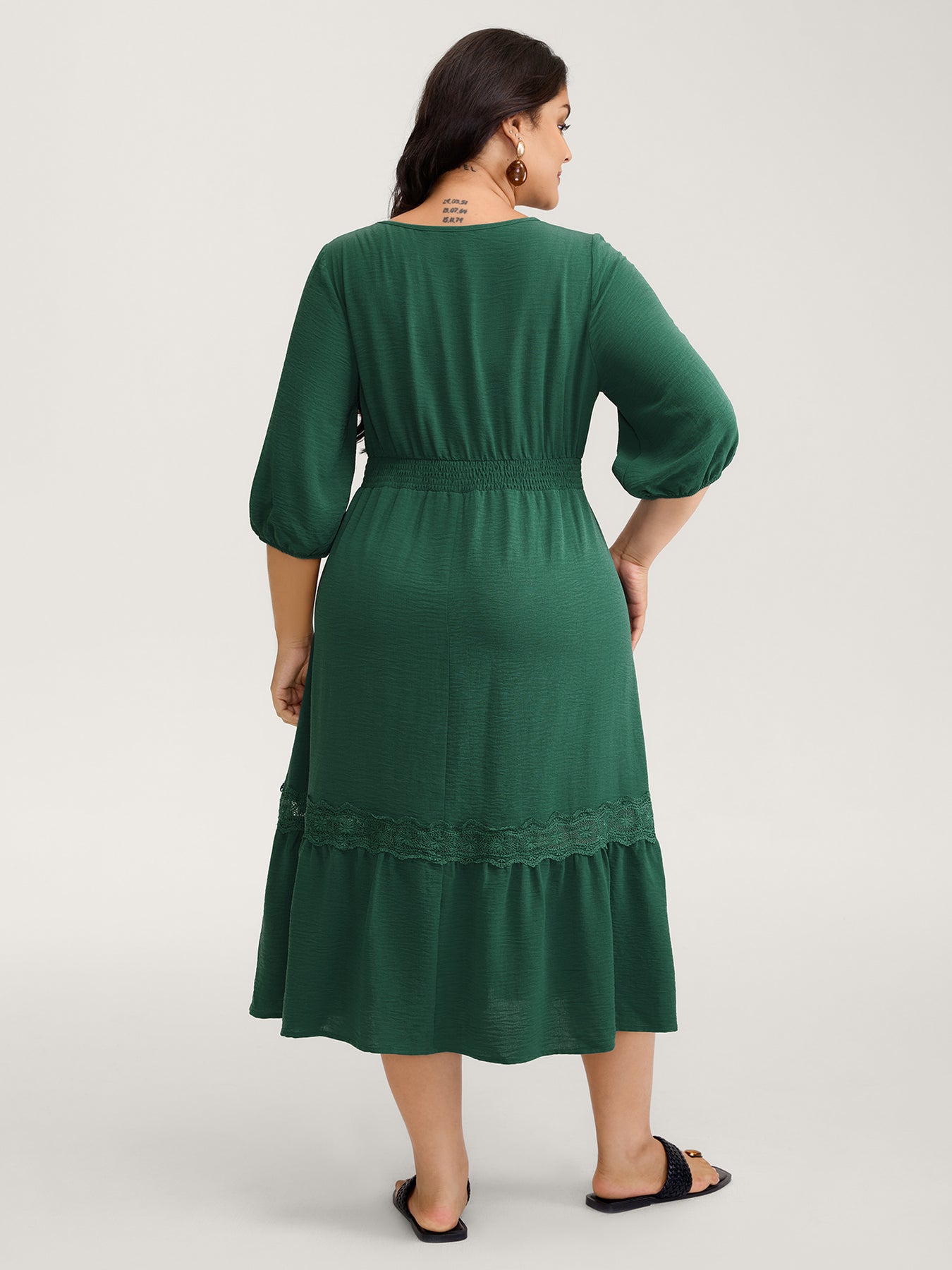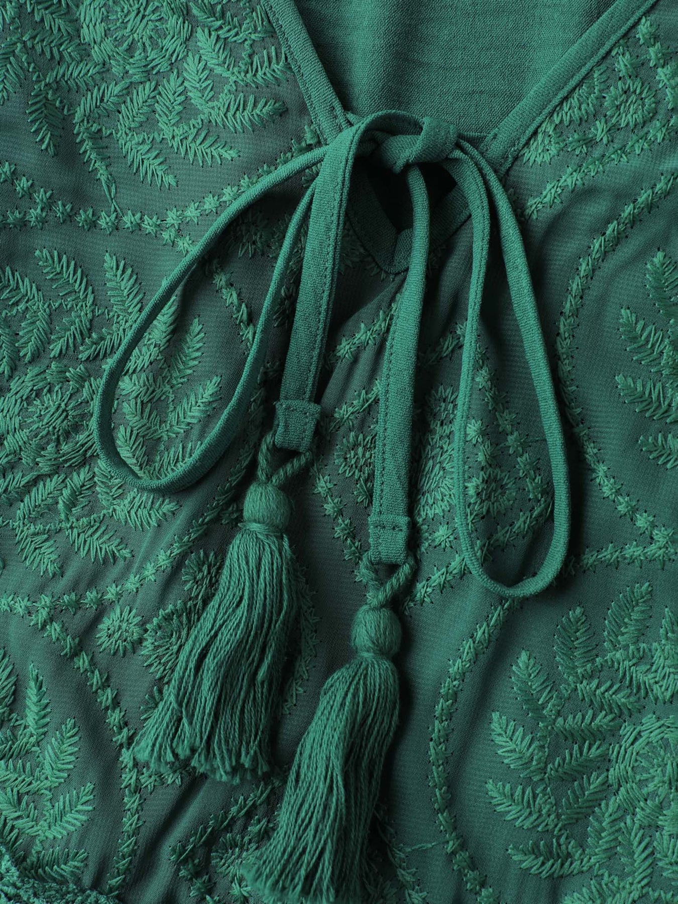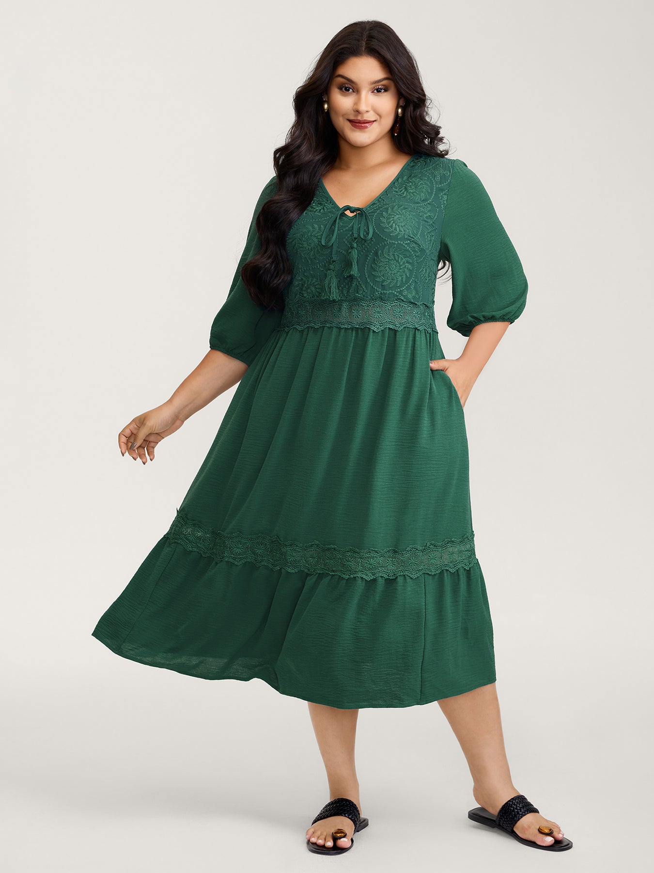 Embroidered Lace Trim Neck Drawstring Maxi Dress