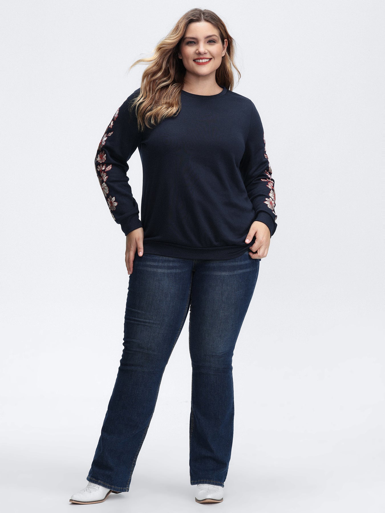 Embroidered Sleeve Relaxed-Fit Sweatshirt