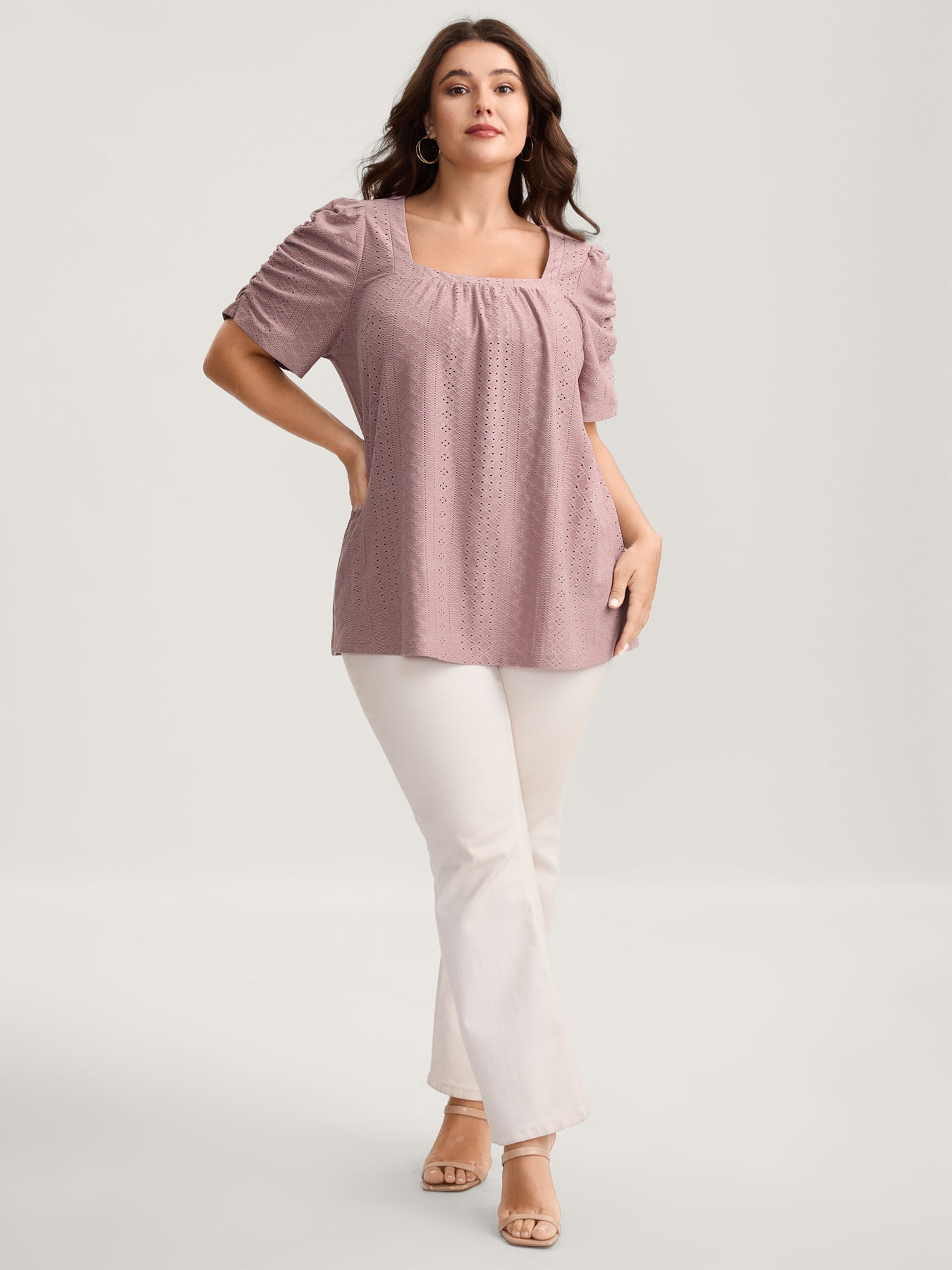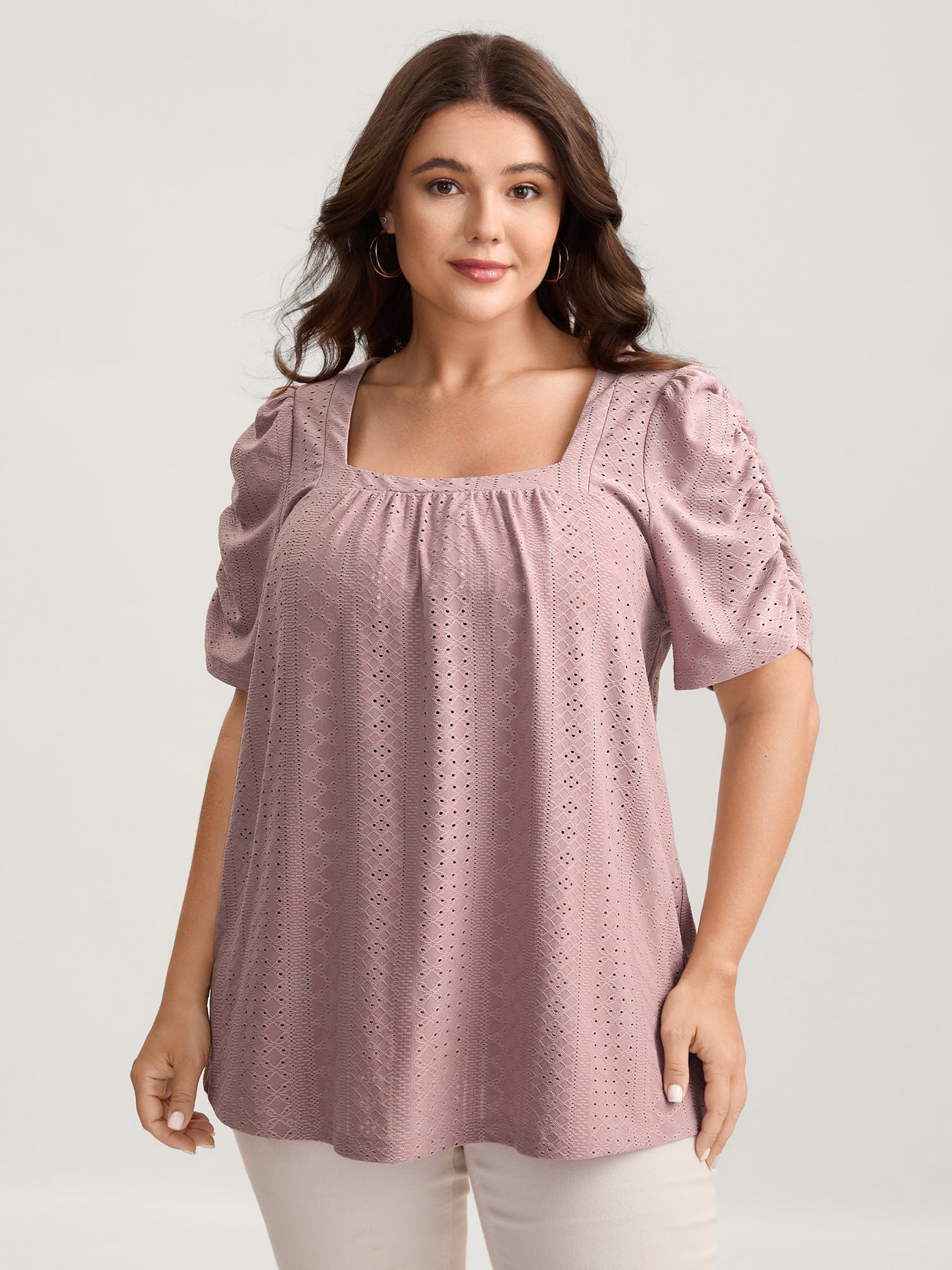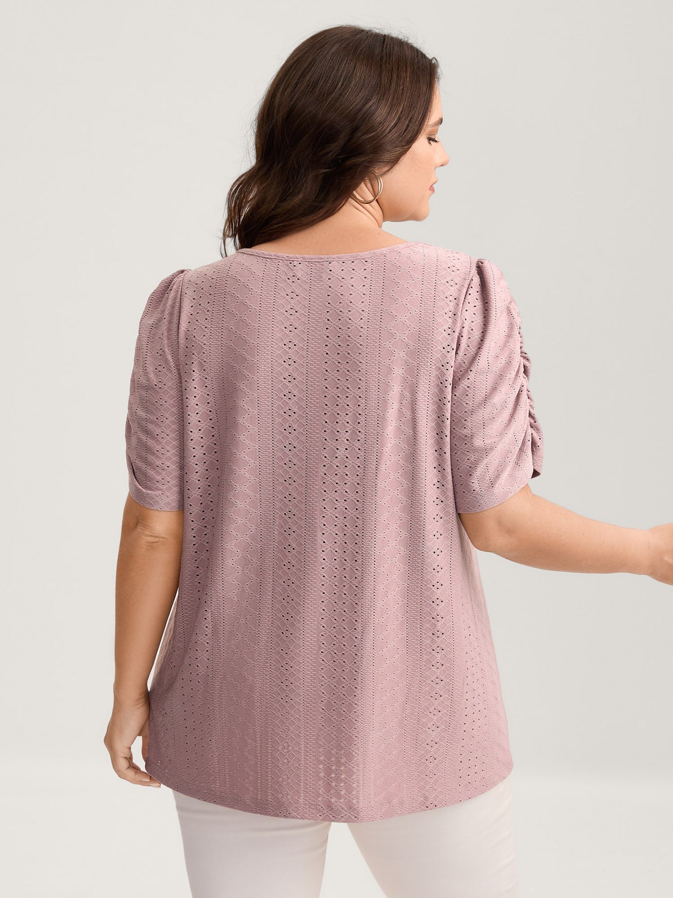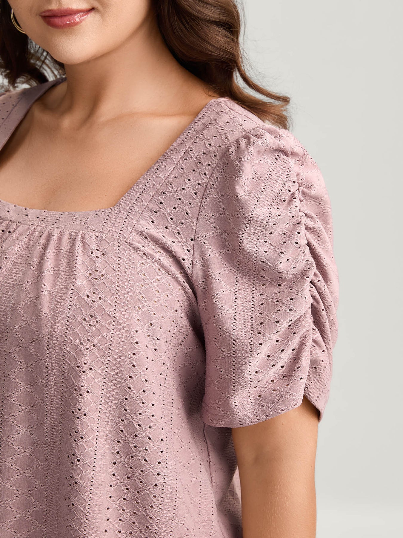 Eyelet Trim Flowy Sleeve Bust-Comfort Top