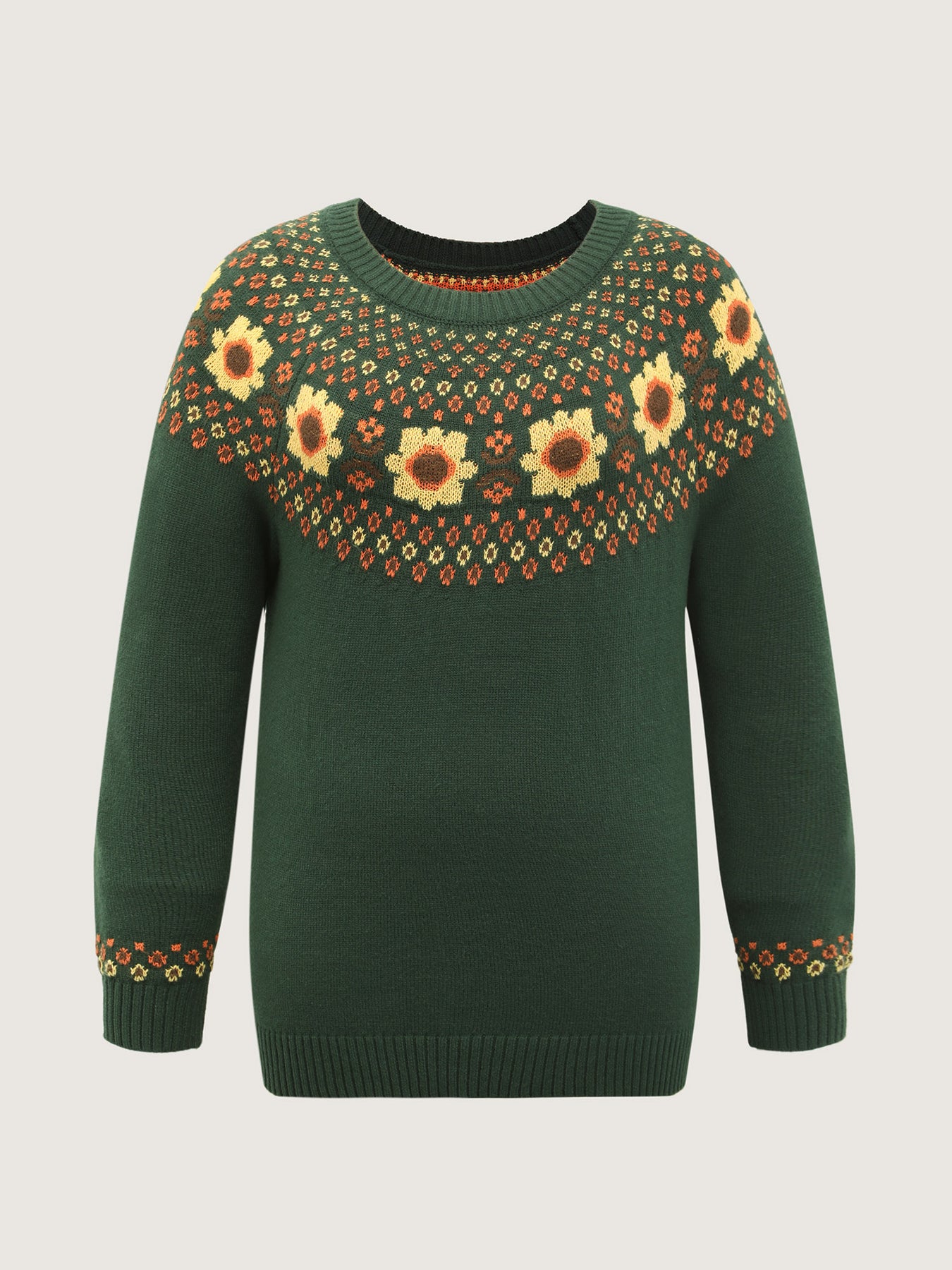 Fair Isle Floral Pattern Ribbed Hem Pullover