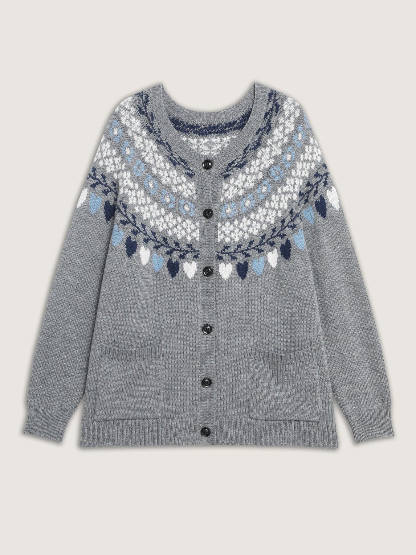Fair Isle Patch Pockets Knit Cardigan