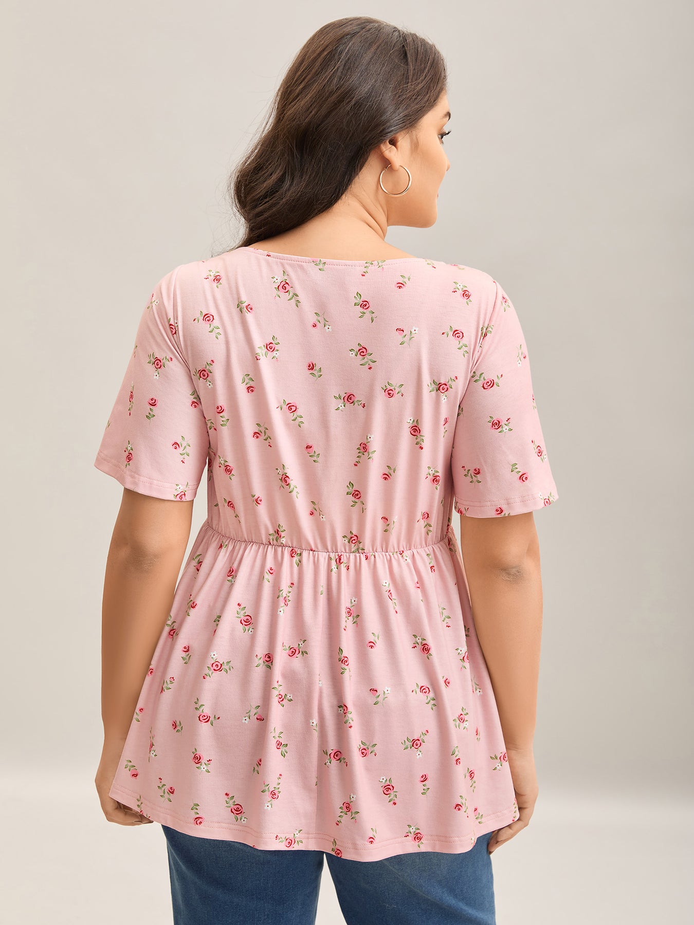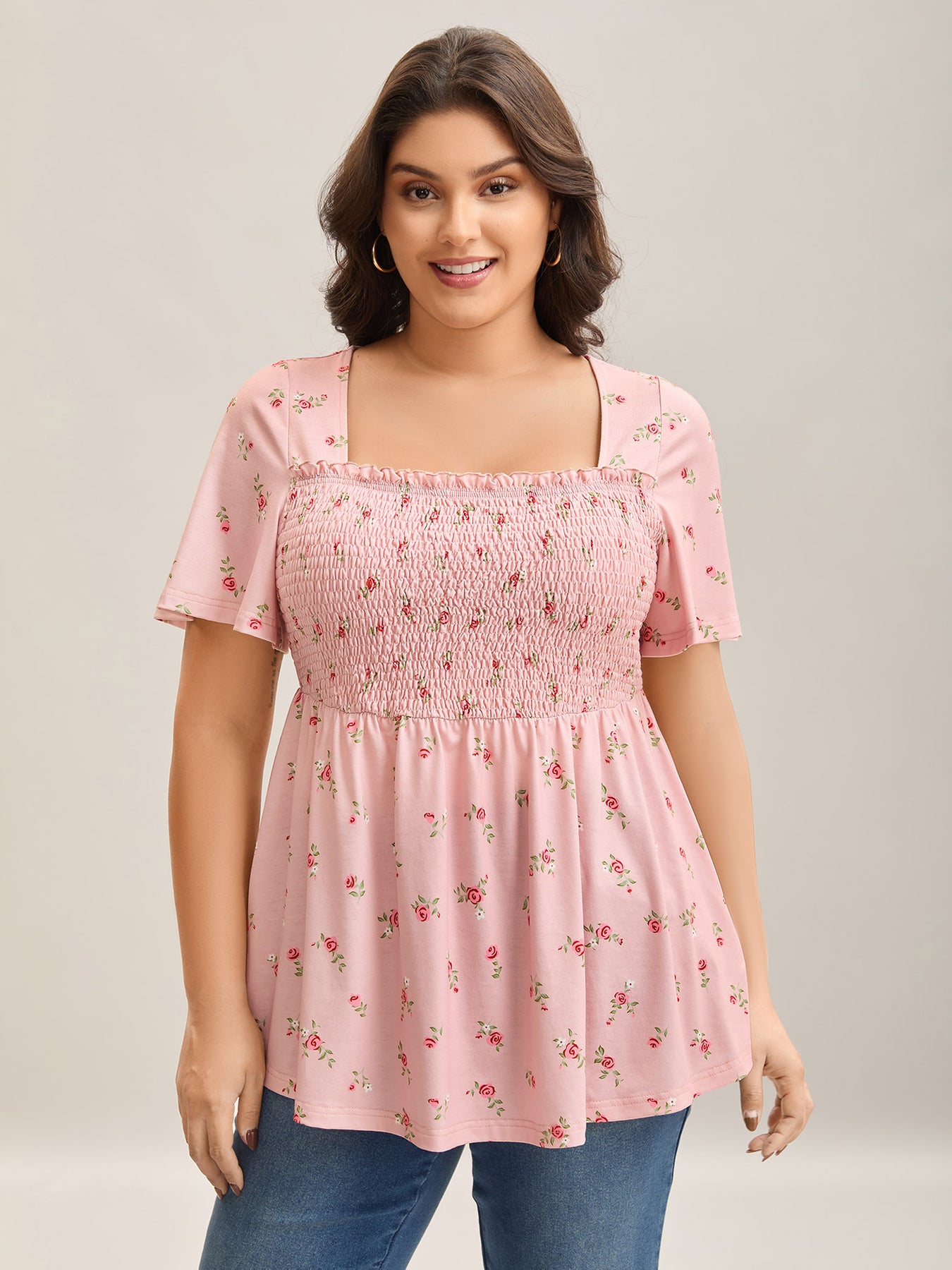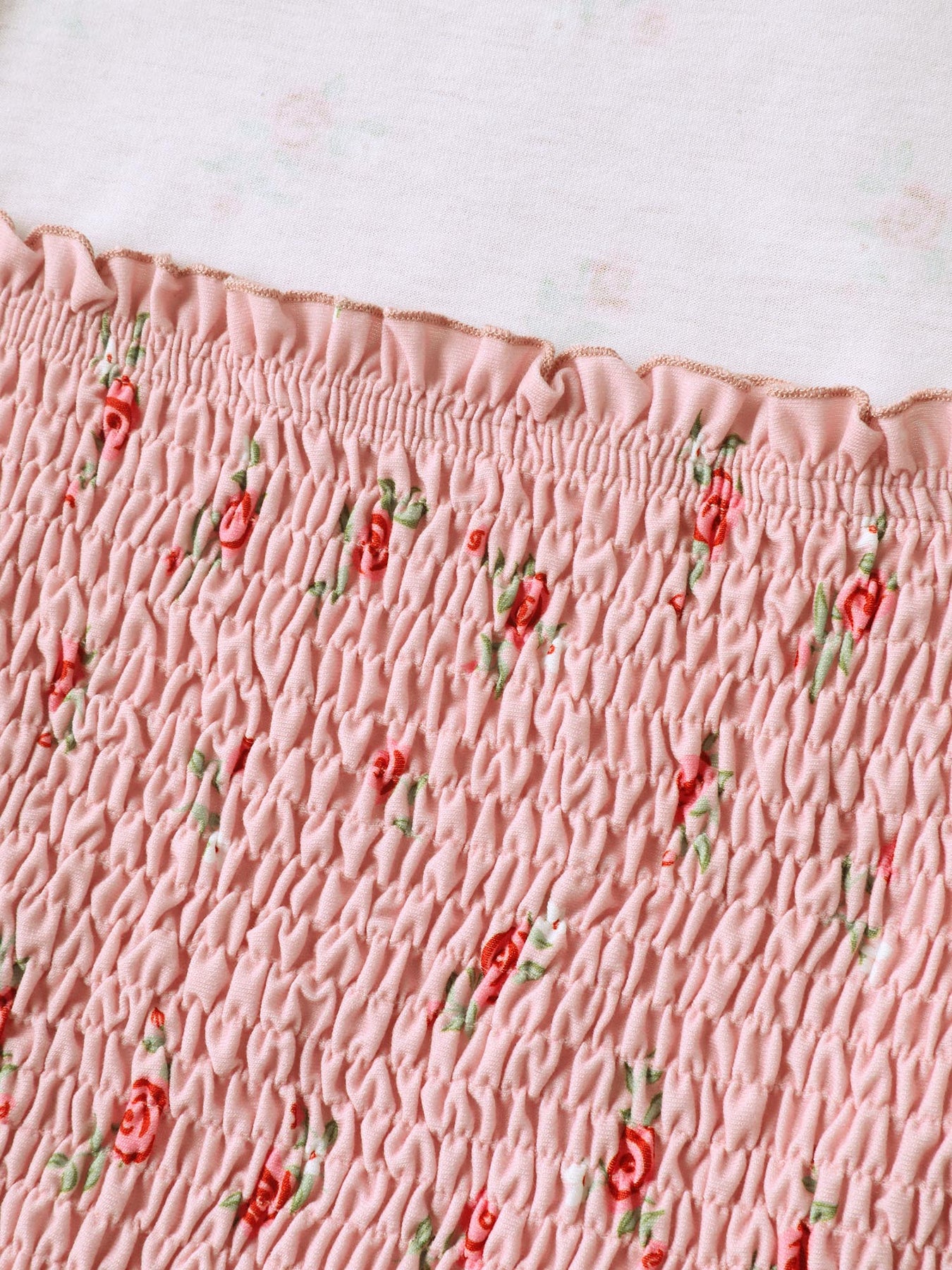 Flirty Floral Print Shirred Knit Top