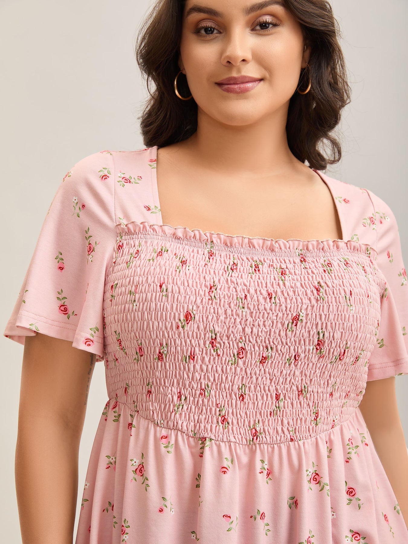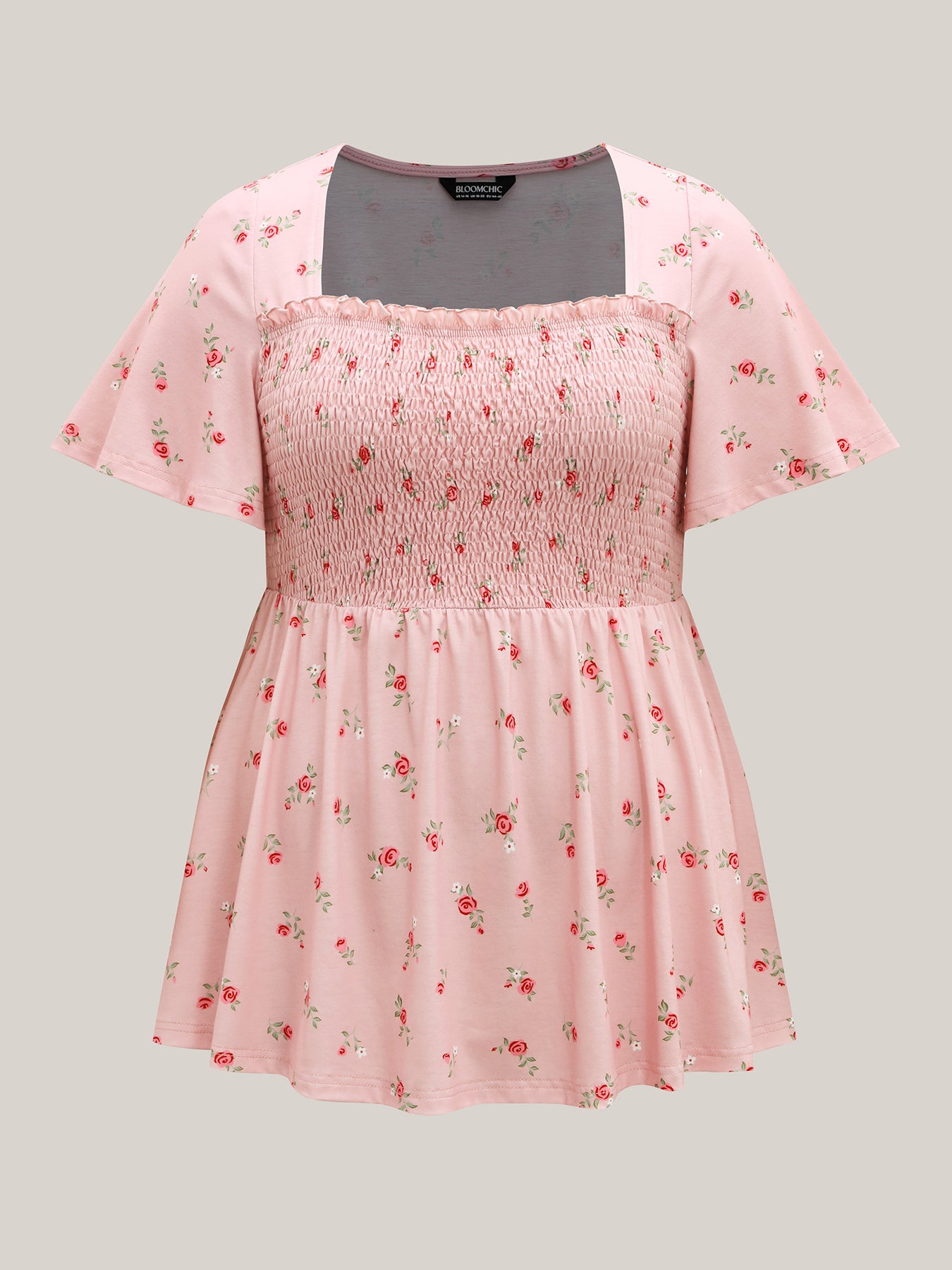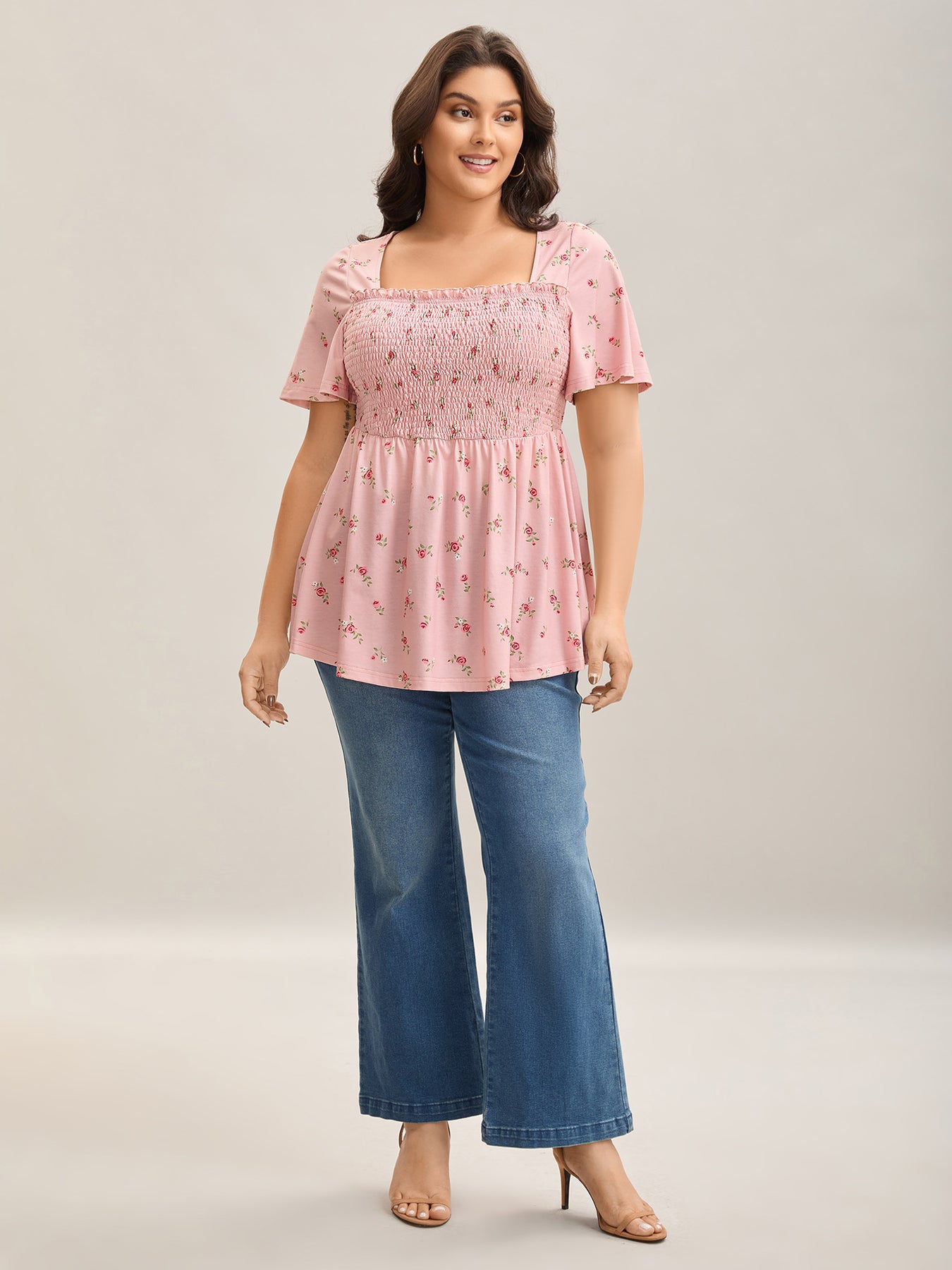 Flirty Floral Print Shirred Knit Top