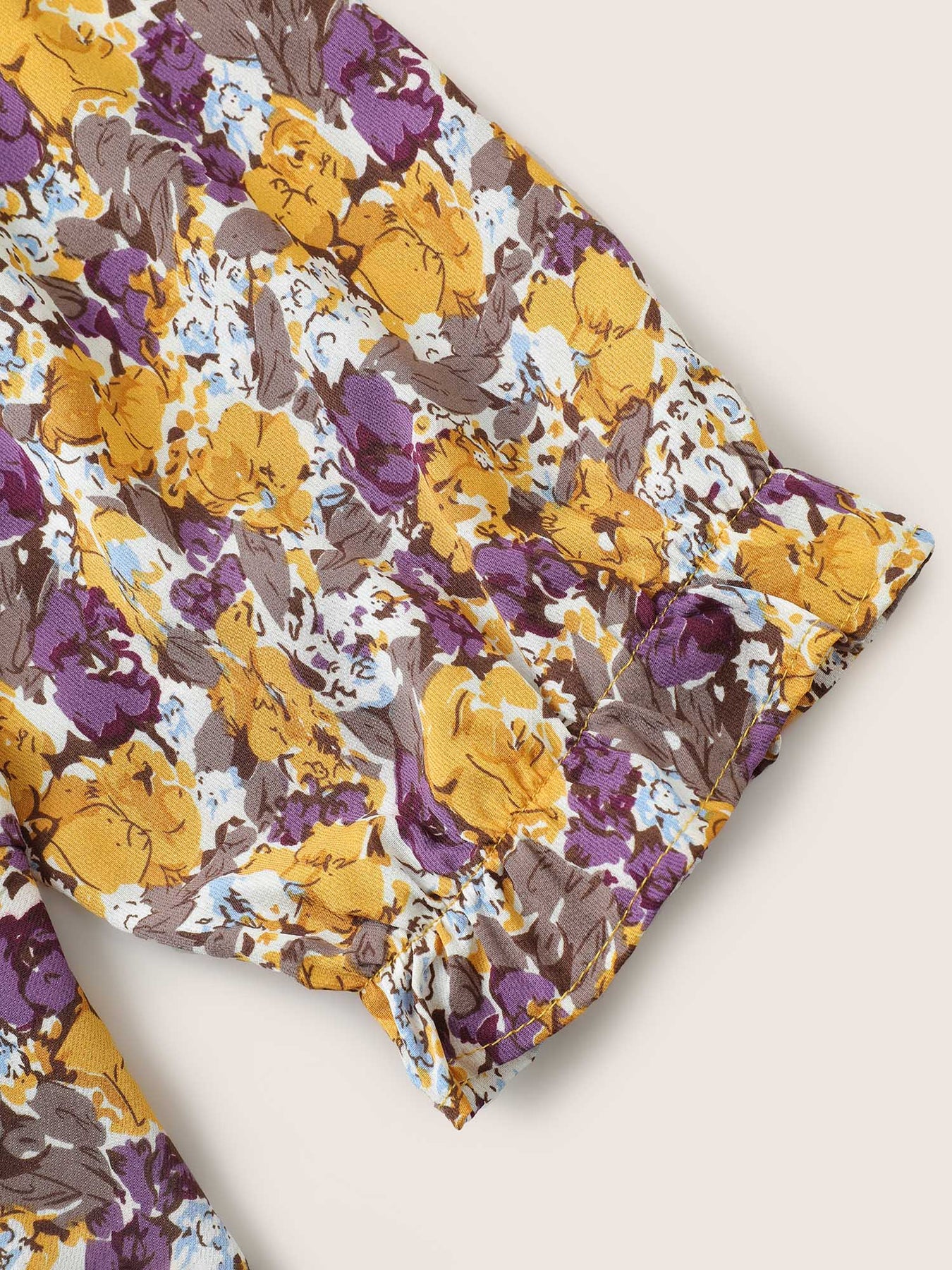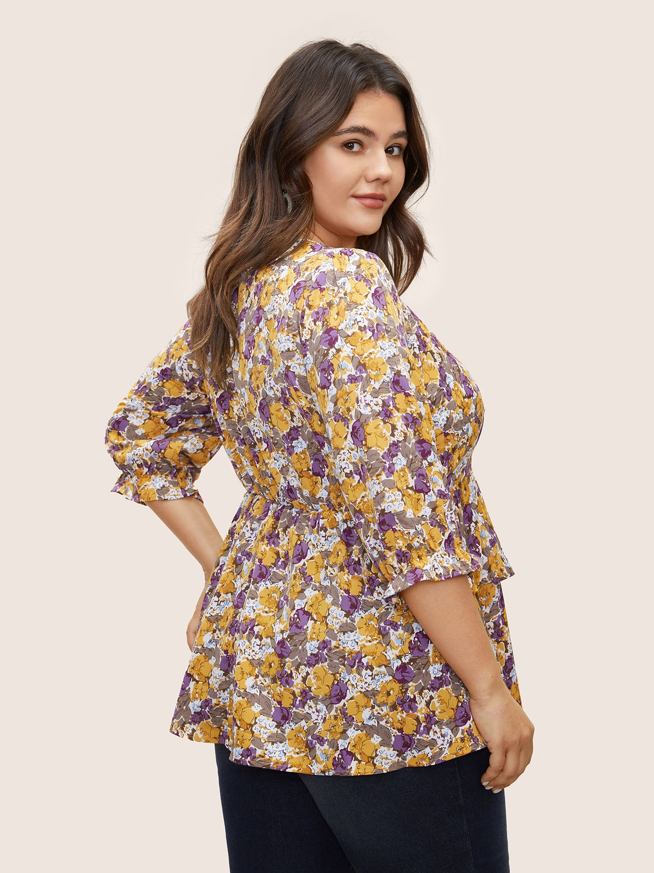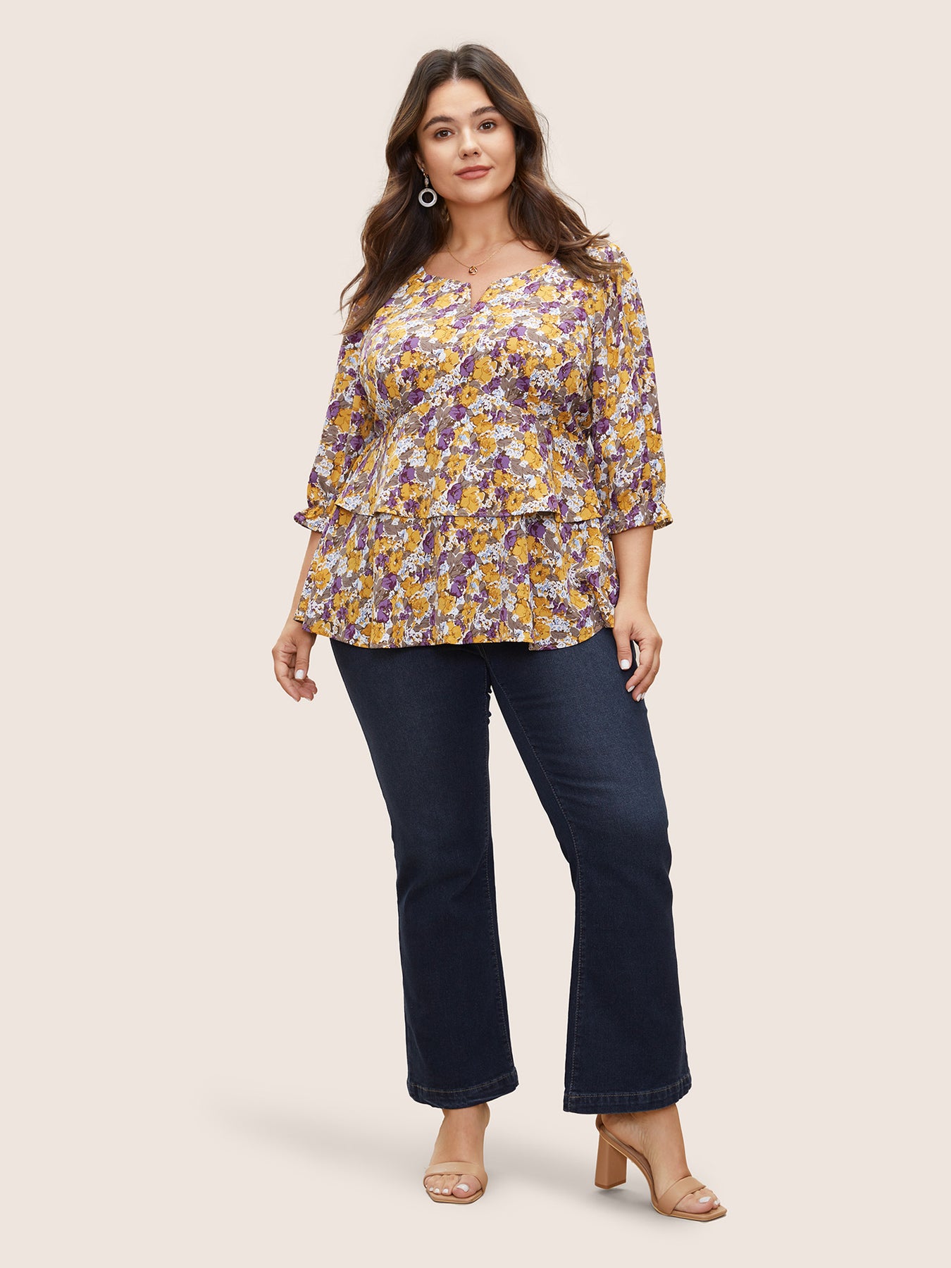 Floral Allover Print Ruffles Tiered Hem Blouse