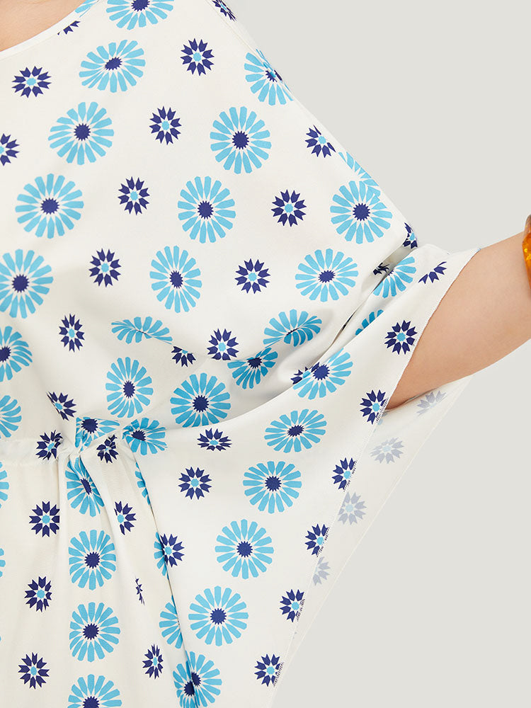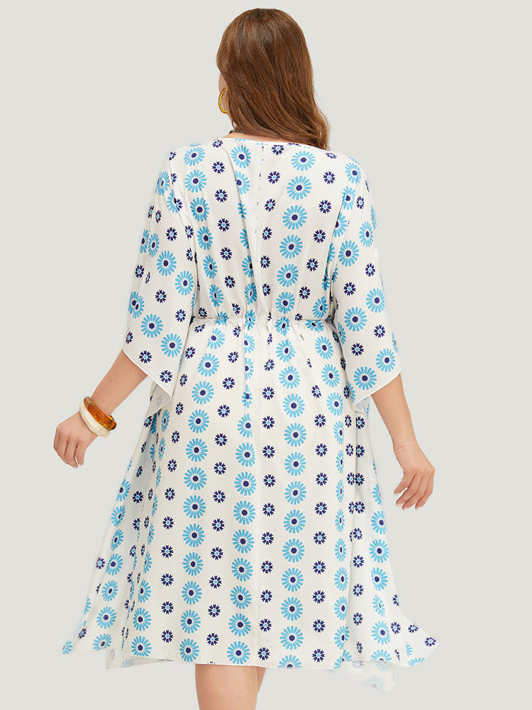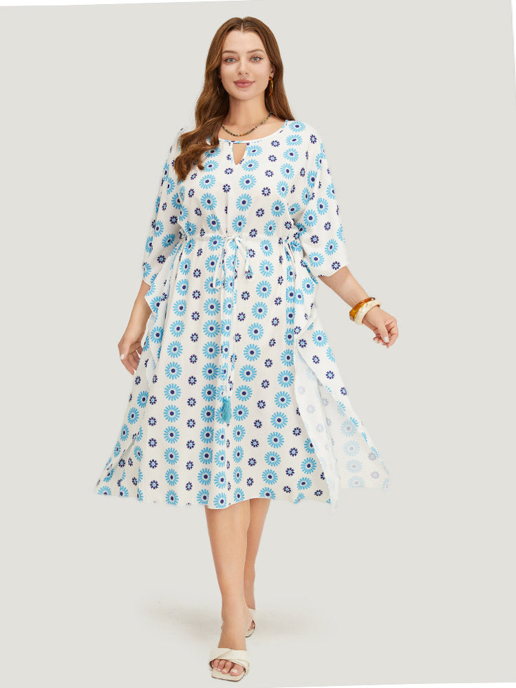 Floral Batwing Sleeve Keyhole Knotted Neck Split Dress