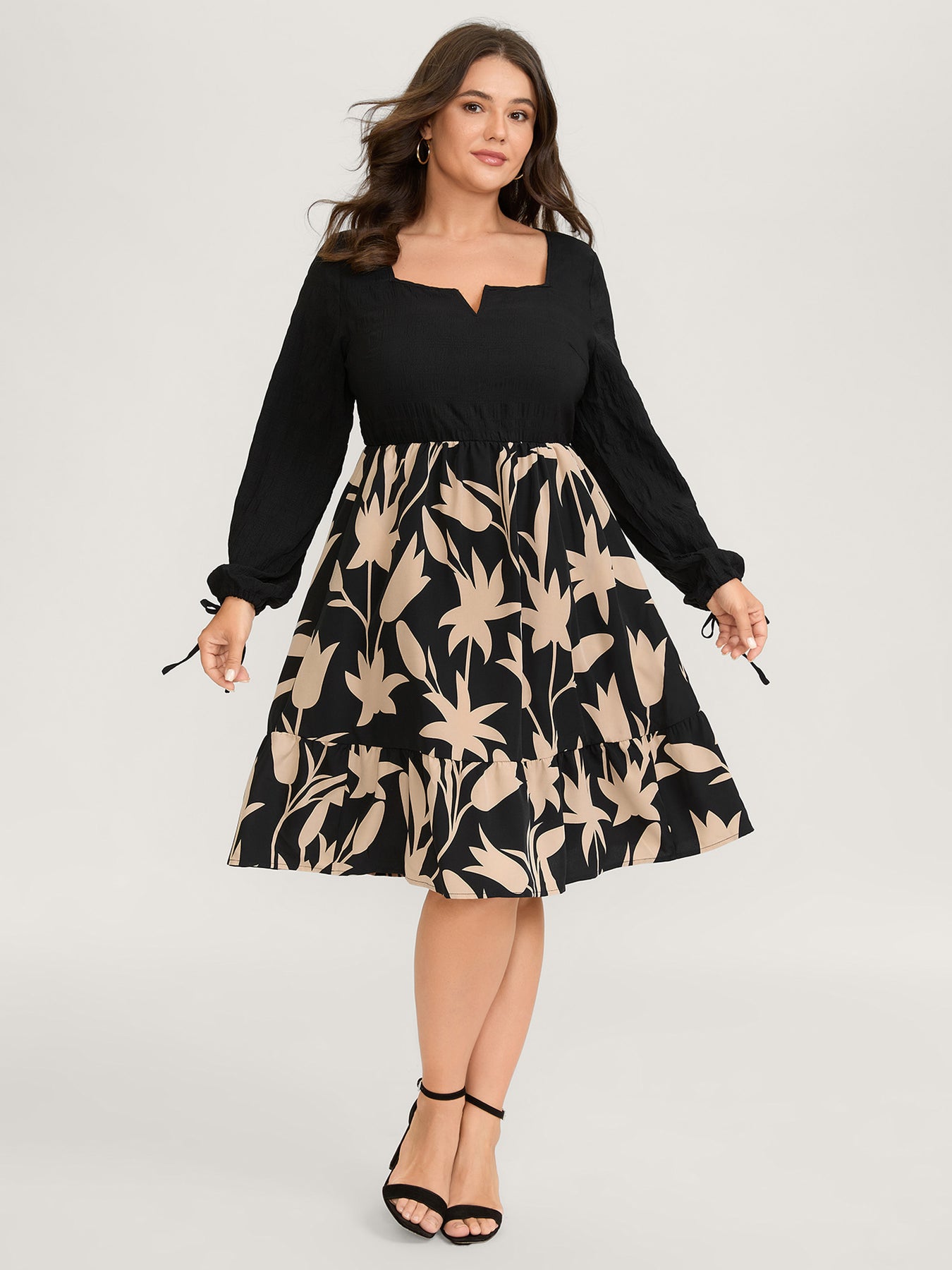 Floral Contrast Print Pockets Midi Dress