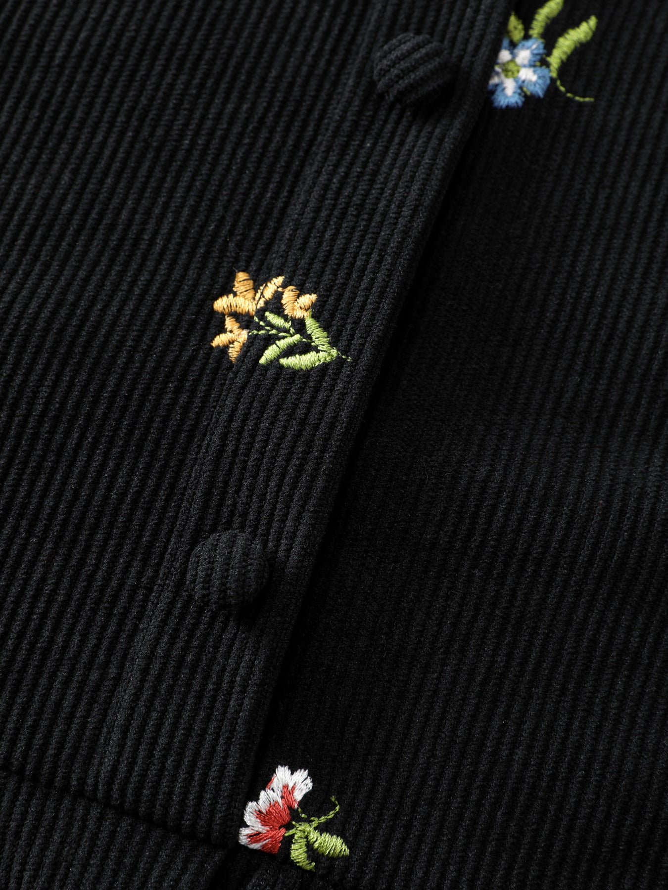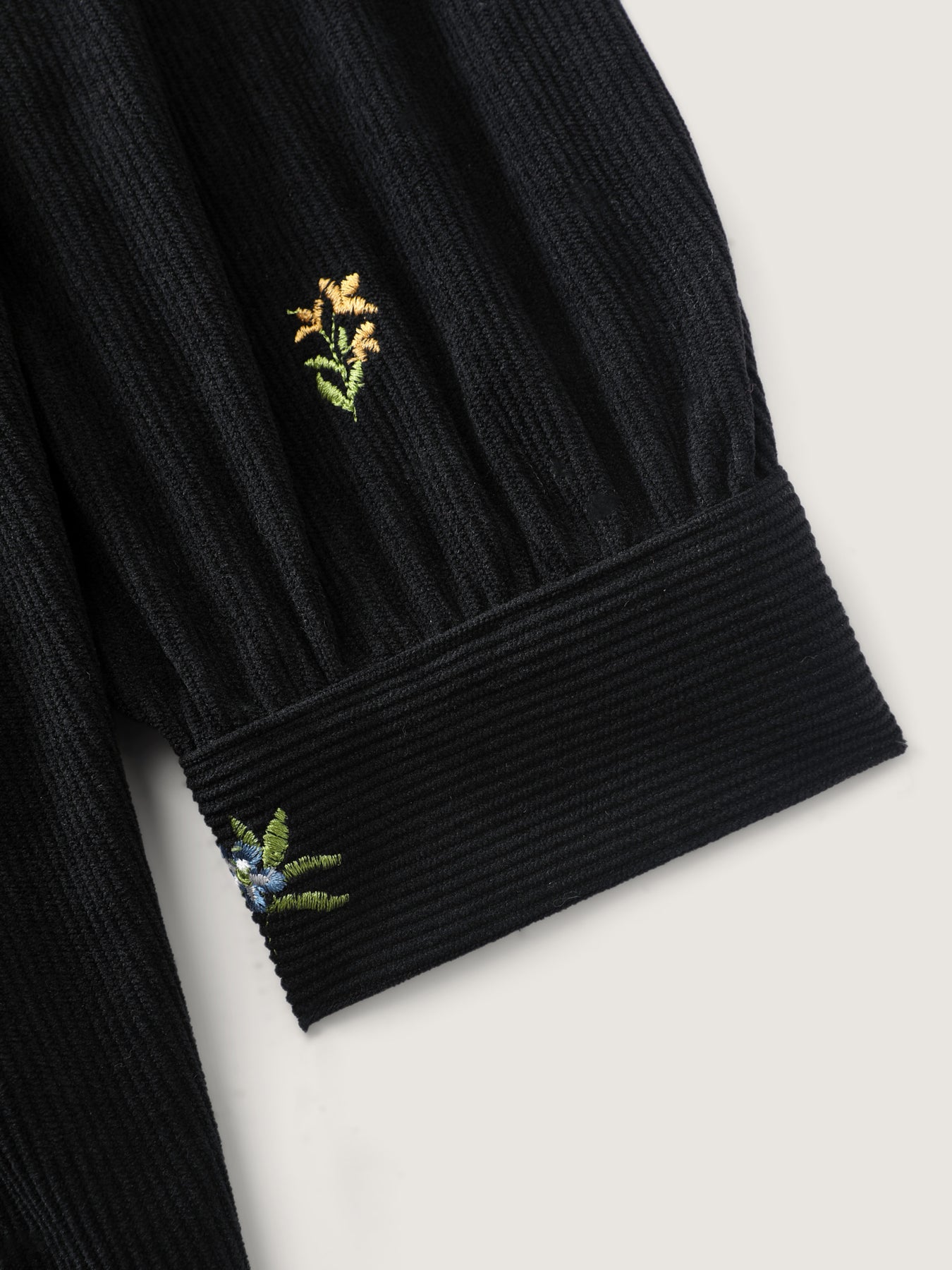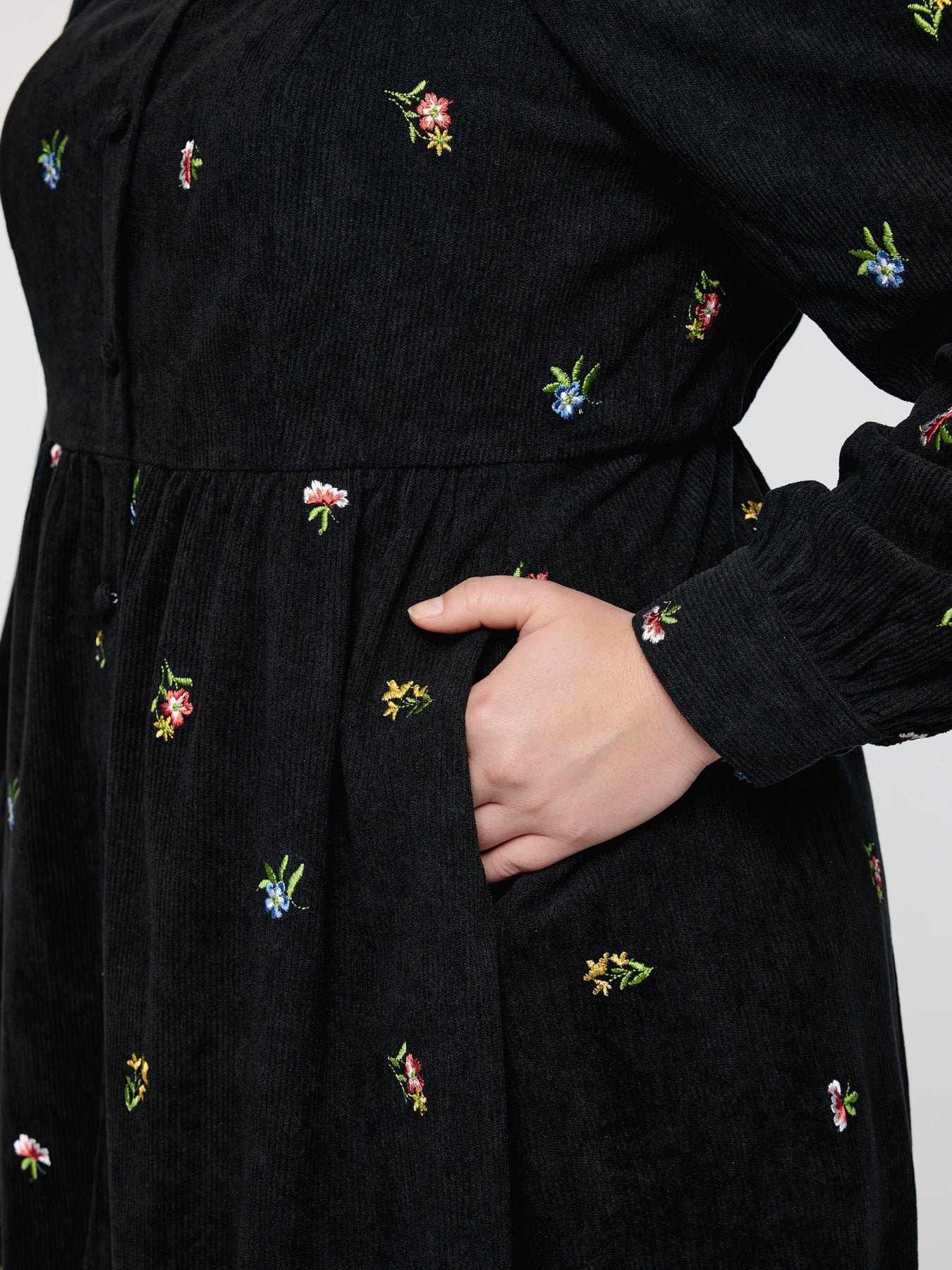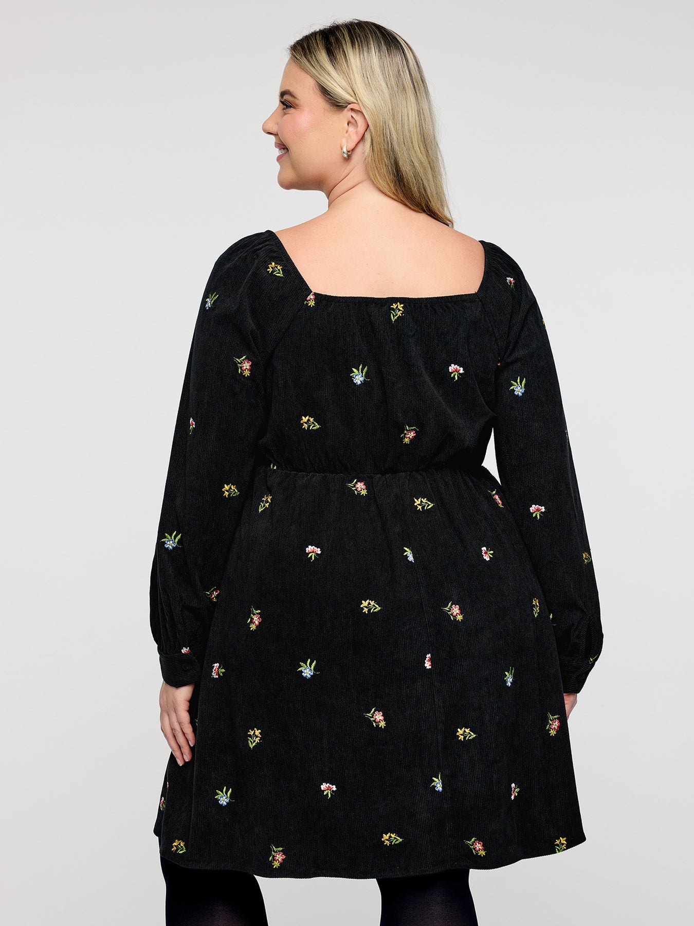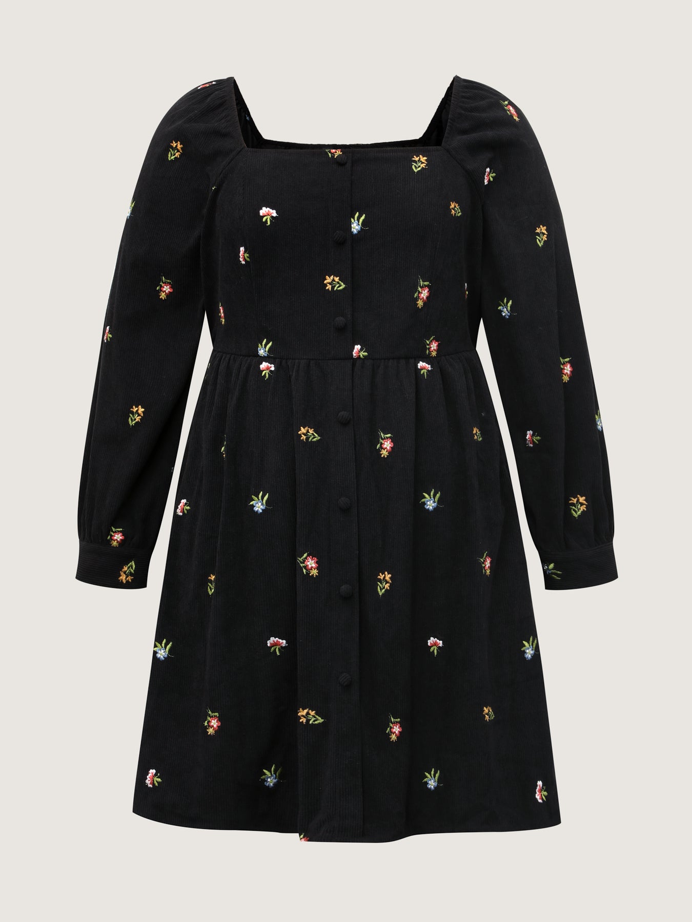 Floral Corduroy Embroidery Square Neck Knee Dress