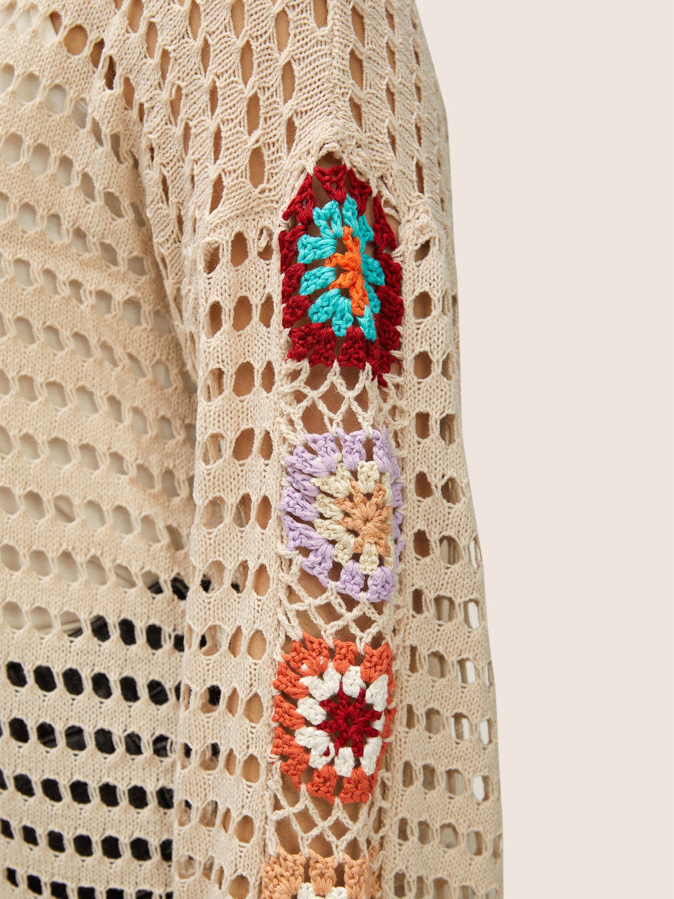 Floral Crochet Pointelle Knit Pullover