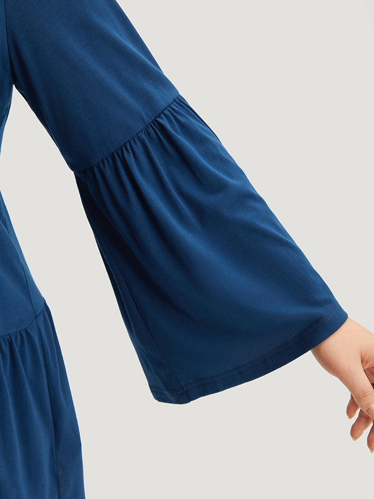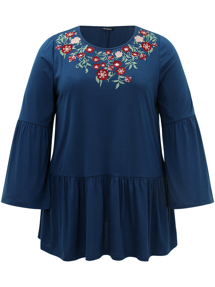 Floral Embroidered Bell Sleeve Crew Neck T-shirt