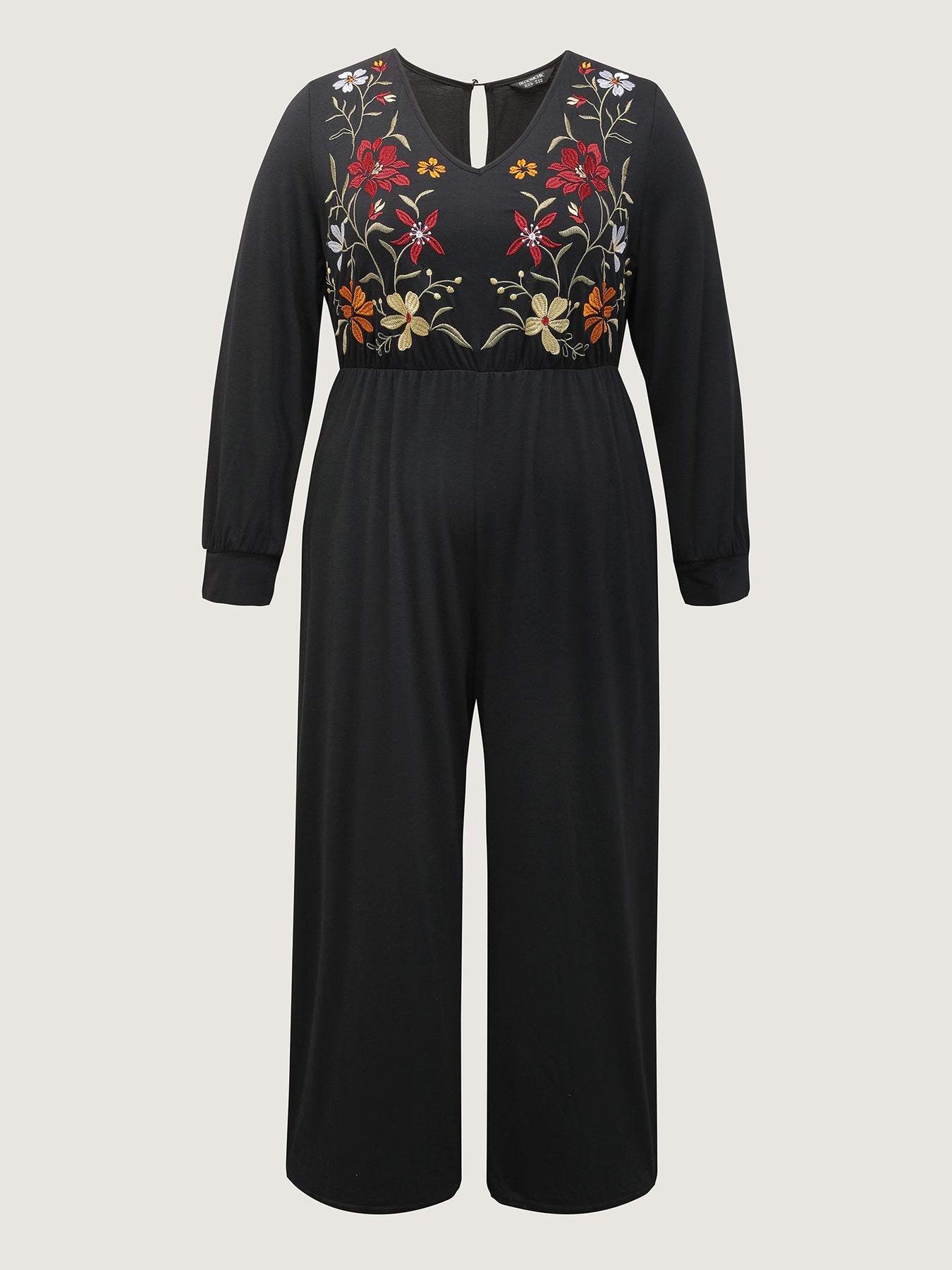 Floral Embroidered Bodice Stretchy Jumpsuit