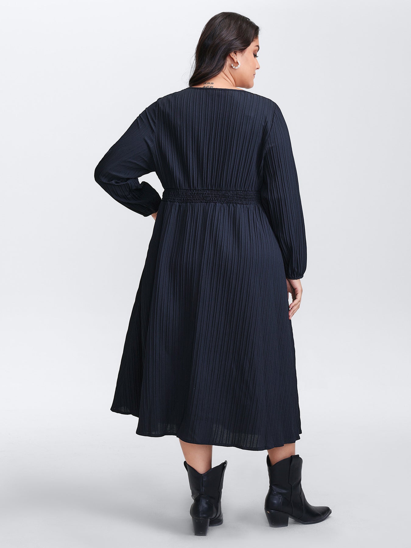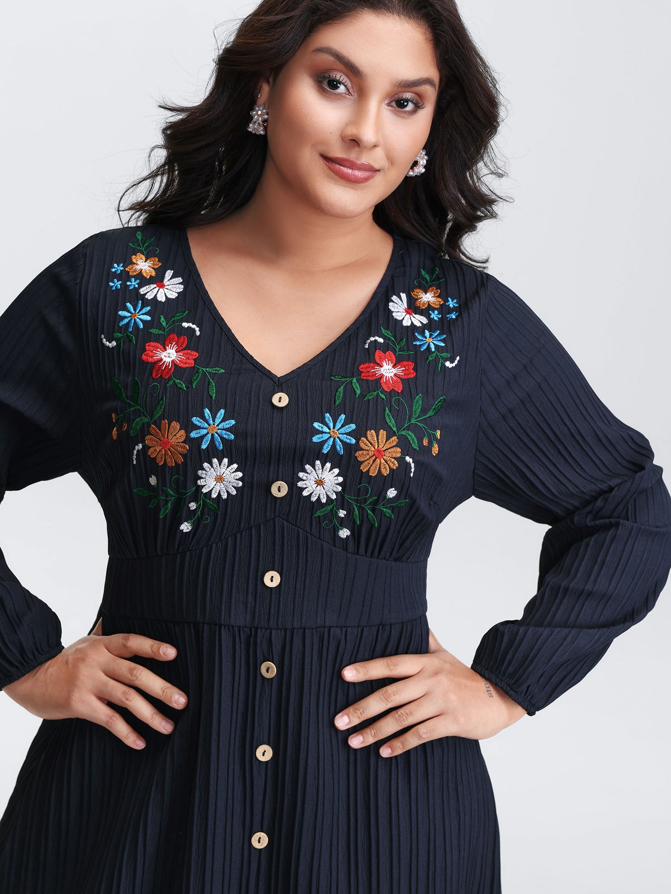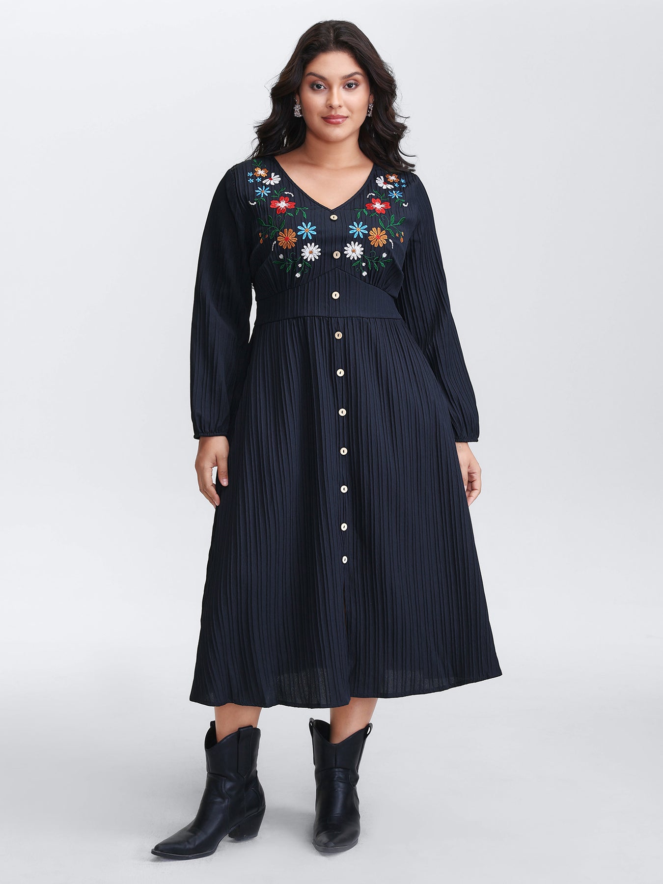 Floral Embroidered Cinched-Waist Midi Dress