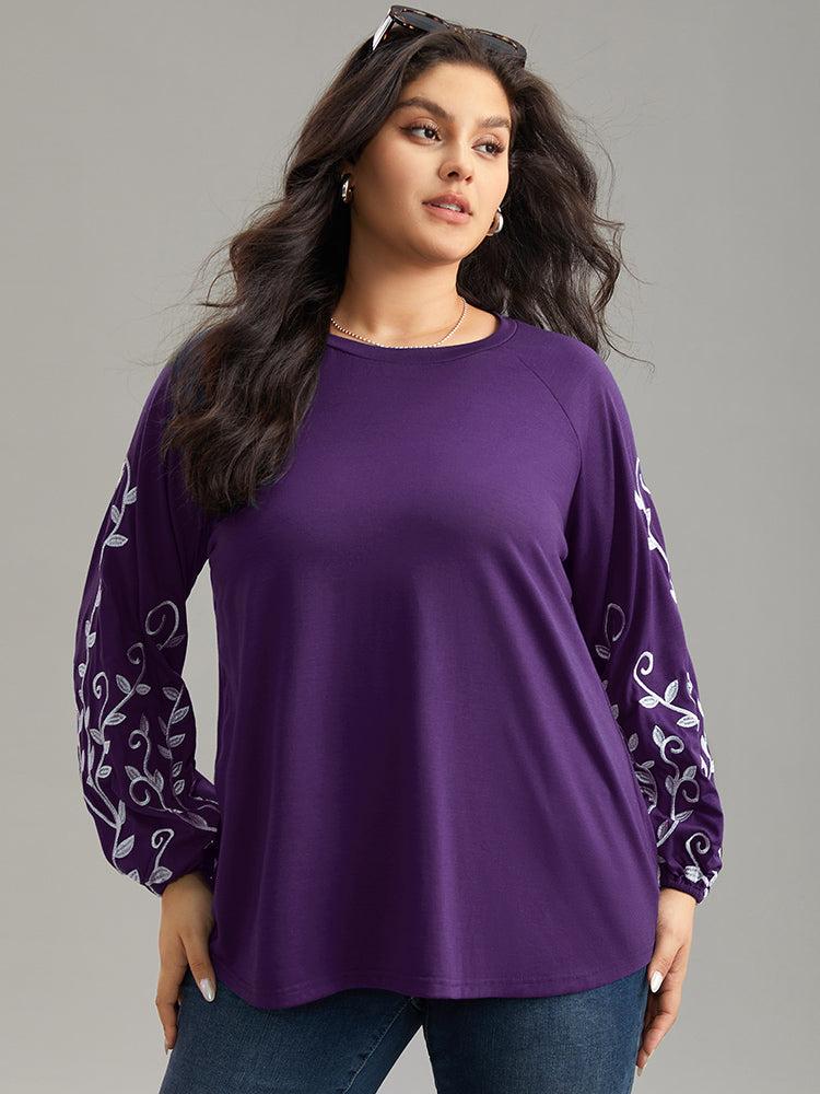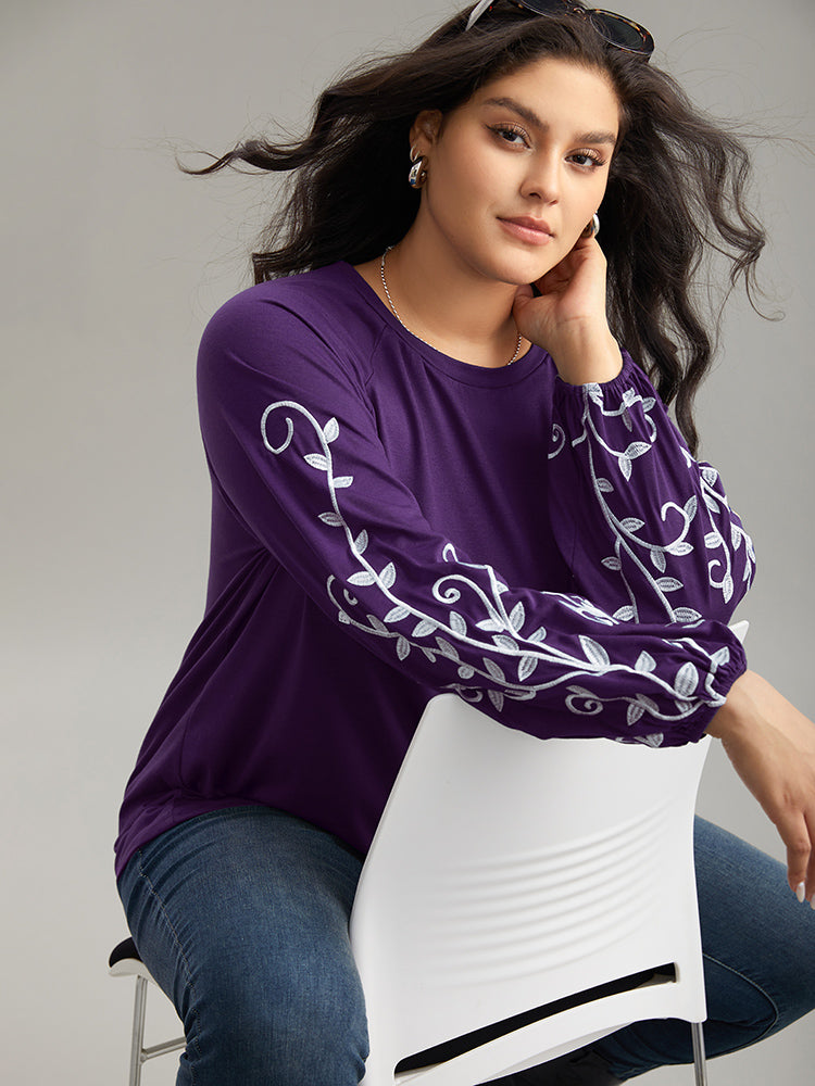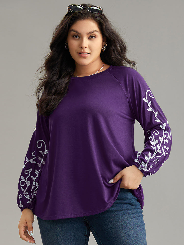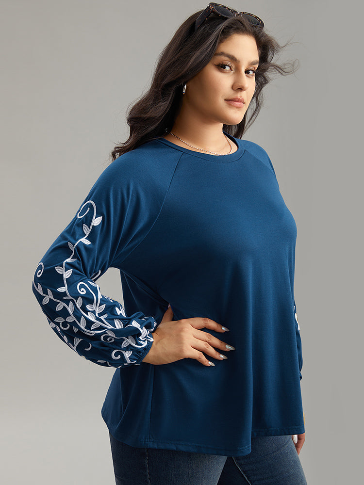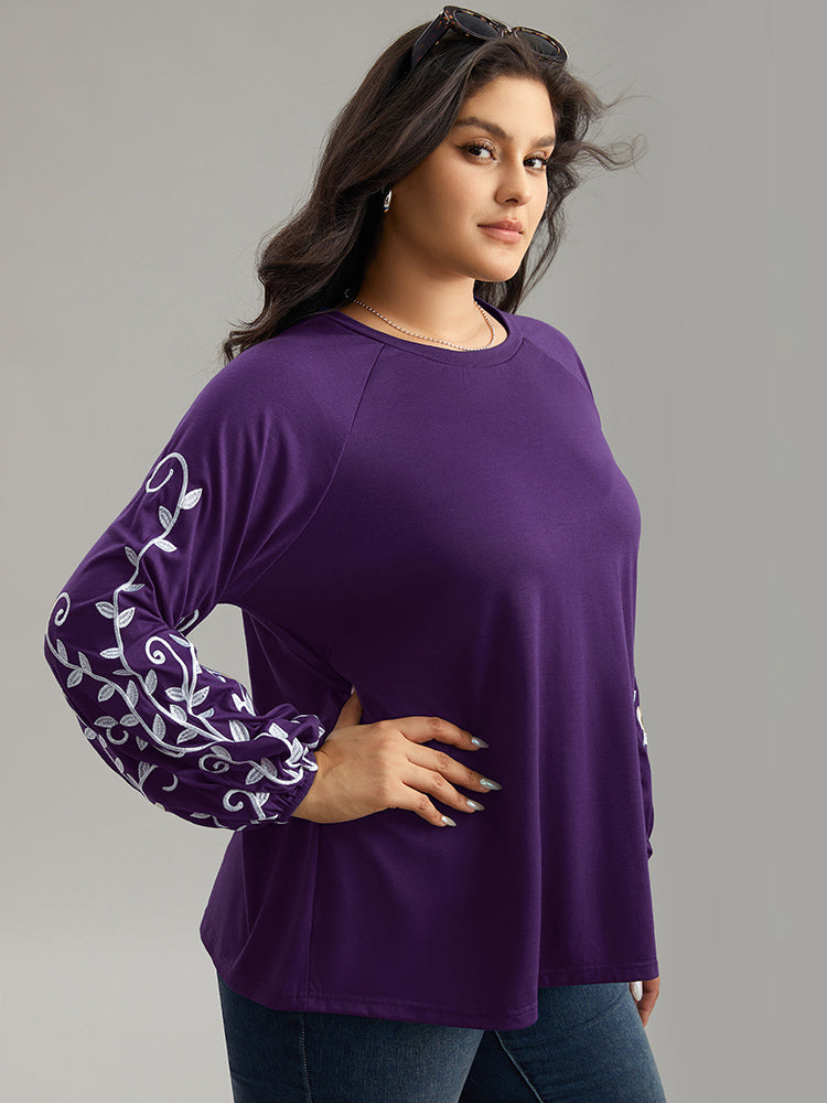Floral Embroidered Contrast Raglan Sleeve T-shirt
