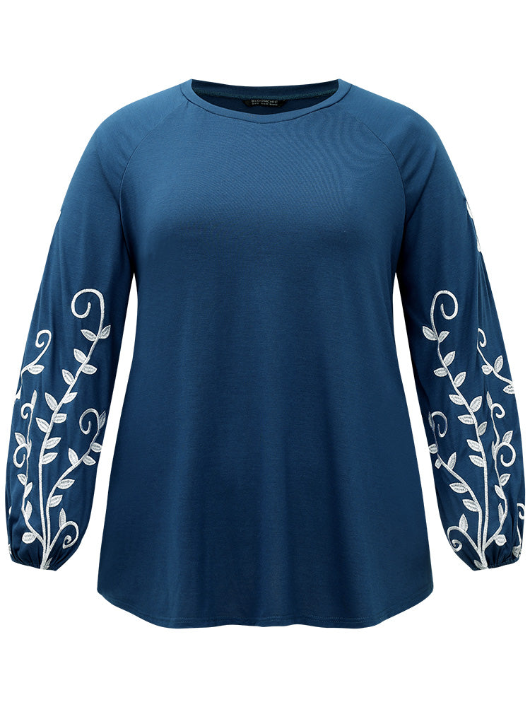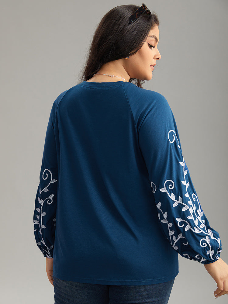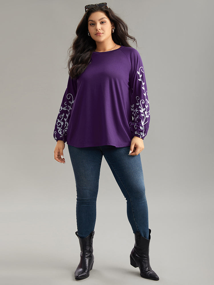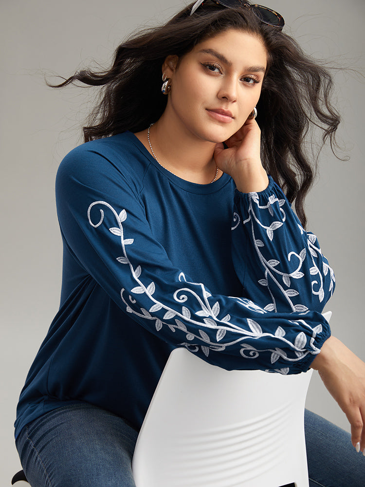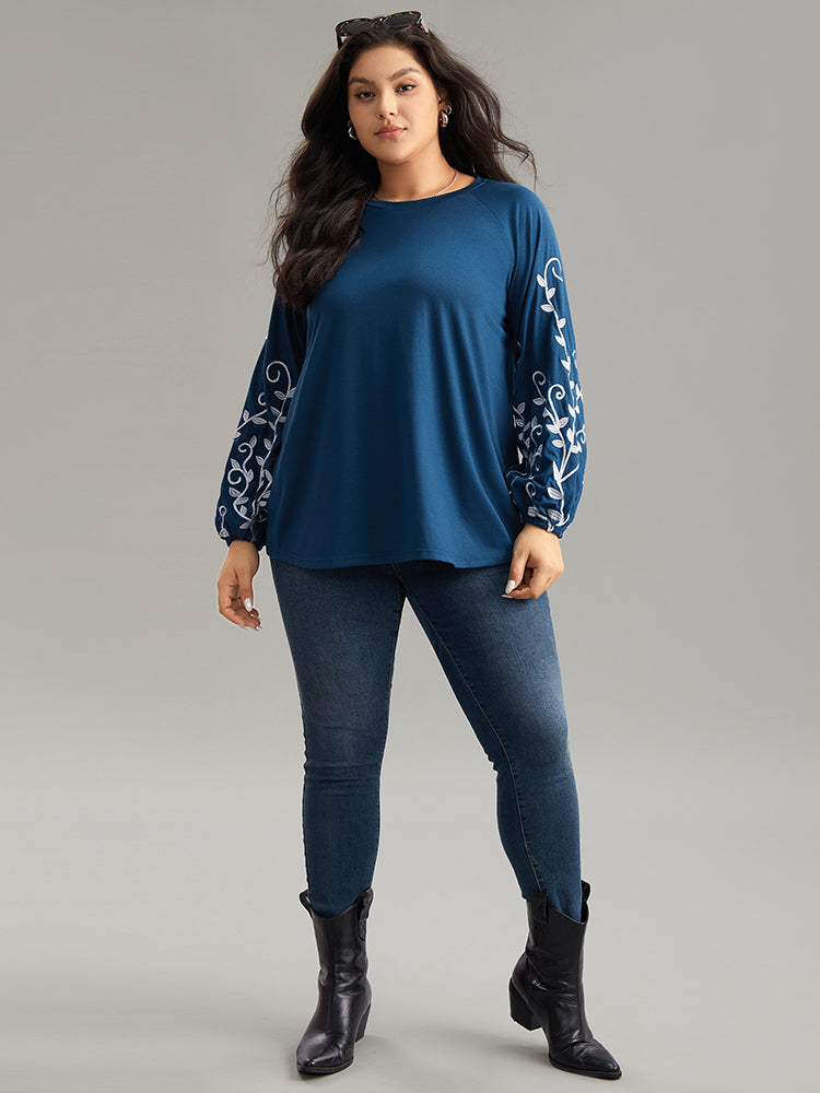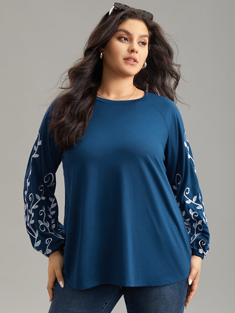 Floral Embroidered Contrast Raglan Sleeve T-shirt