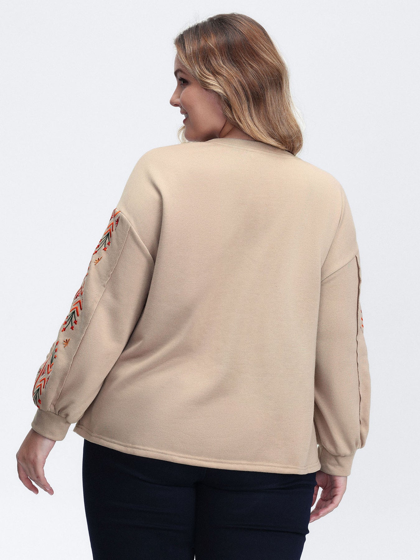 Floral Embroidered Sleeve Sweatshirt