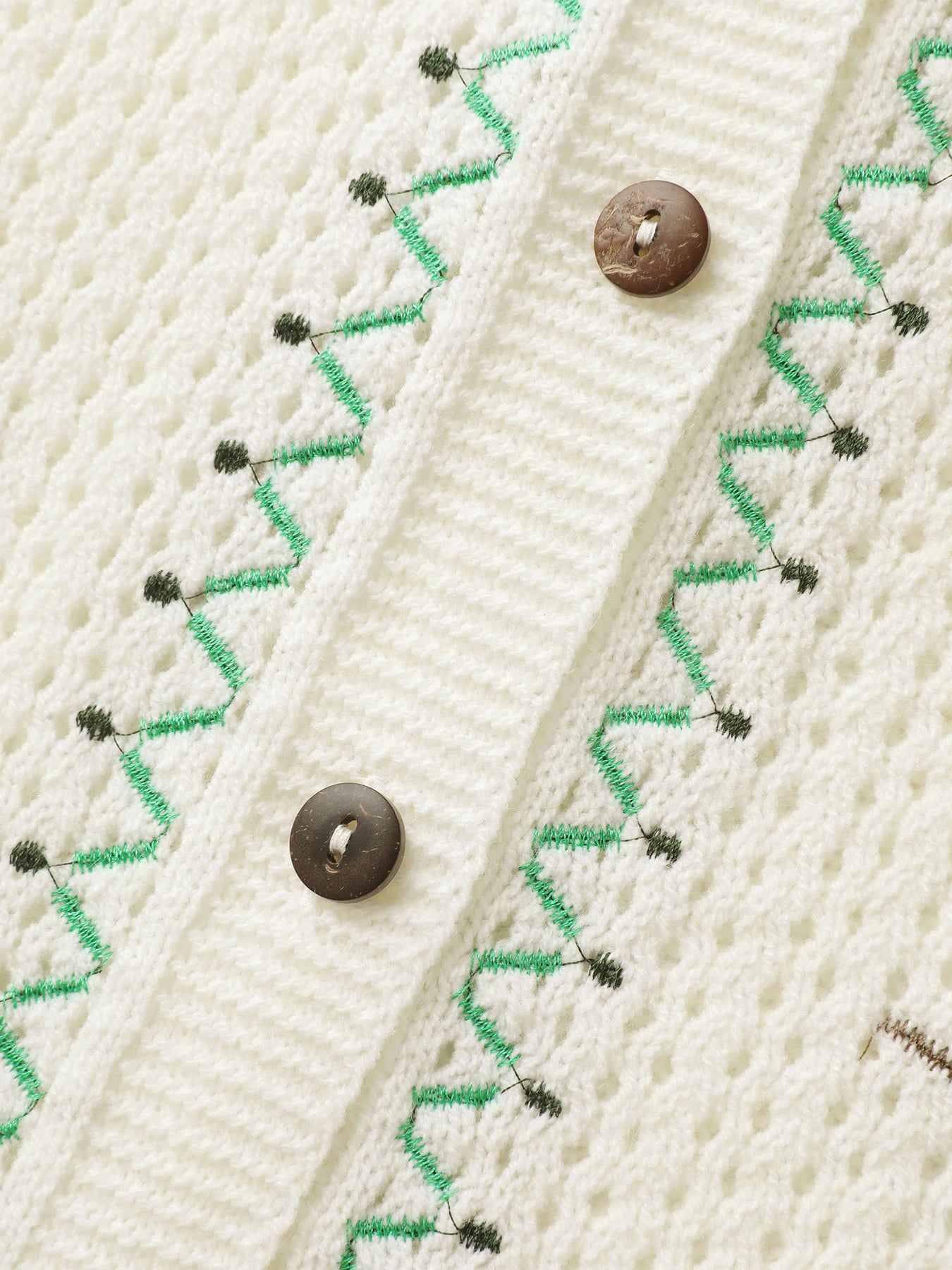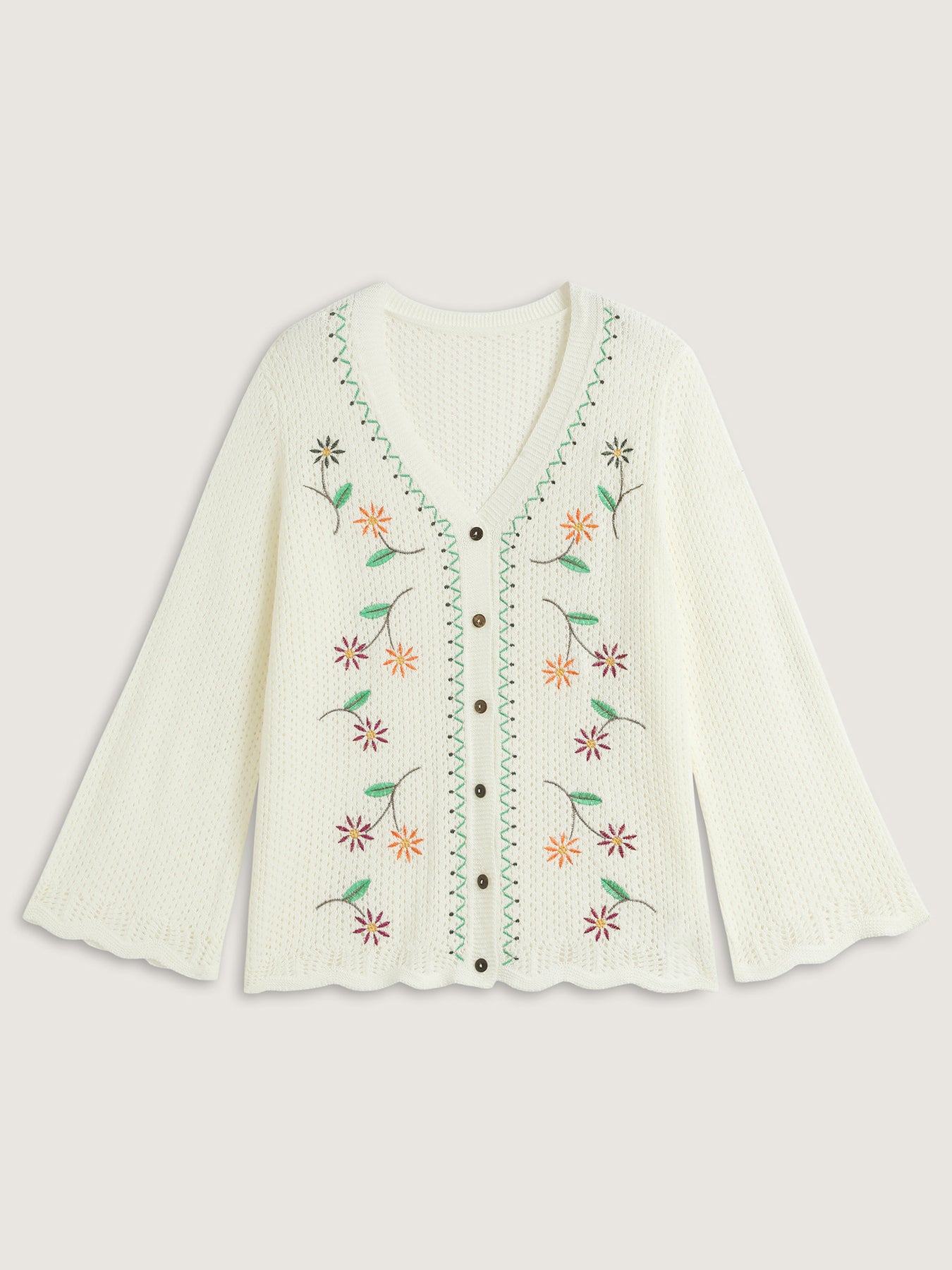 Floral Embroidery Flared Sleeve Knit Cardigan