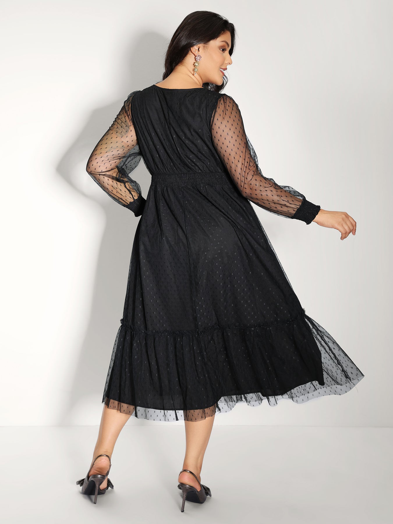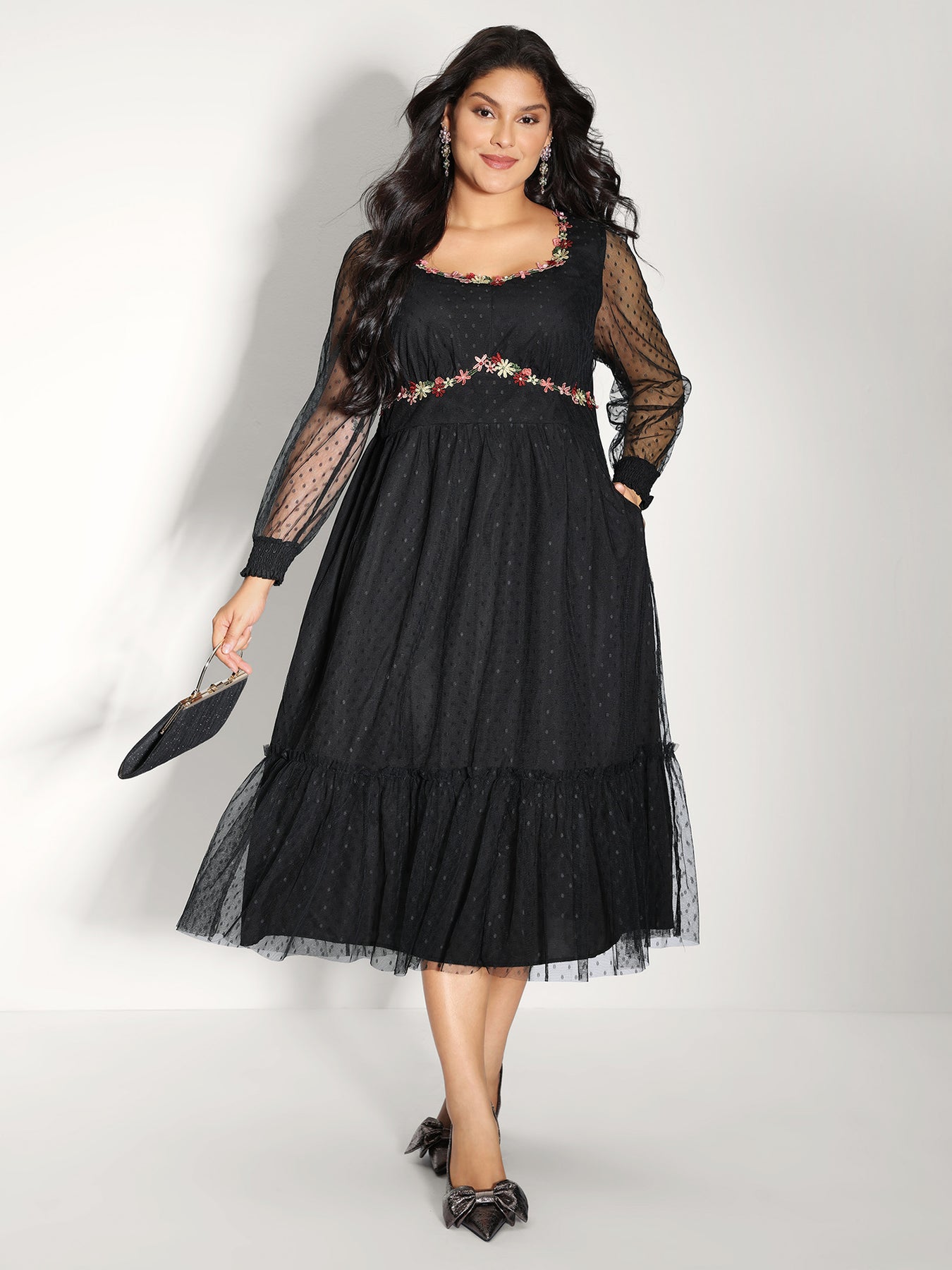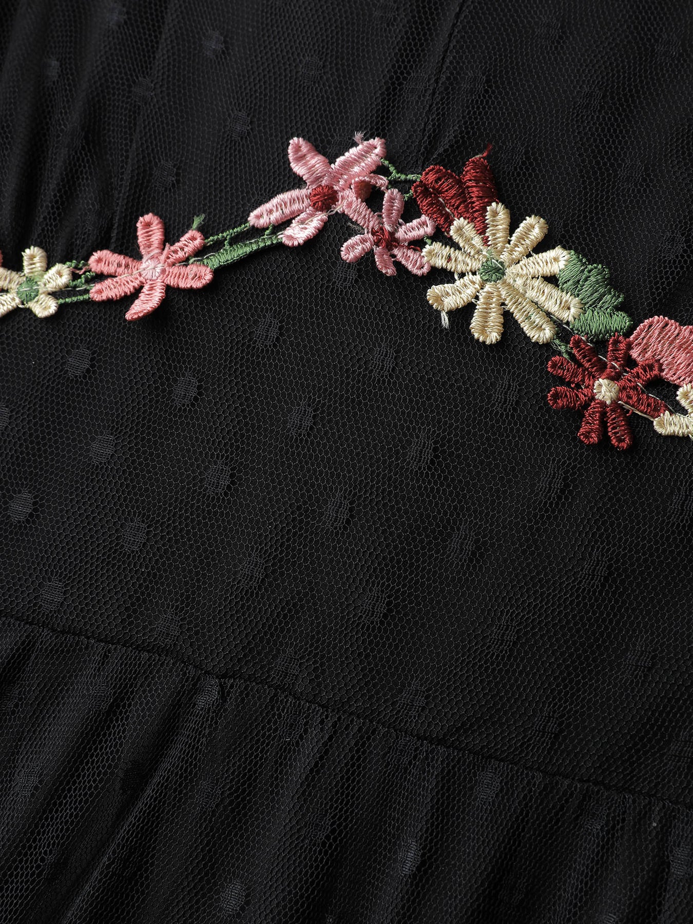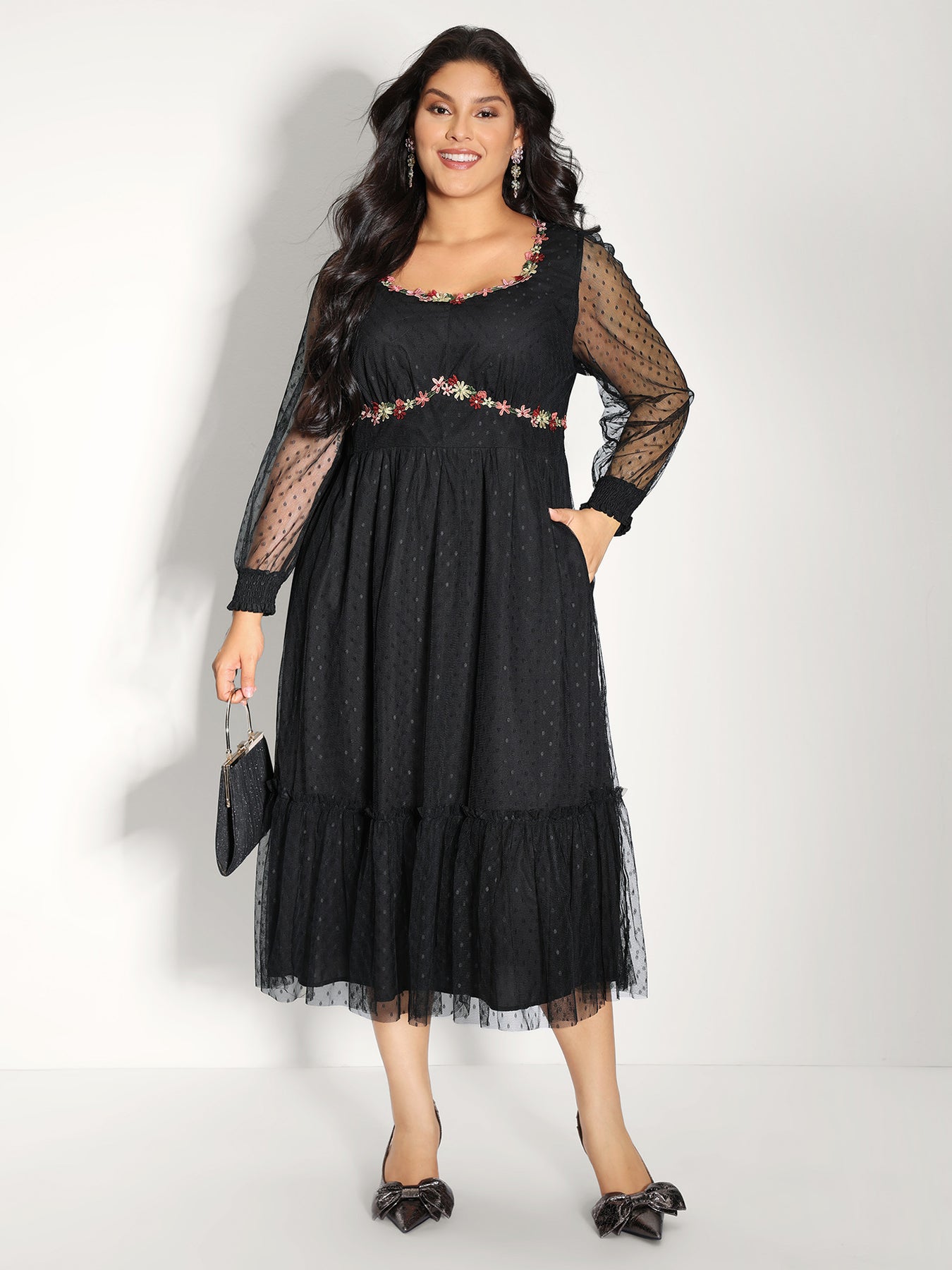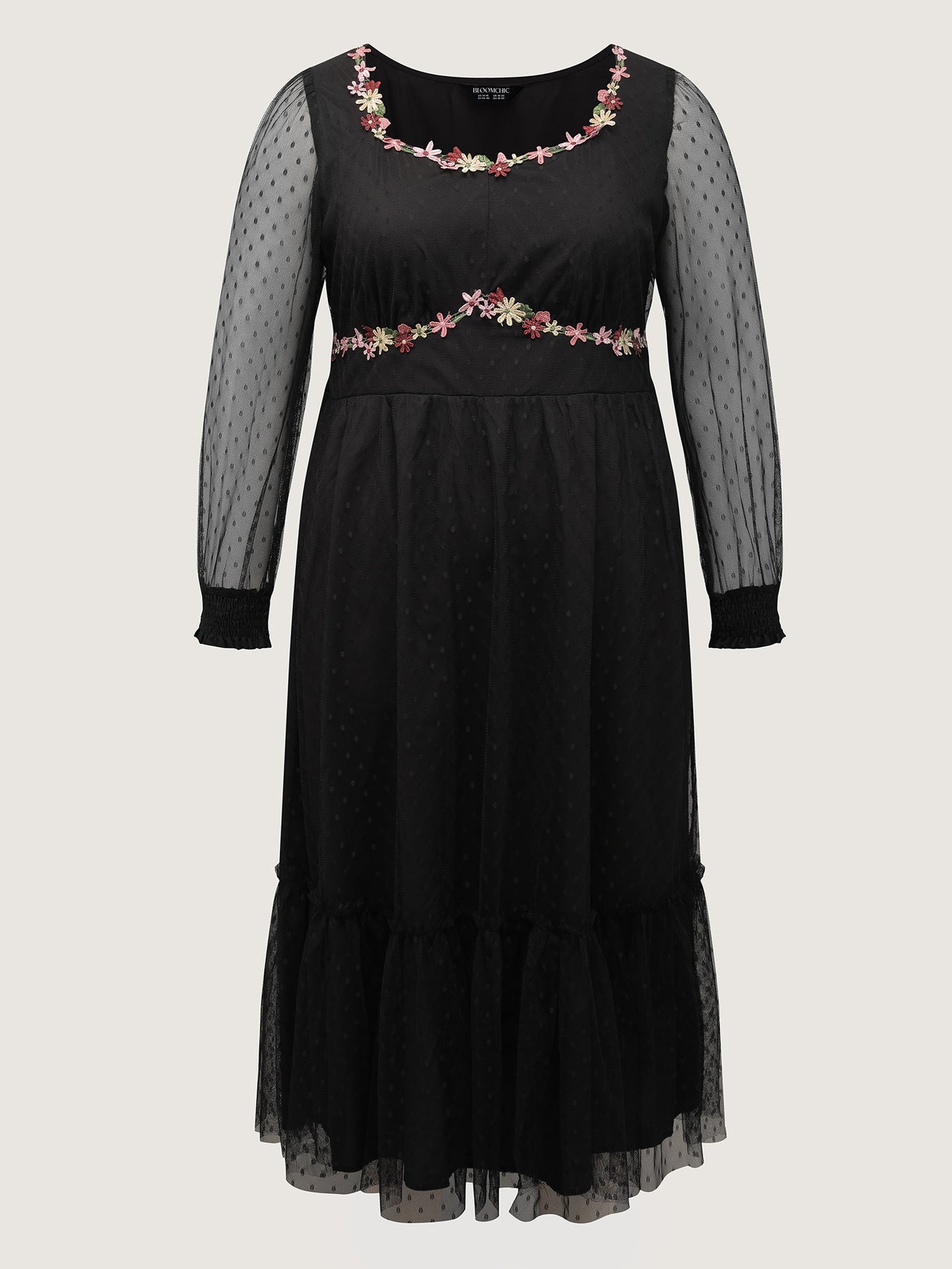 Floral Embroidery Sheer Detail Midi Dress