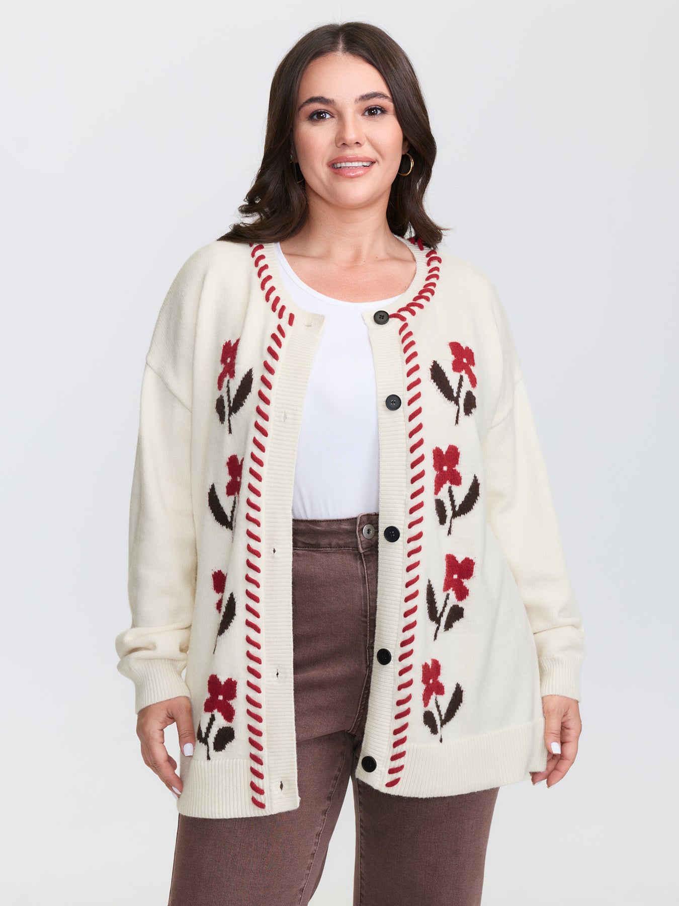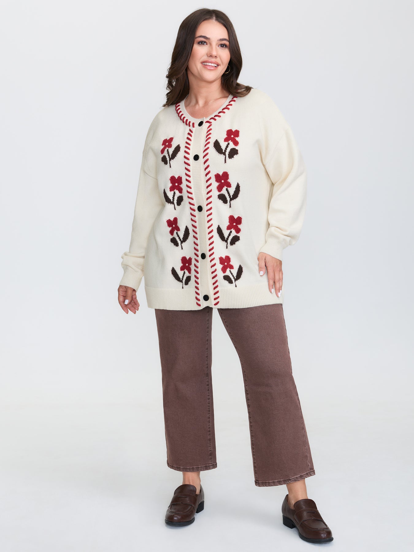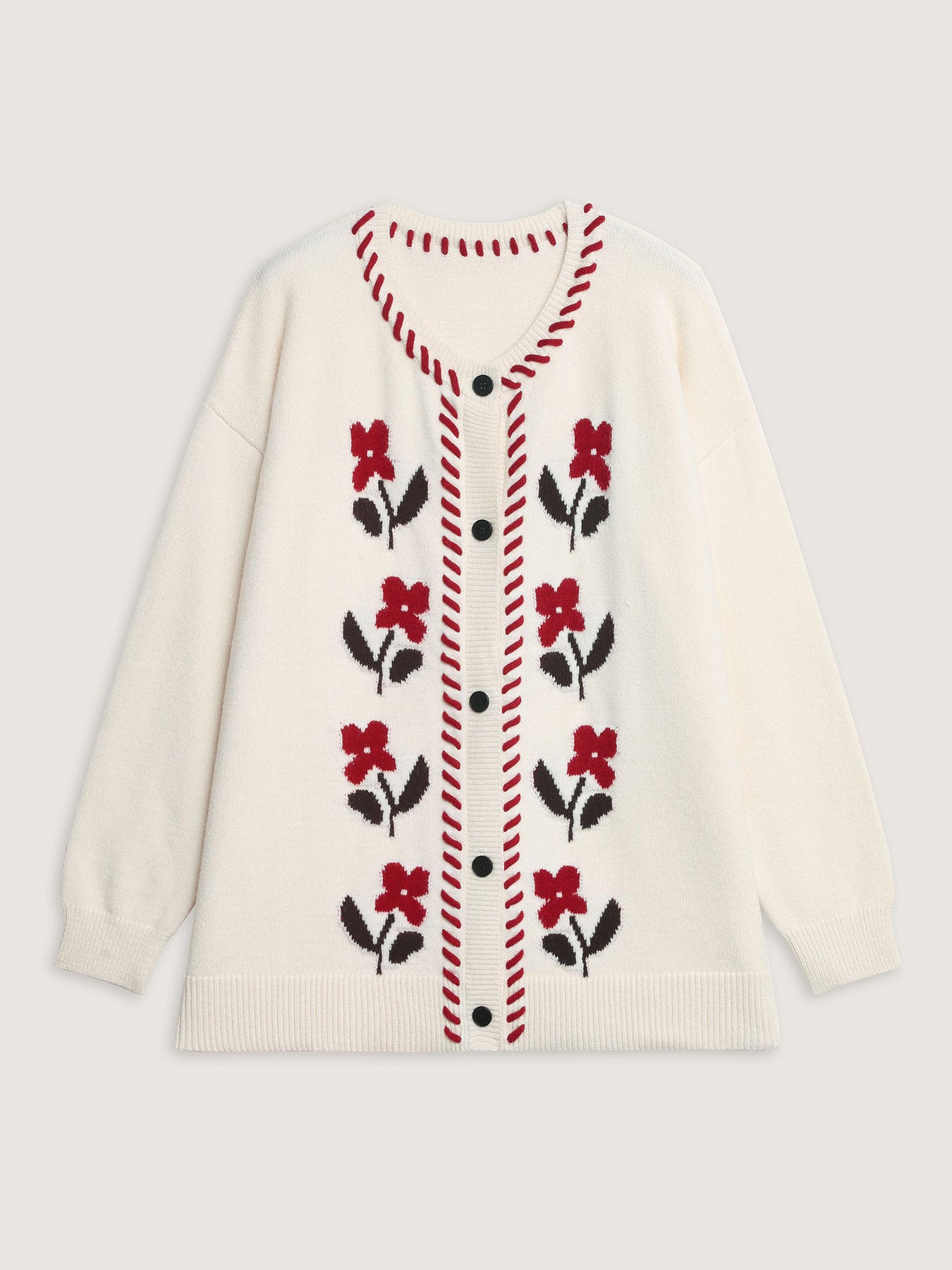Floral Handmade Stitches Jacquard Knit Cardigan
