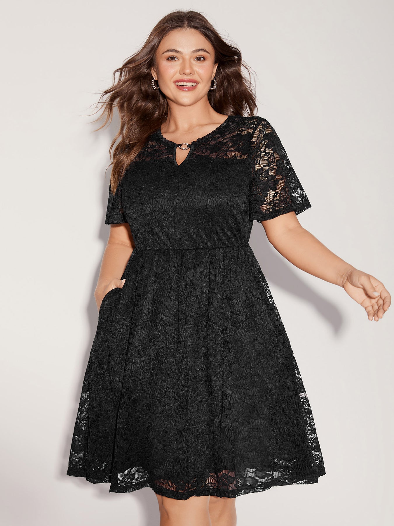 Floral Lace Metal Detail Midi Dress
