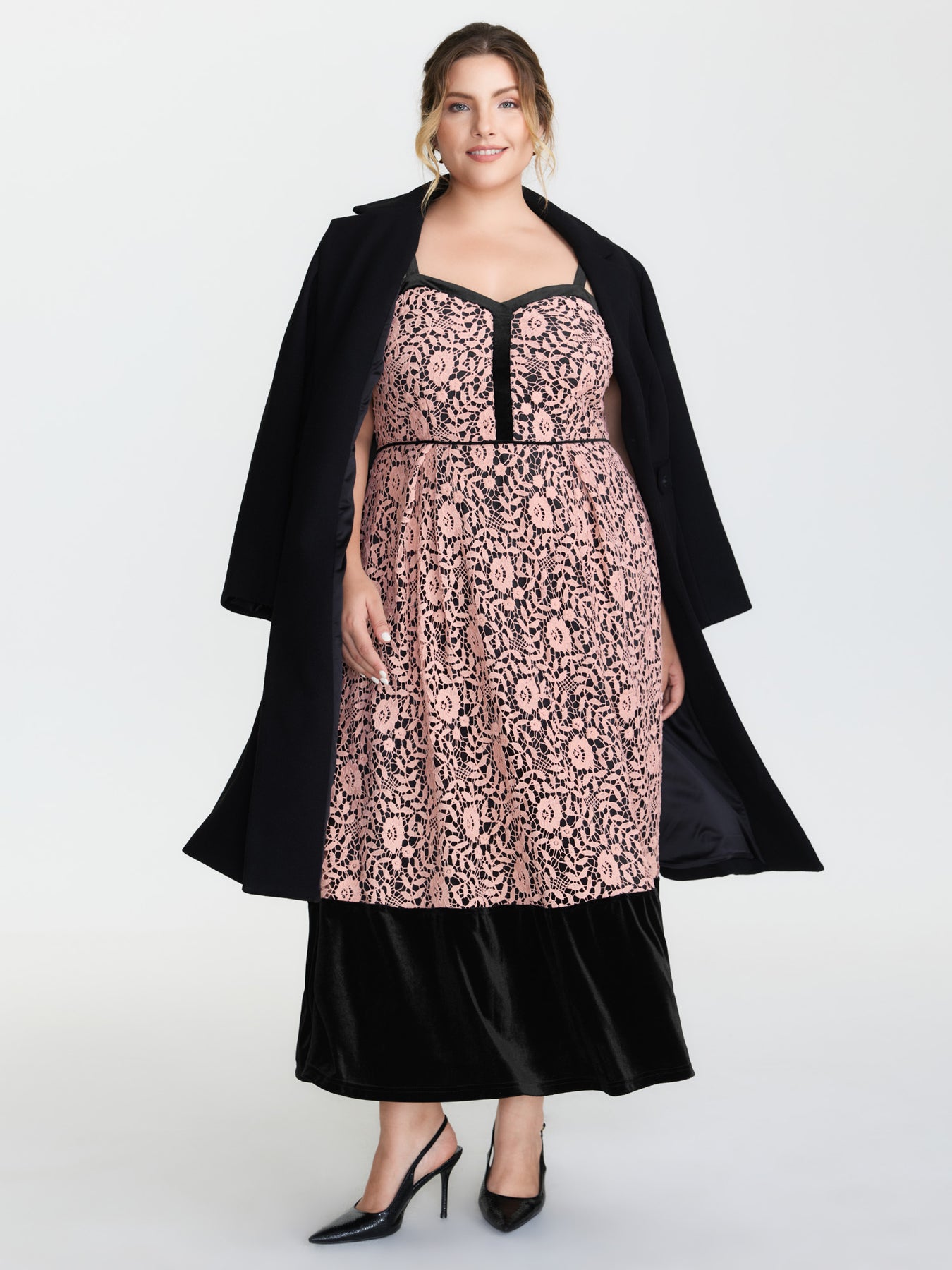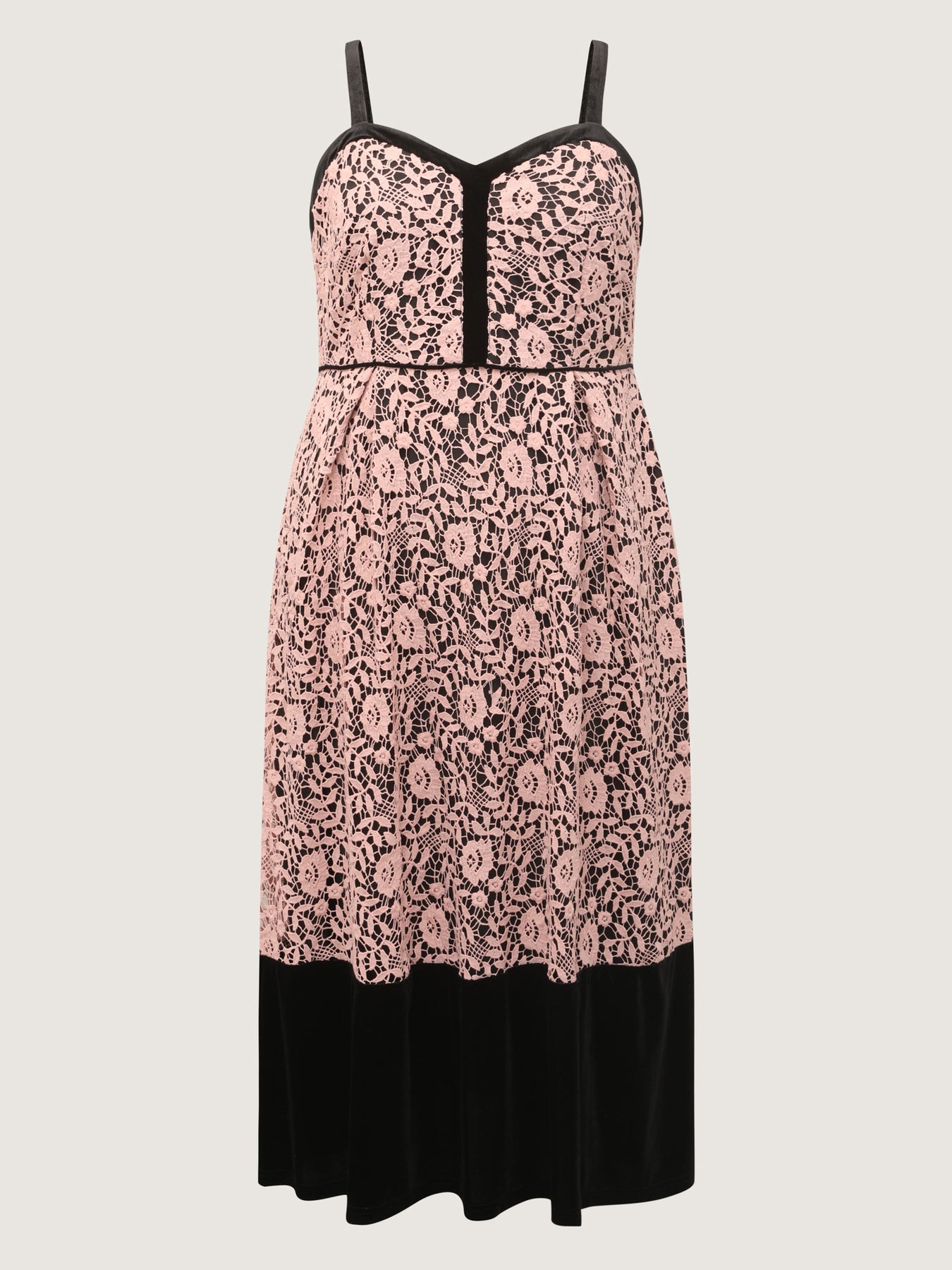 Floral Lace Trim Color Contrast Maxi Dress