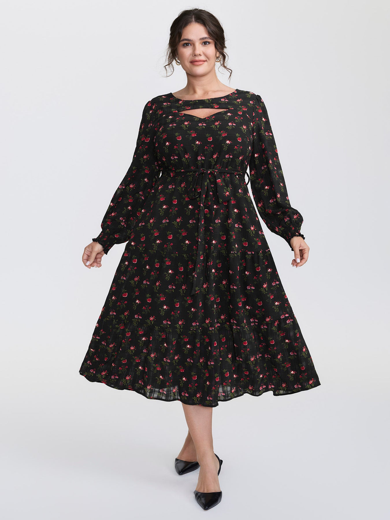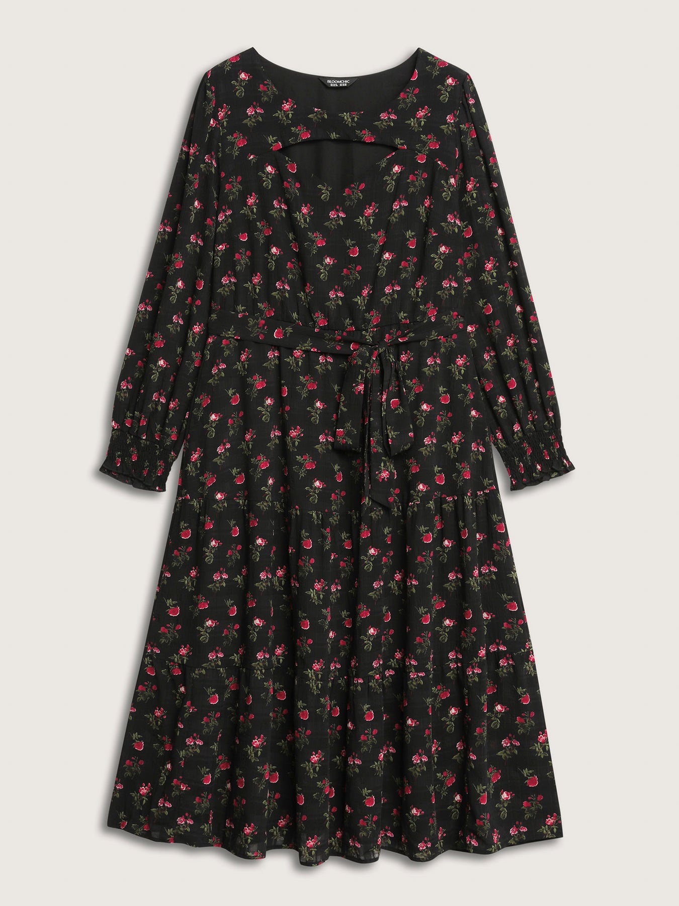 Floral Neck Cut-Out Shirred Maxi Dress