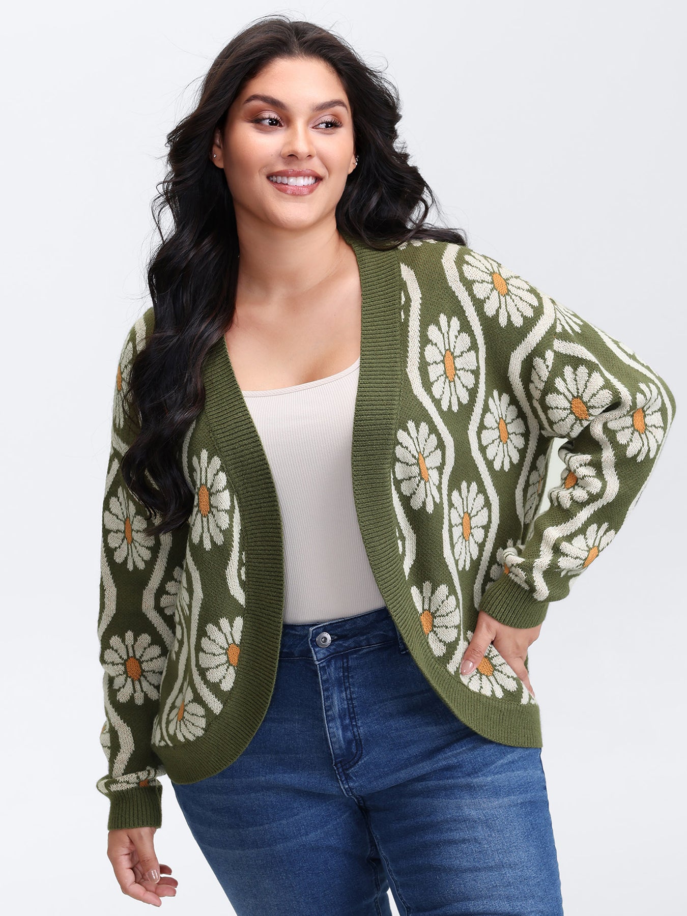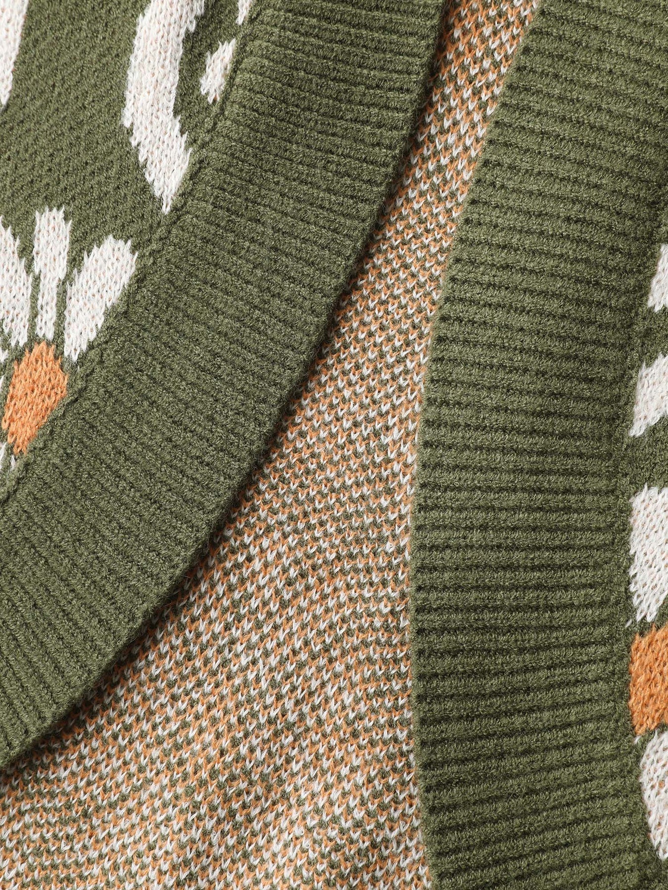 Floral Pattern Jacquard Arc Hem Knit Cardigan