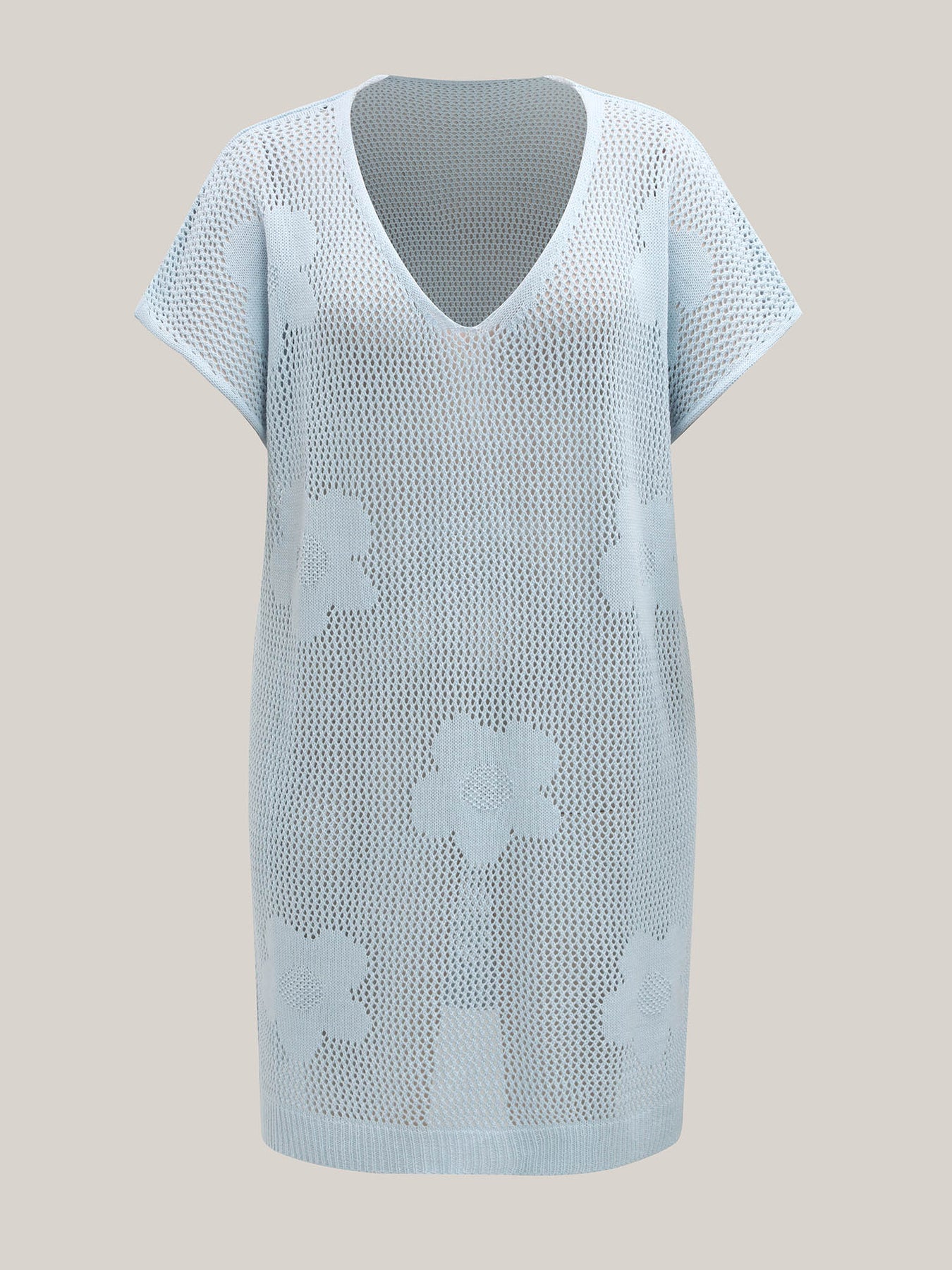 Floral Pattern Jacquard Slit Swim Cover-Up