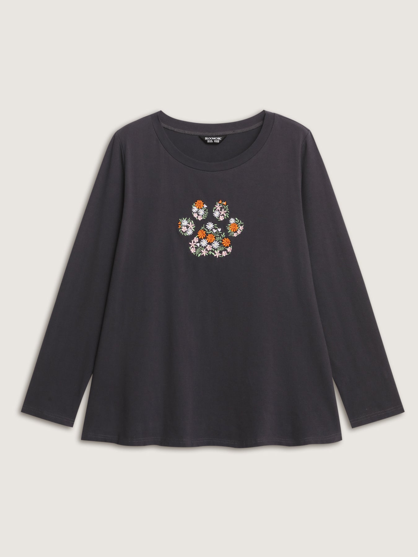 Floral Paws Embroidered Curvy Hem T-Shirt