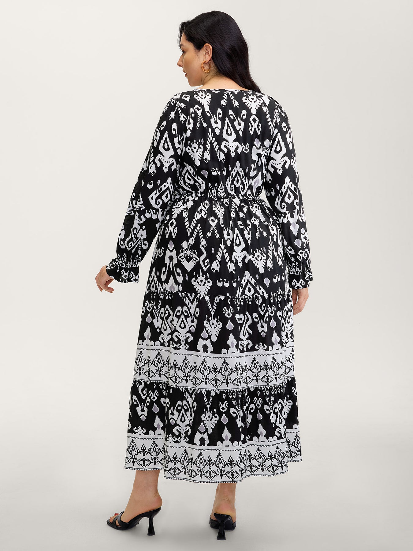Floral Print Adjustable Drawstring Waist Midi Dress