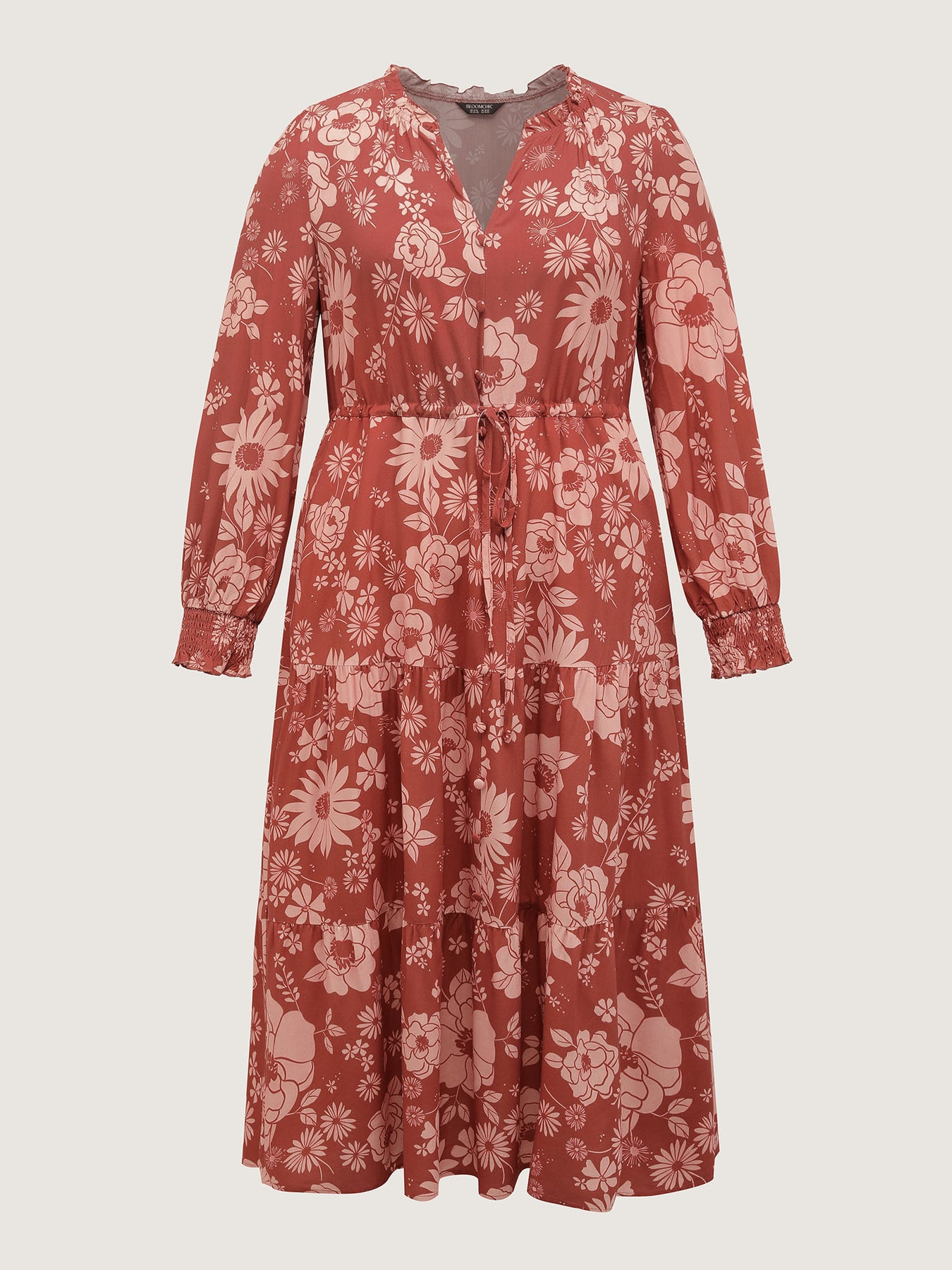 Floral Print Adjustable Waist-Tie Maxi Dress