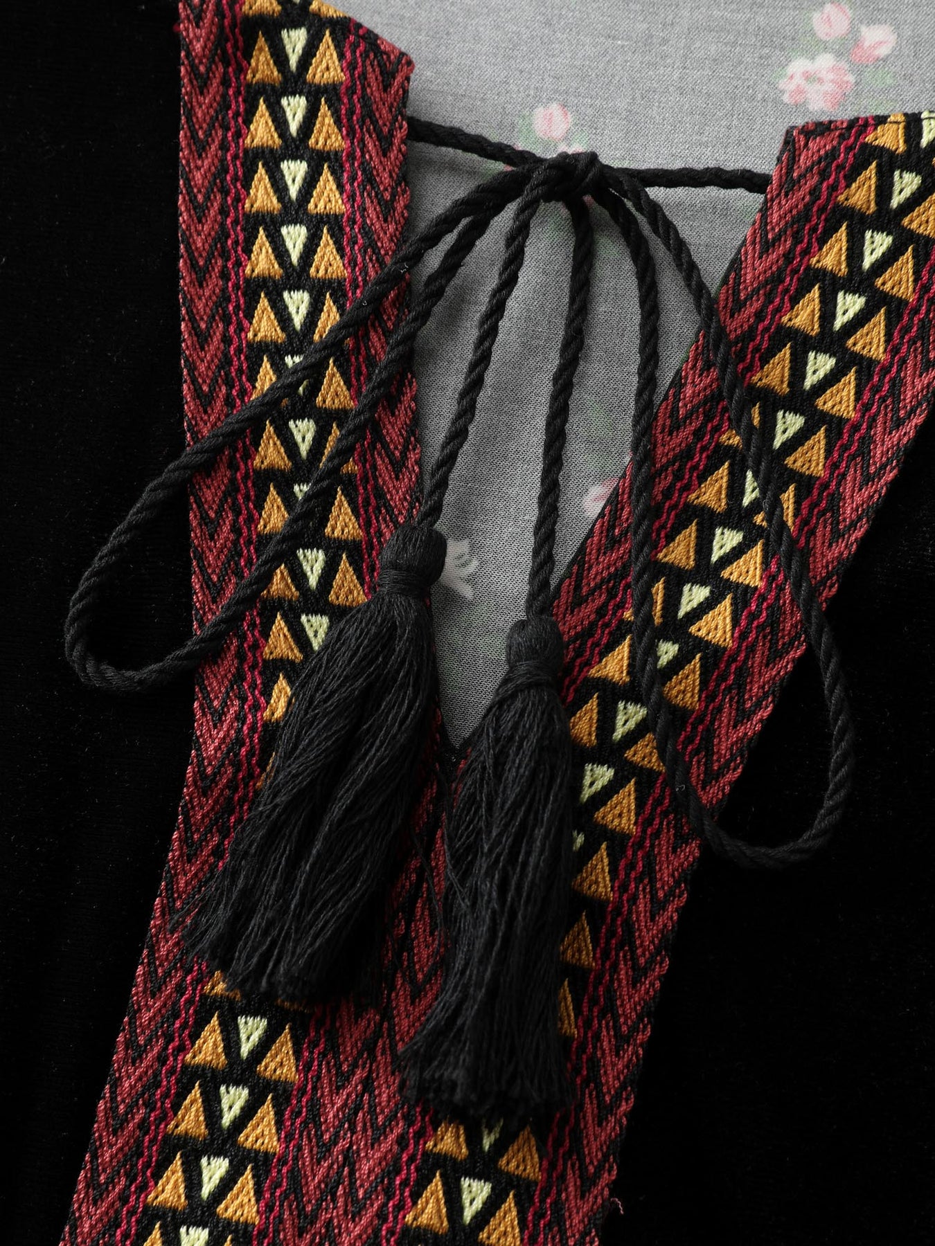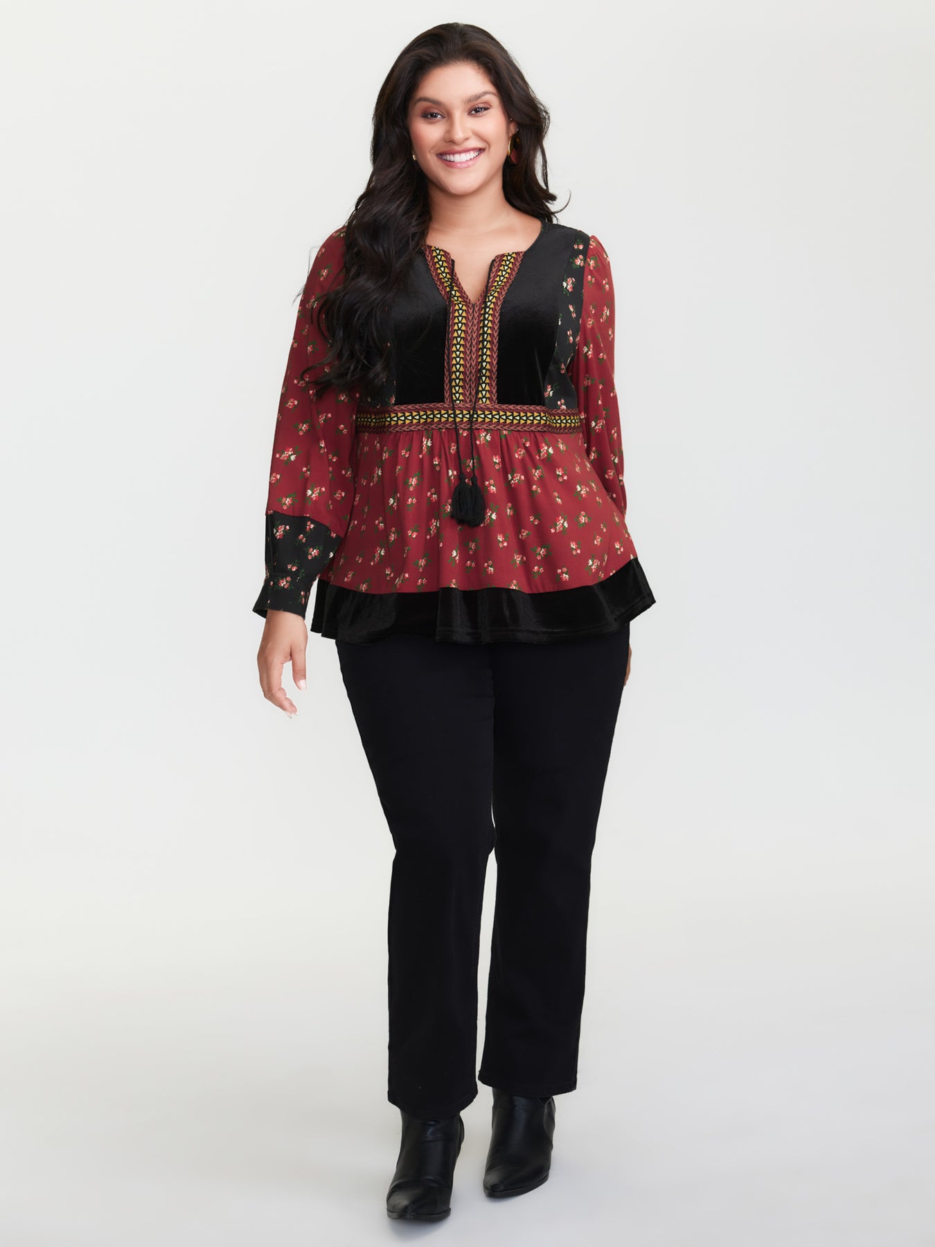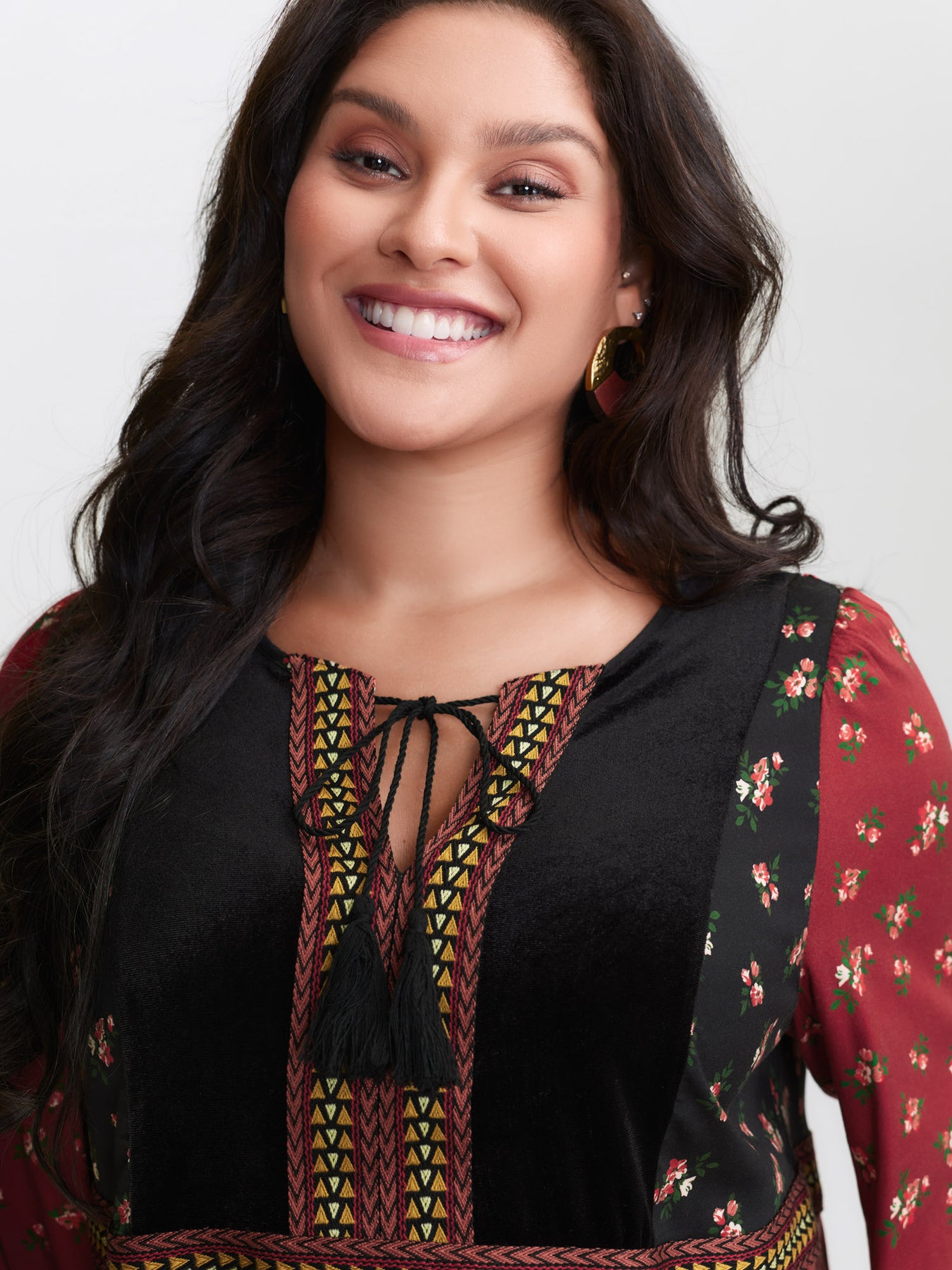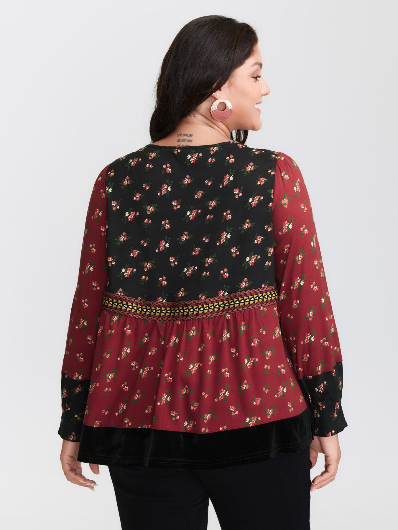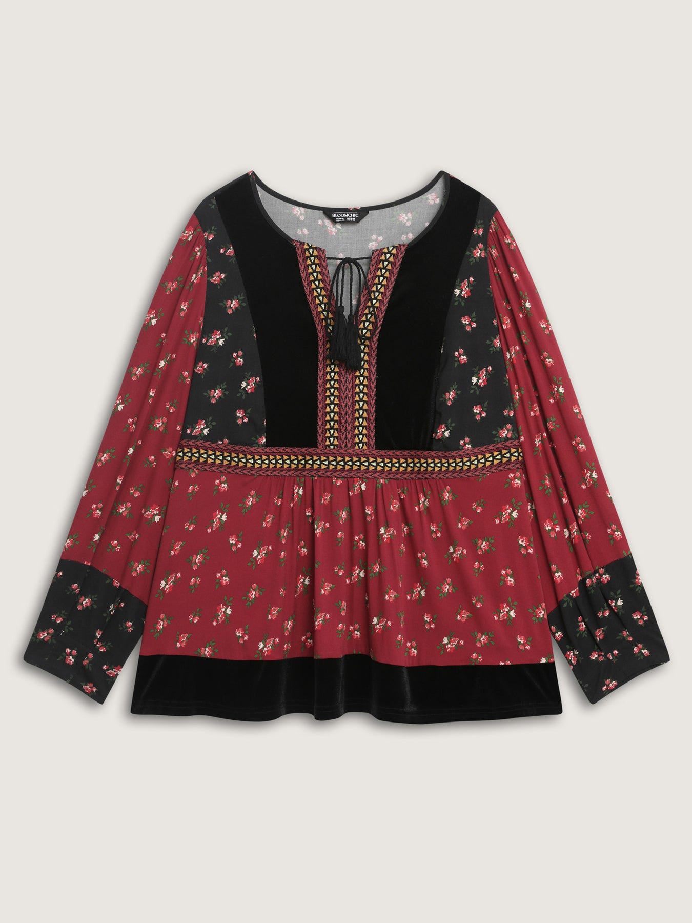 Floral Print Color Contrast Tie Blouse