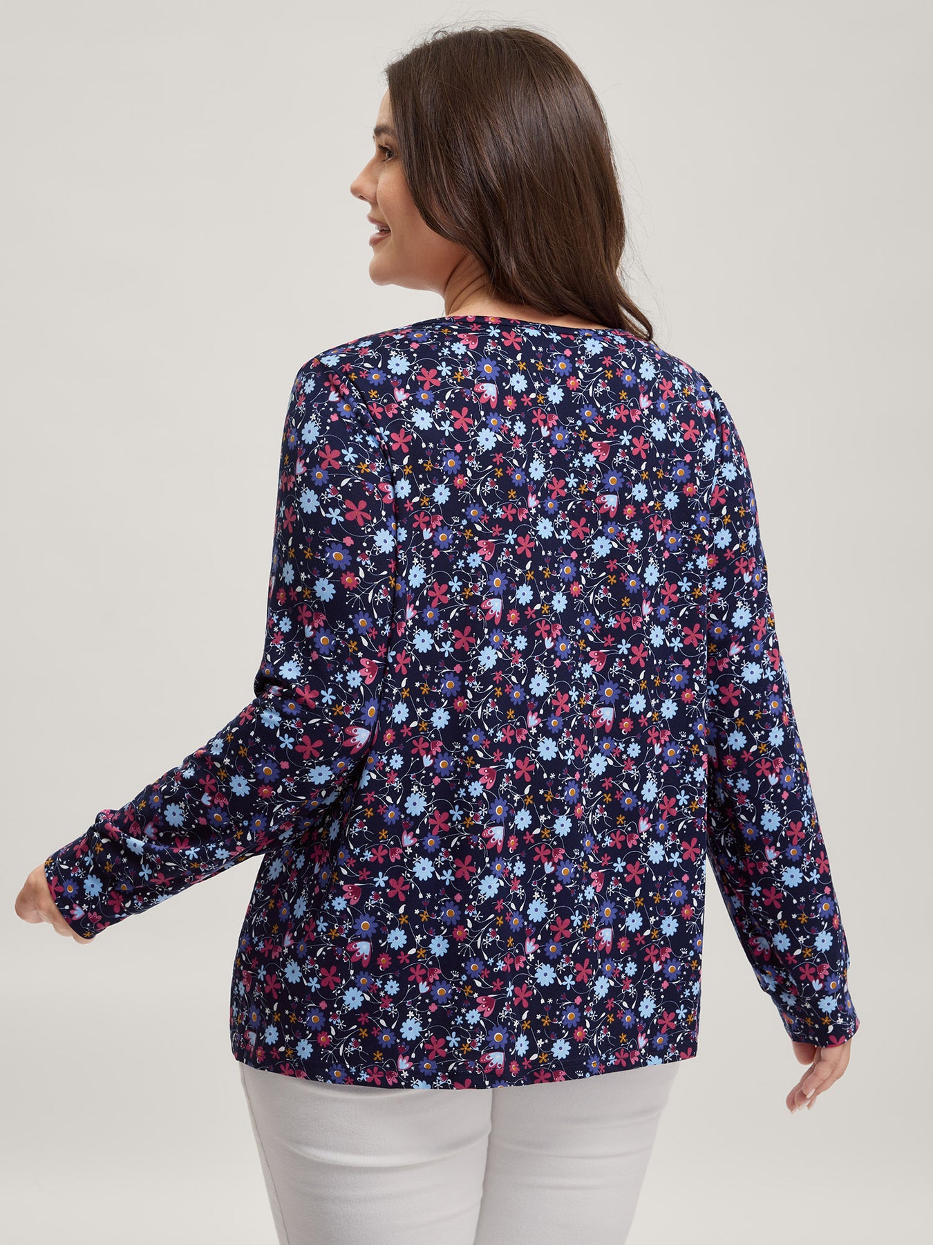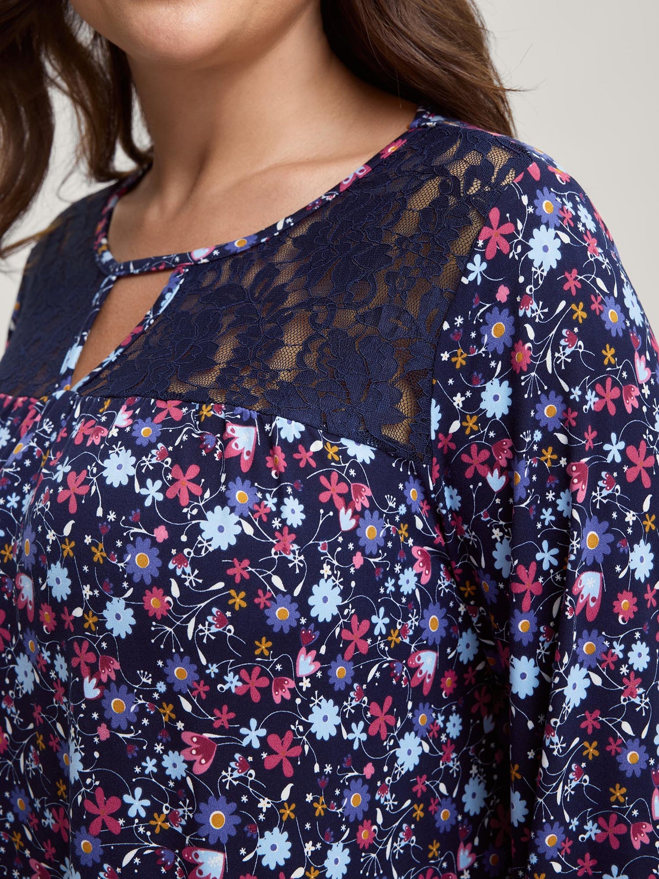 Floral Print Contrast Flowy Knit Top