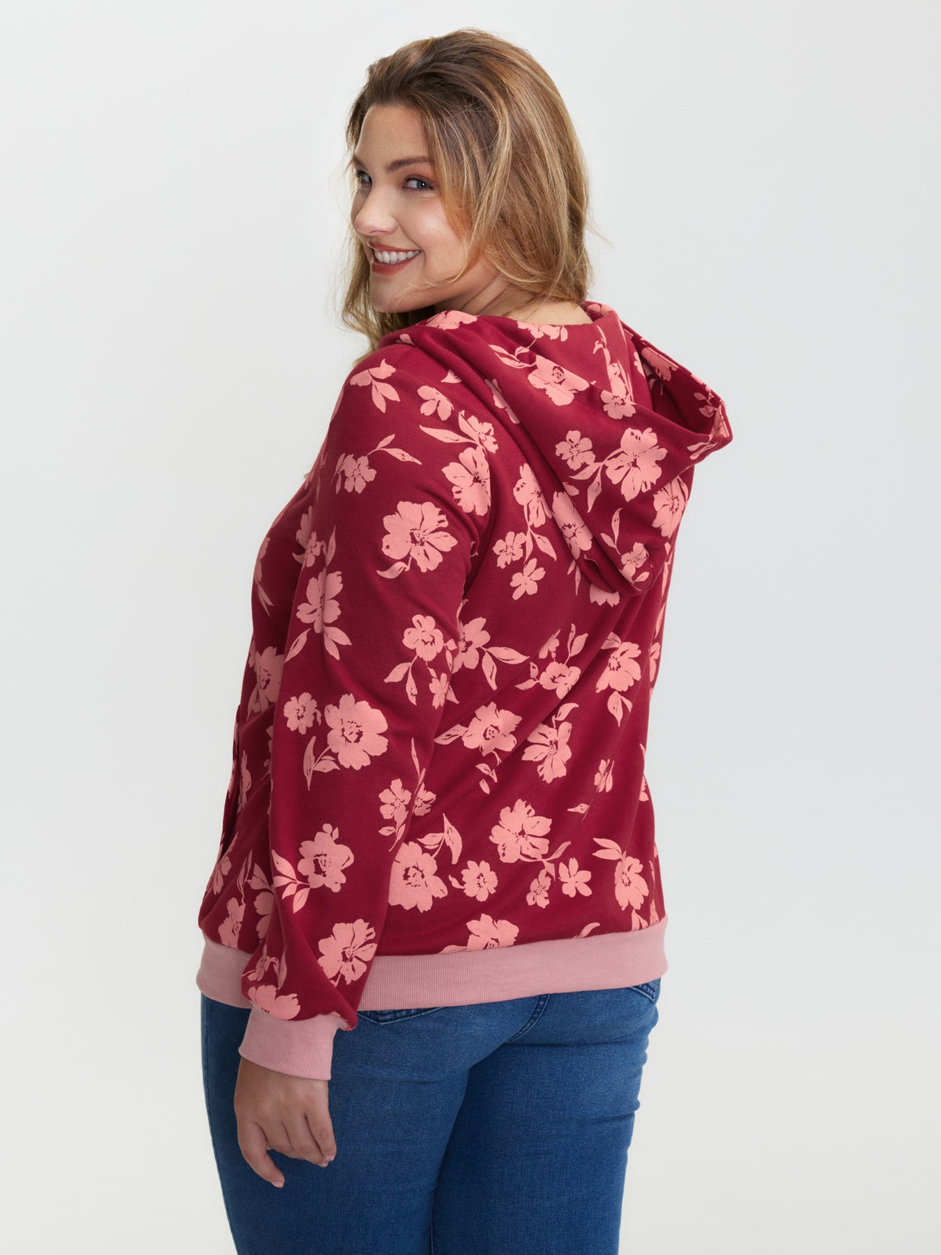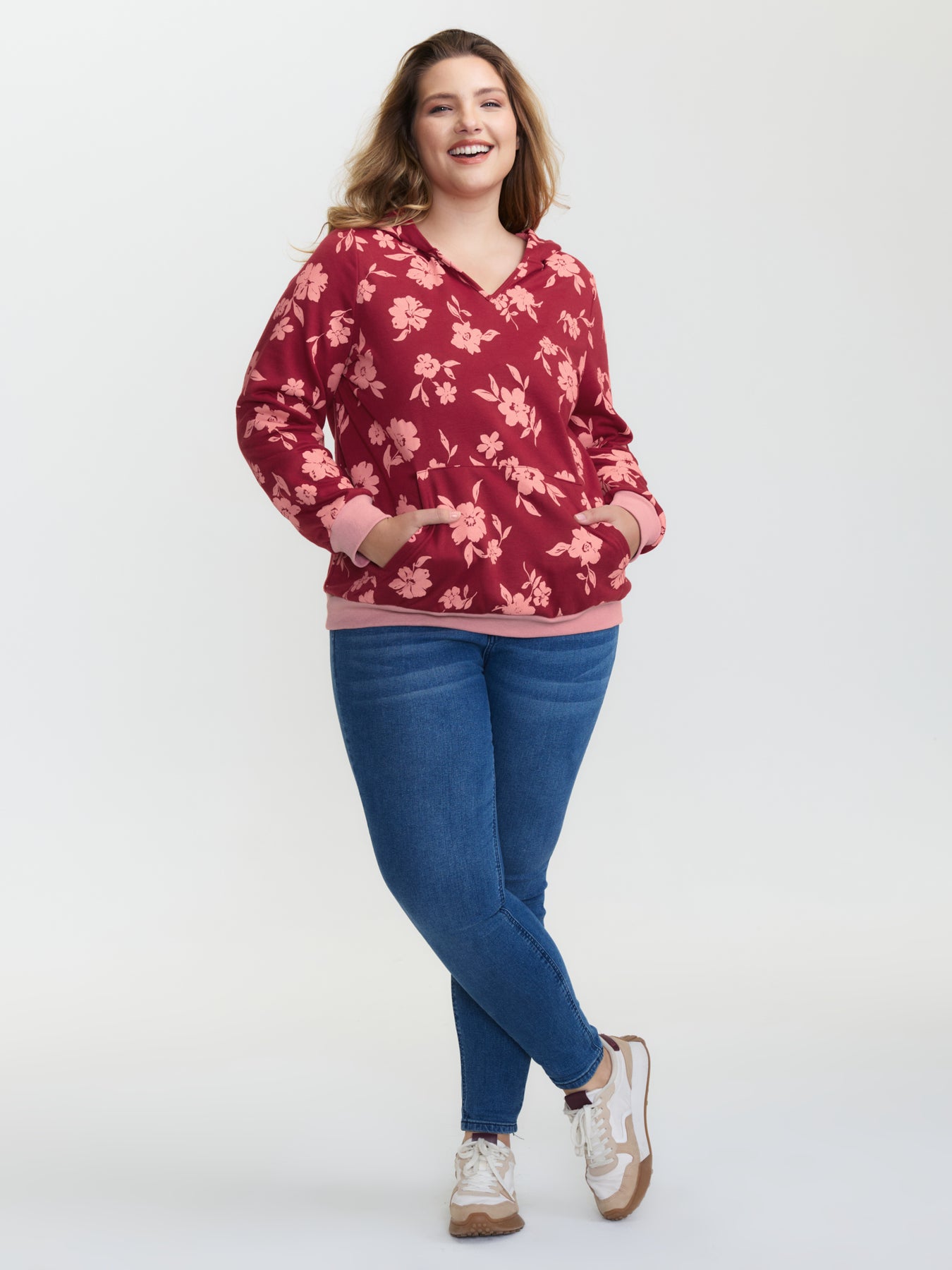 Floral Print Contrast Pockets Hoodie
