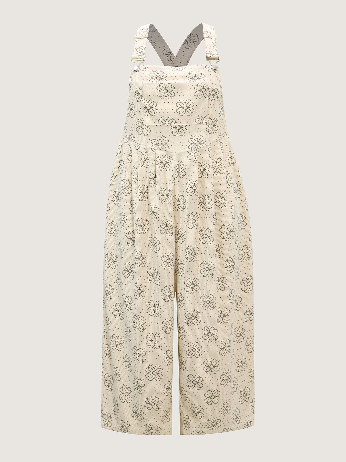 Floral Print Corduroy Pockets Jumpsuit