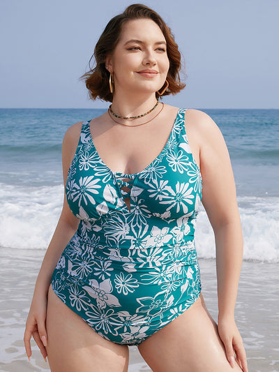 Floral Print Crisscross Sculpt Waist Ruched One Piece Swimsuit