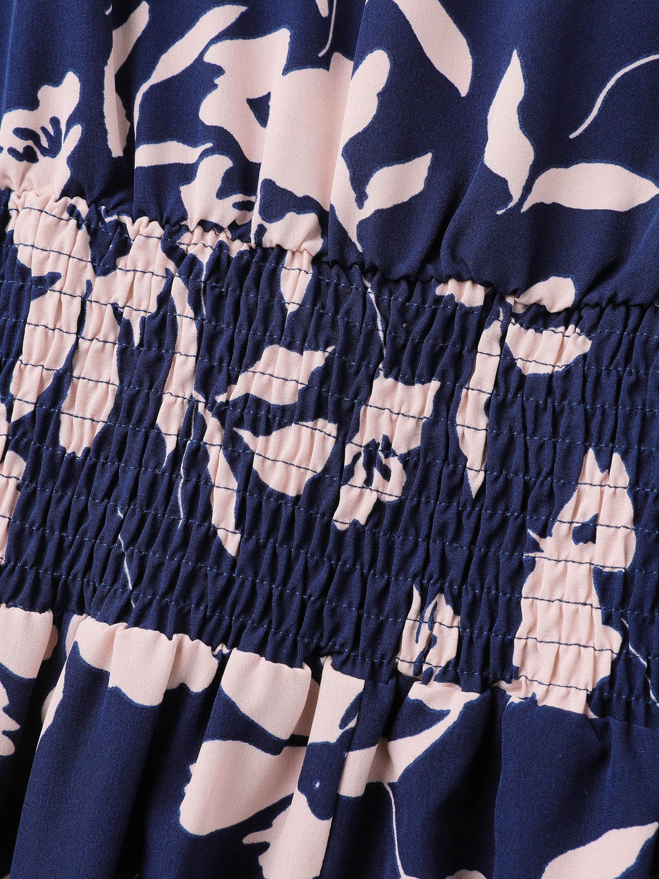 Floral Print Cross-Straps Shirred Midi Dress