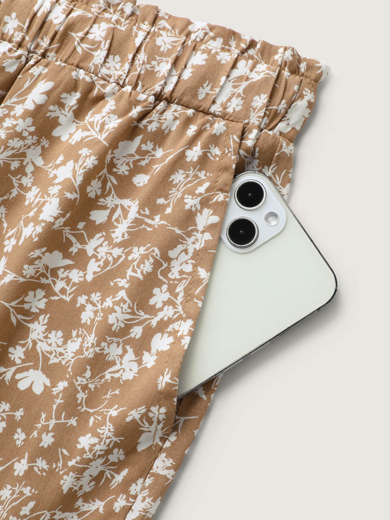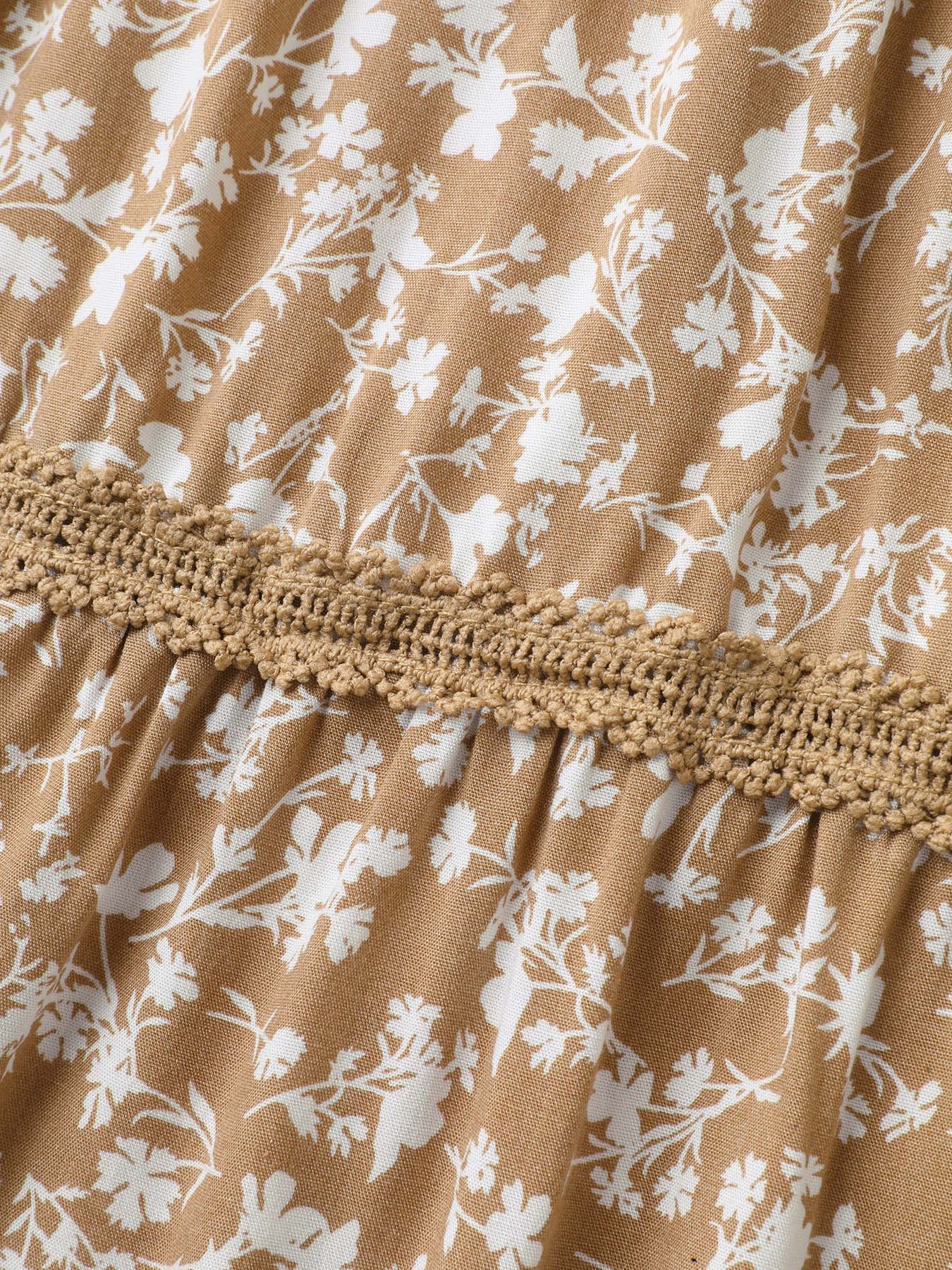 Floral Print Lace Trim Wide-Leg Pants