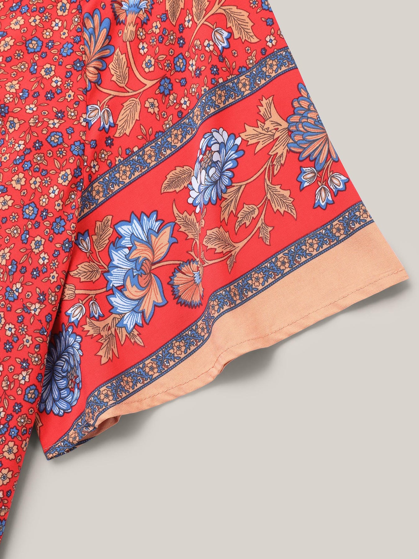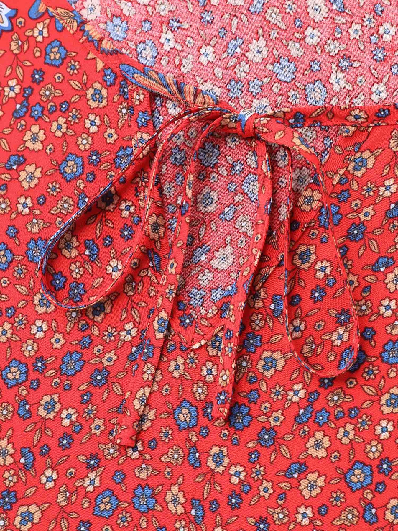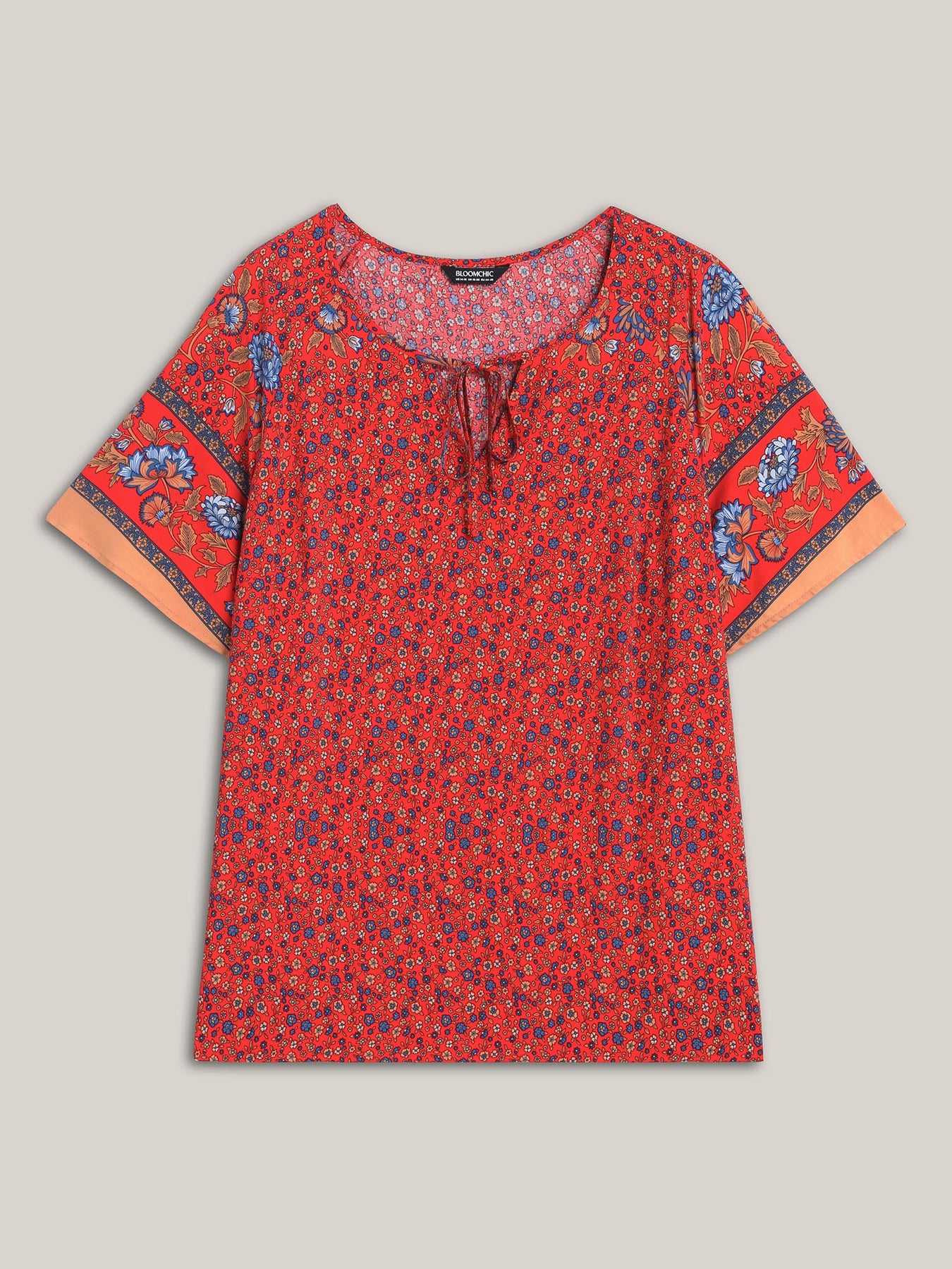 Floral Print Neck Tie Half Sleeve Blouse
