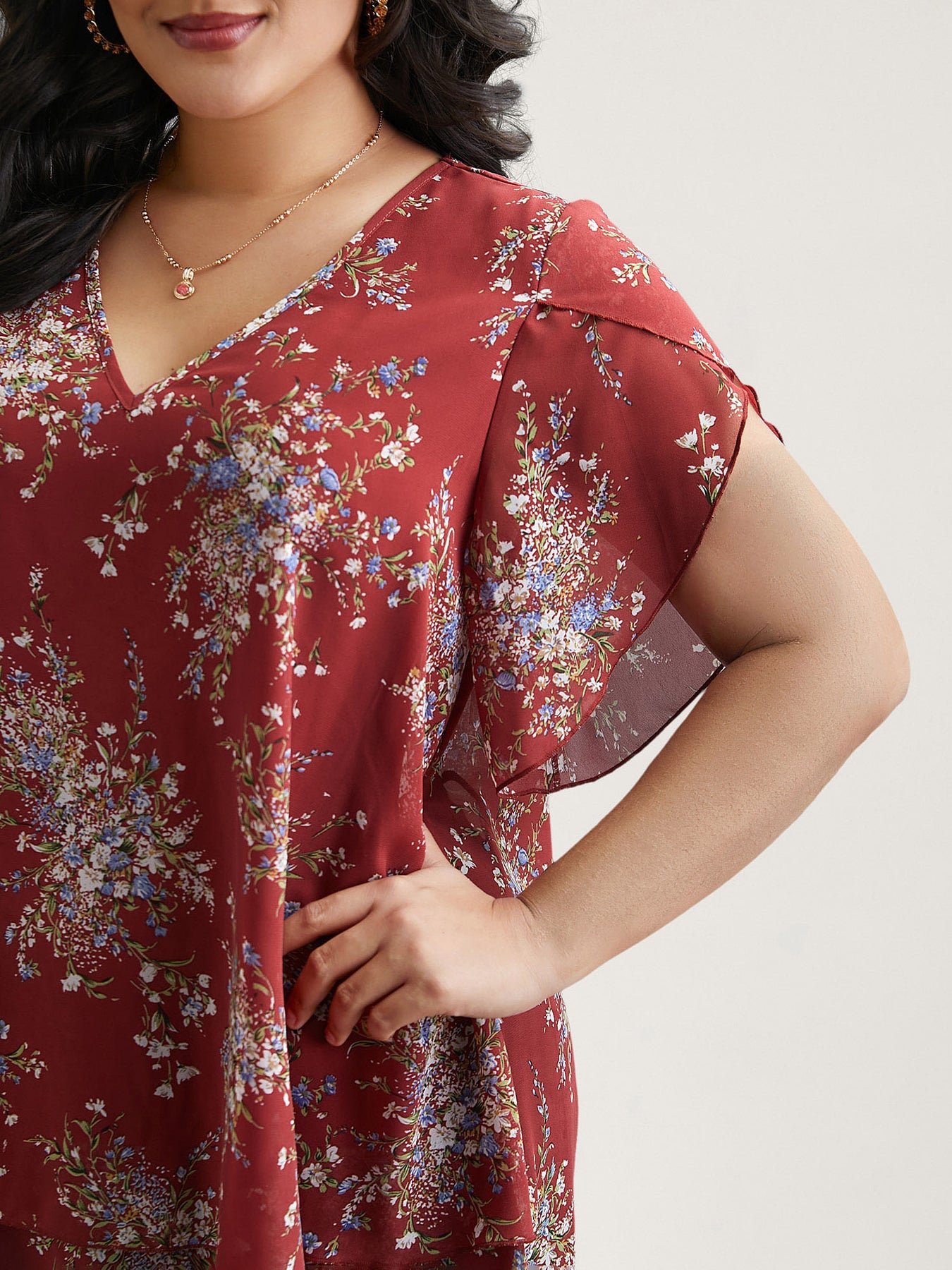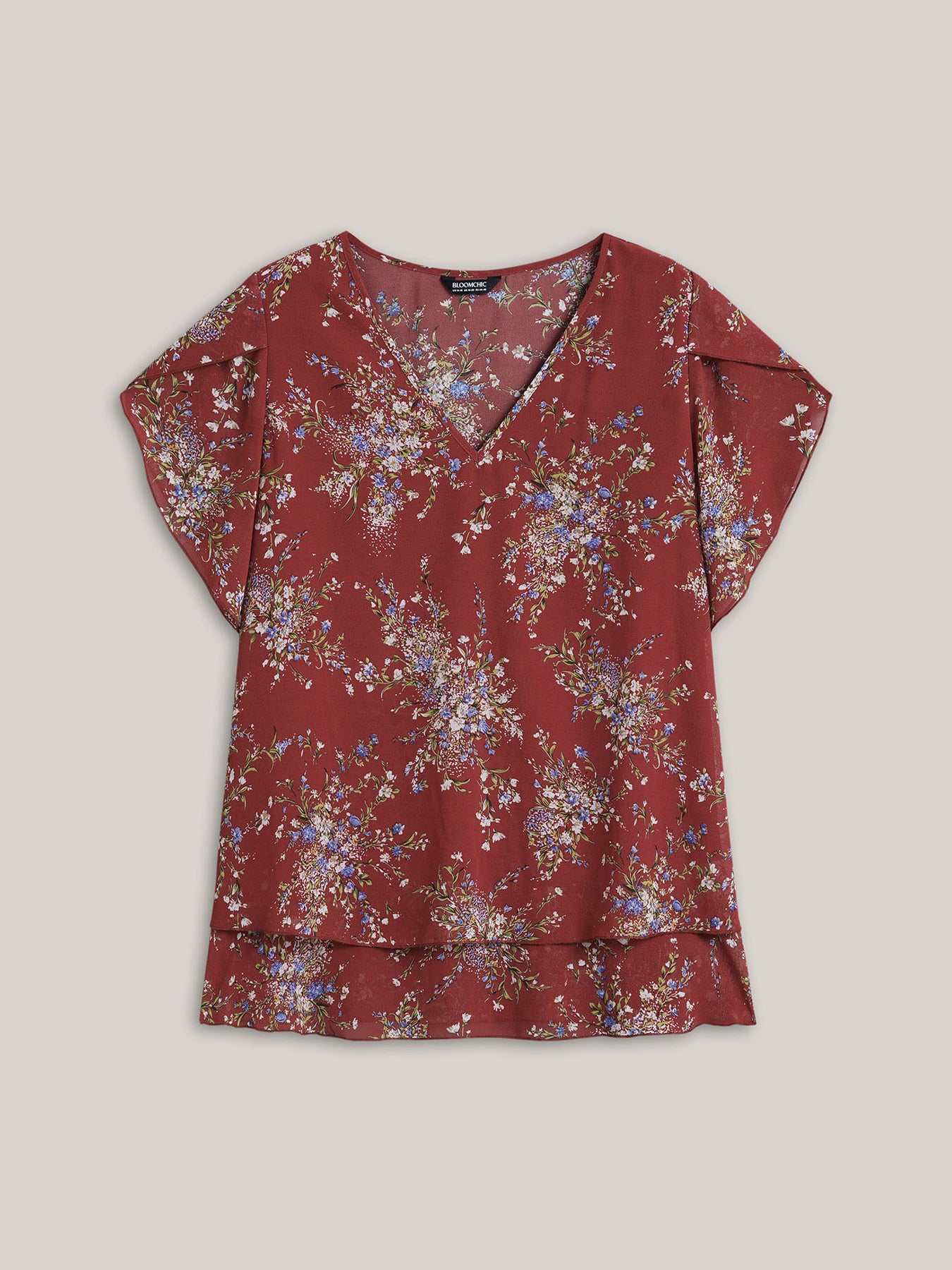 Floral Print Petal Sleeve Layered Blouse