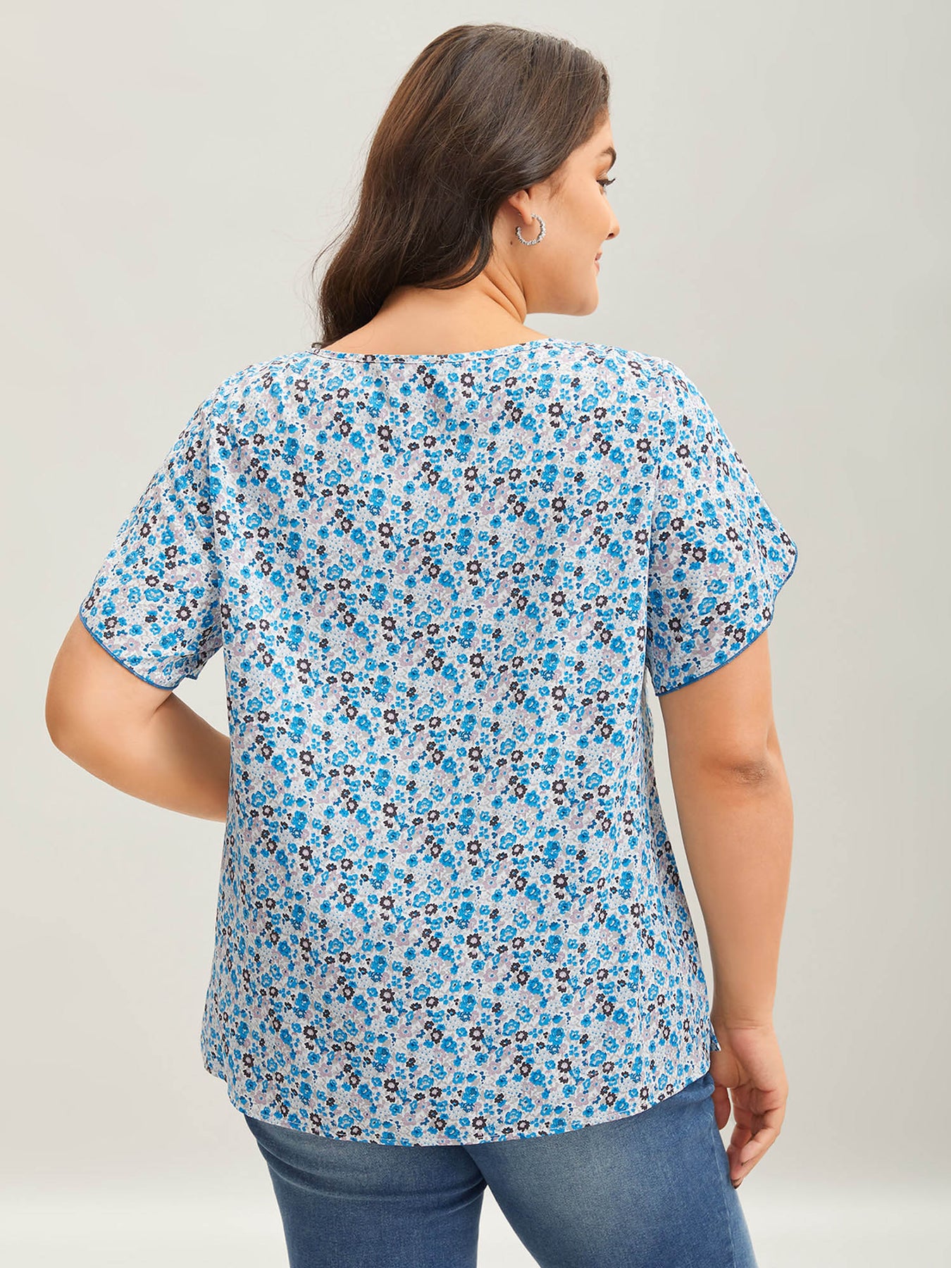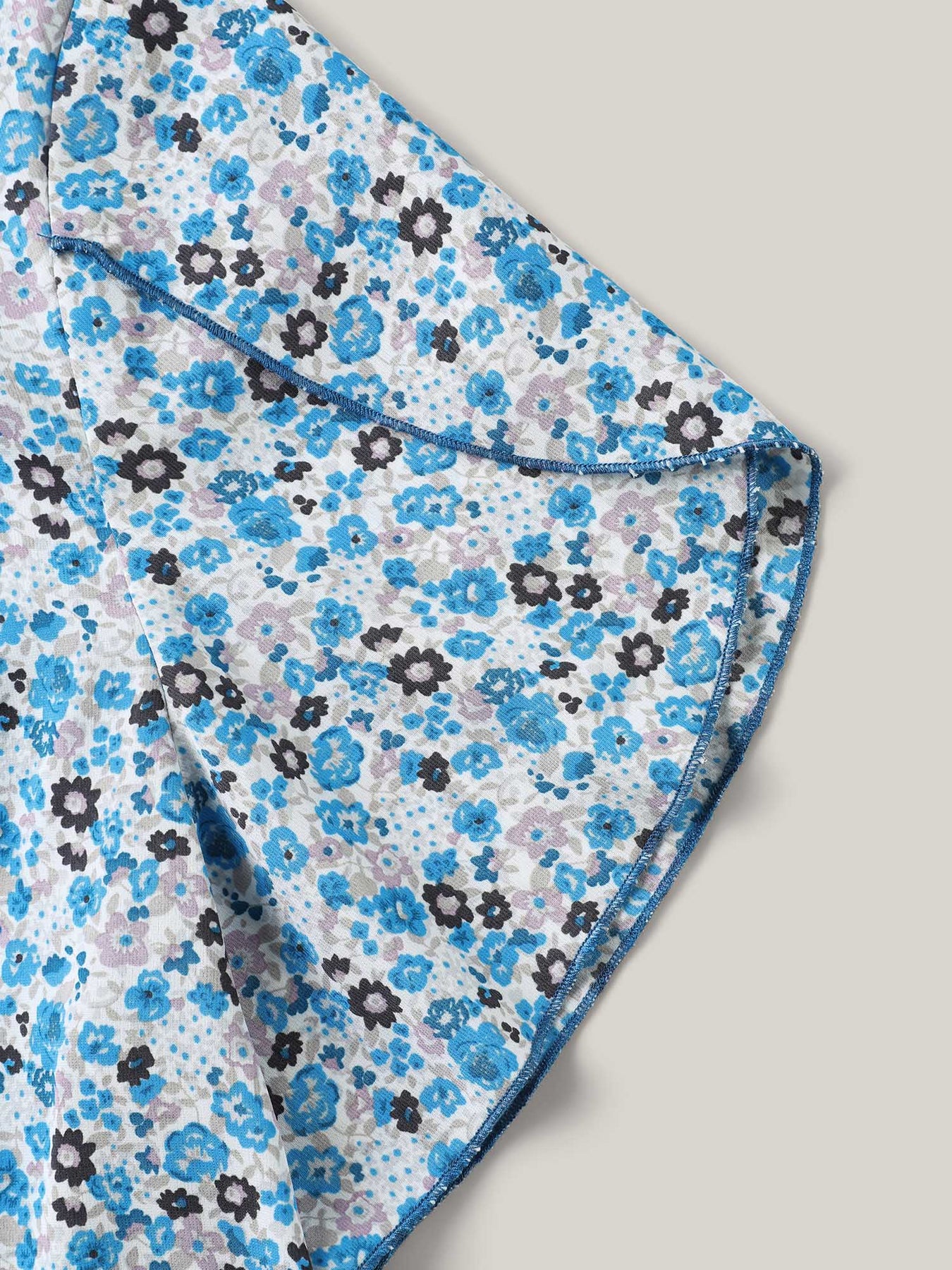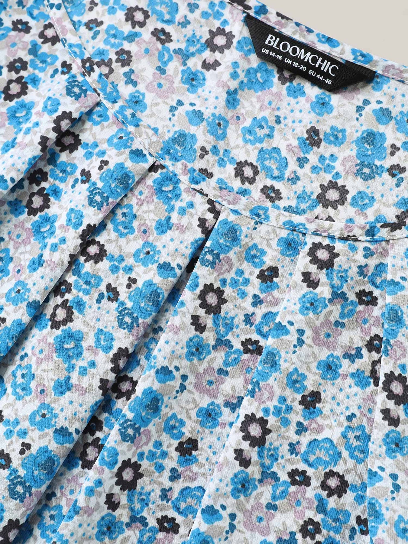 Floral Print Petal Sleeve Pleated Neck Blouse