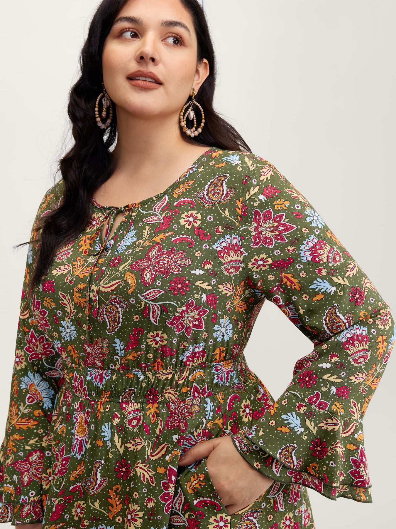 Floral Print Pleated Waist Maxi Dress