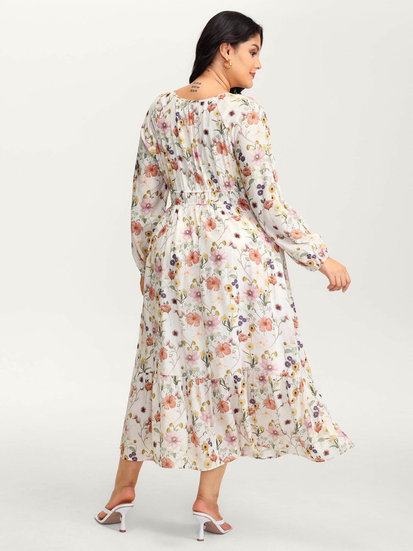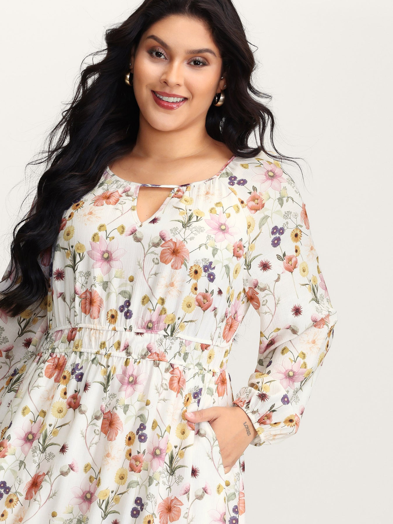 Floral Print Rayon Cut-Out Neck Maxi Dress