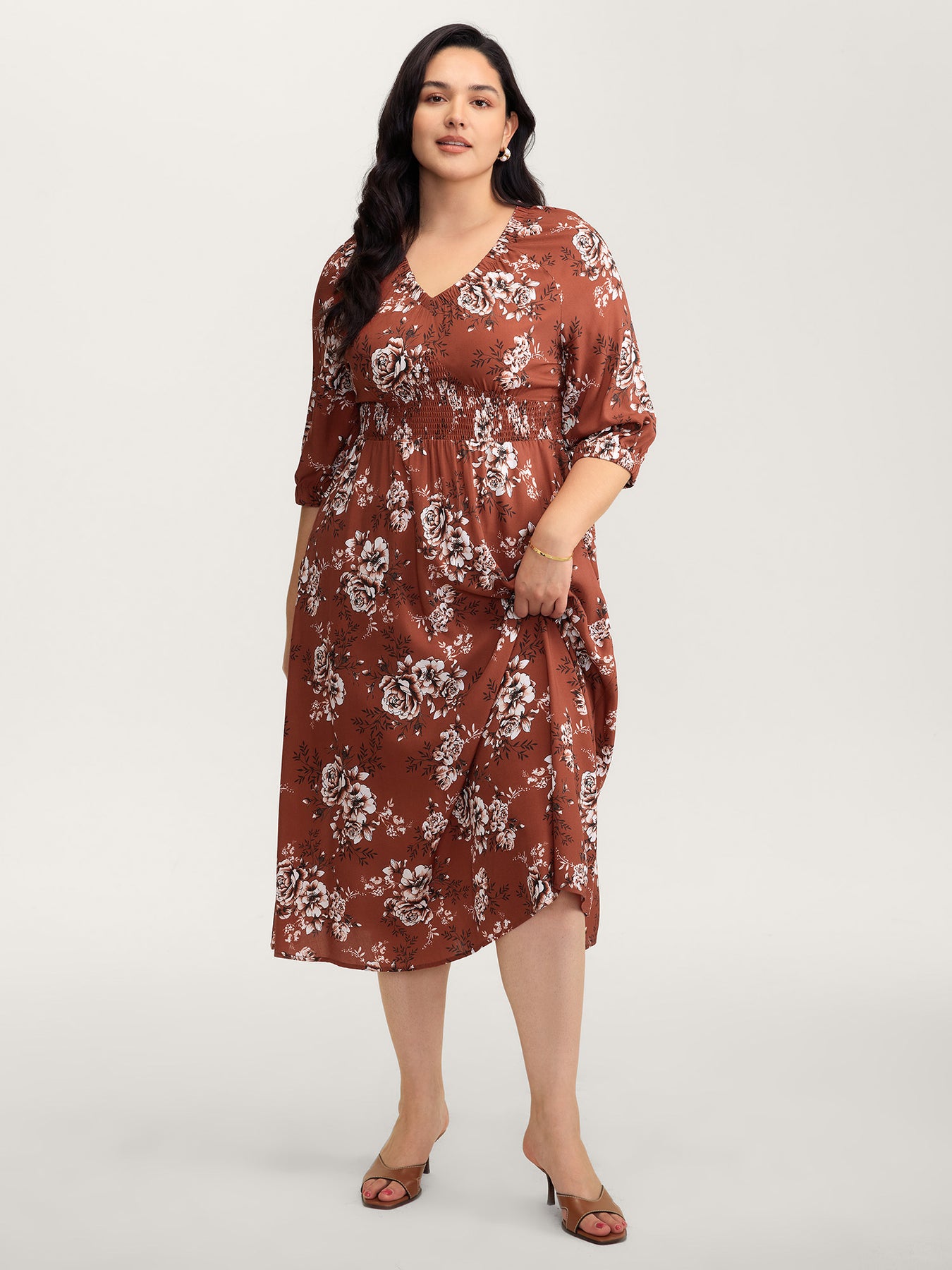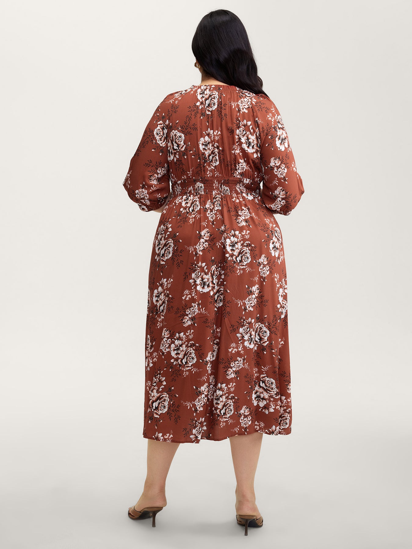 Floral Print Shirred Bust-Comfort Maxi Dress