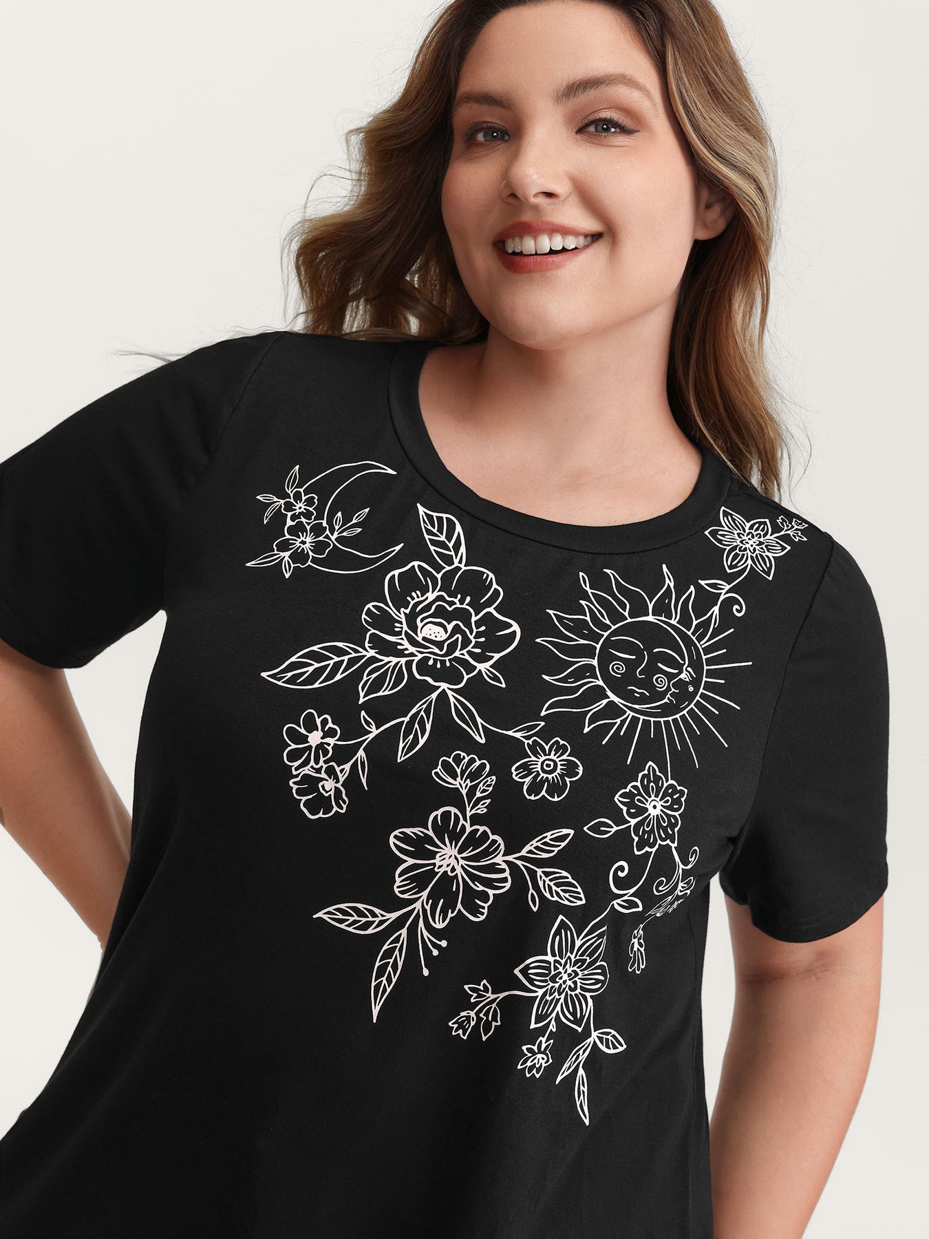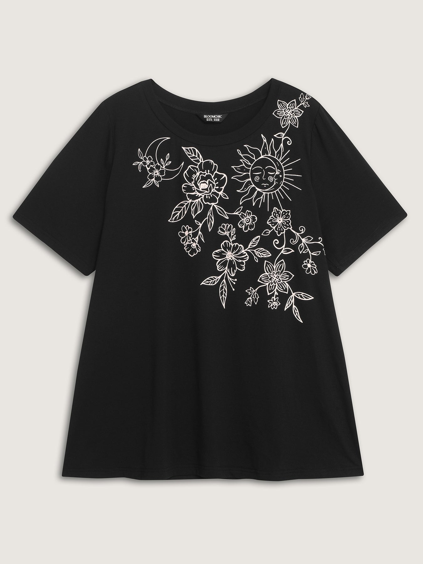 Floral Print Stretchy Round Neck T-Shirt